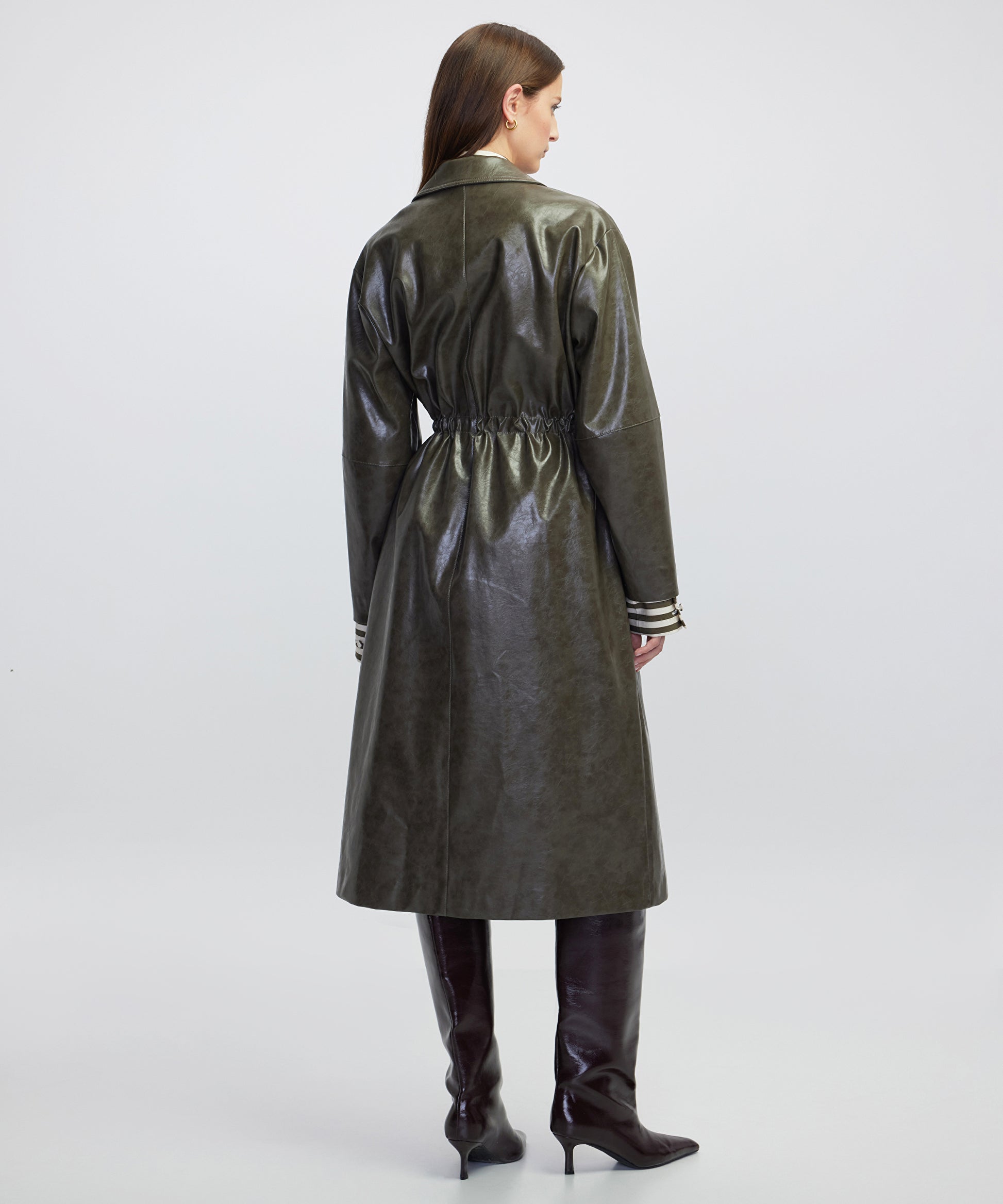 Deri Görünümlü Ayarlanabilir Bel Pardösü