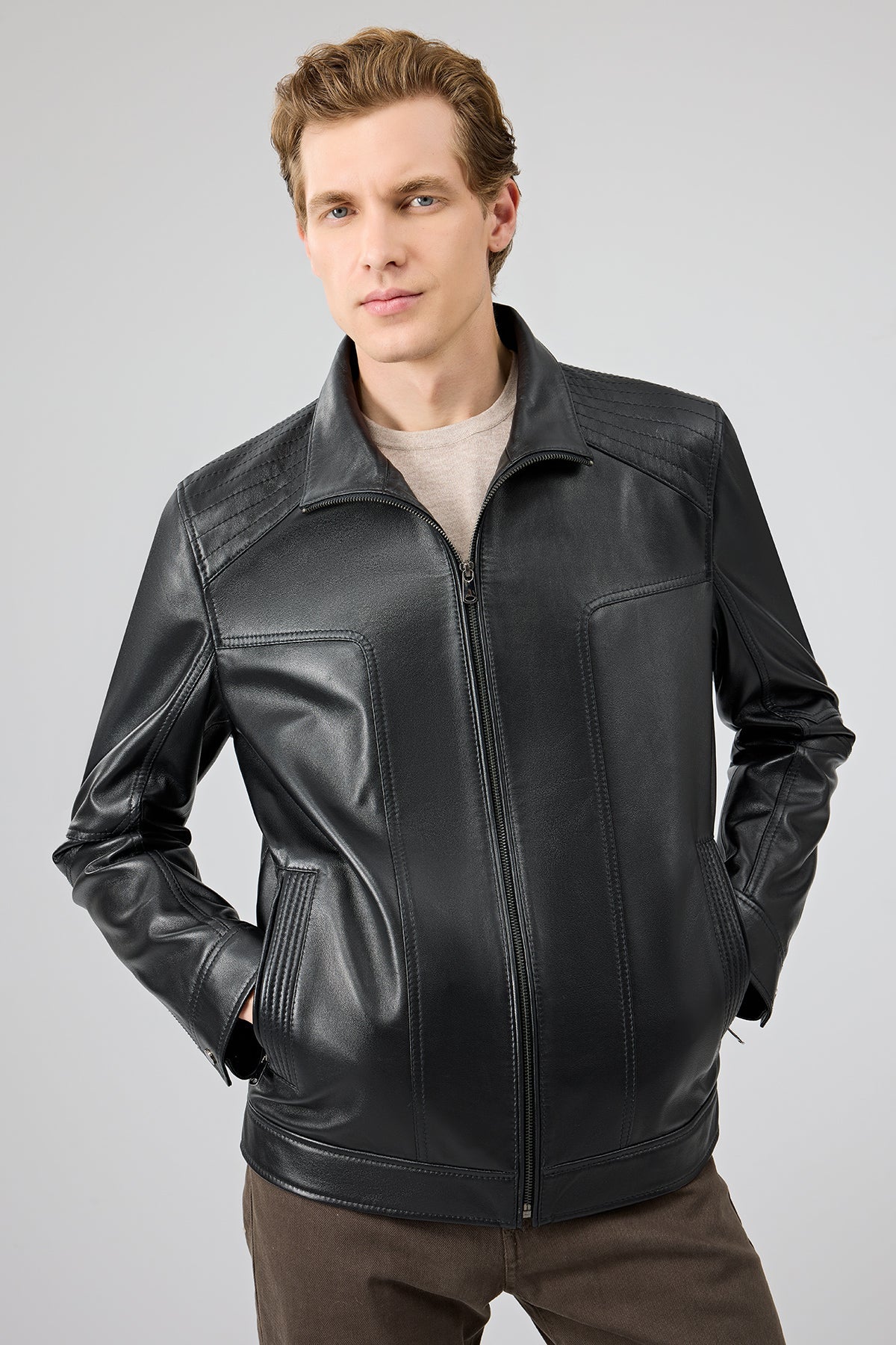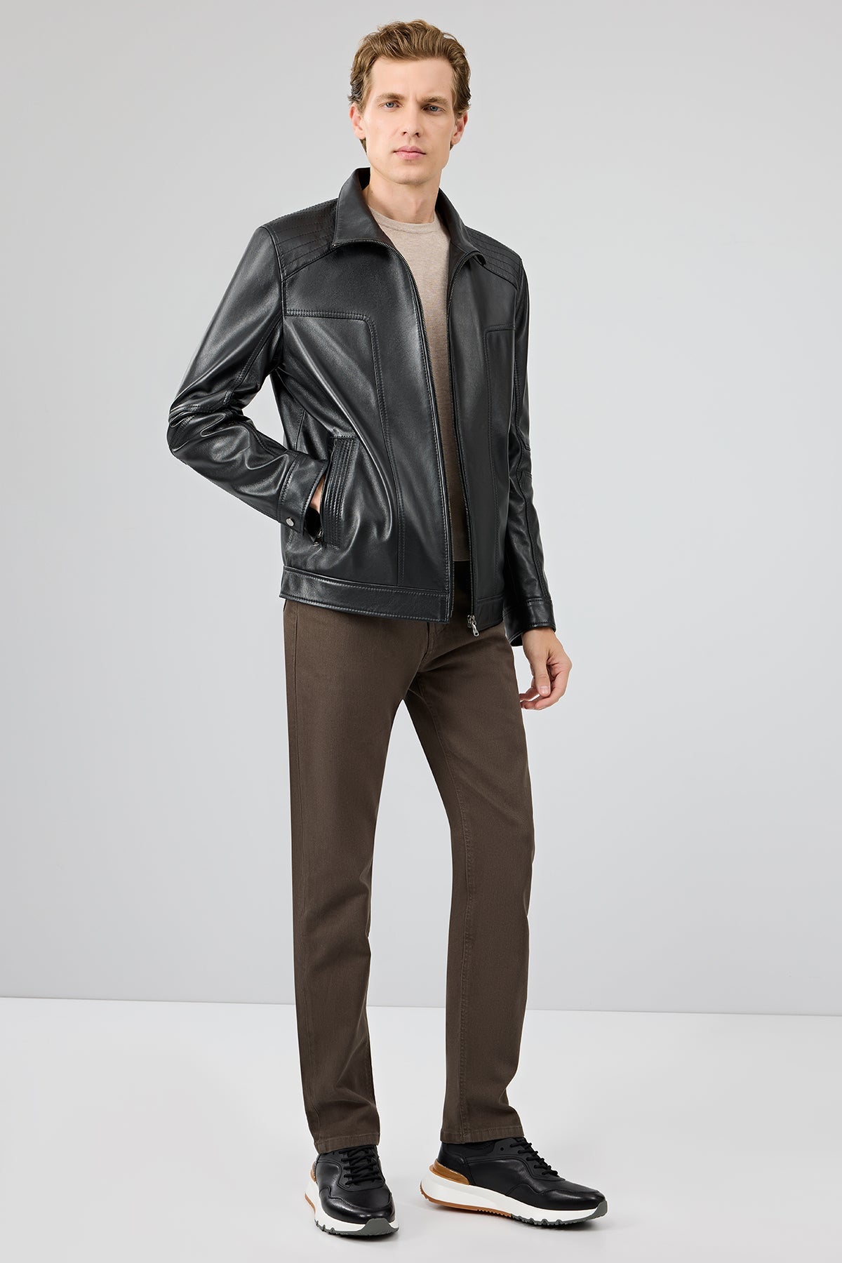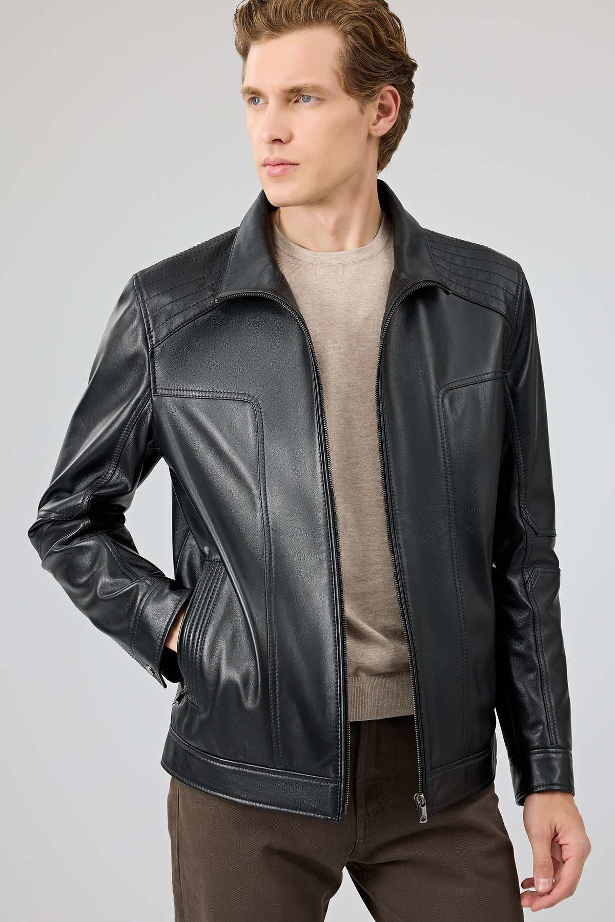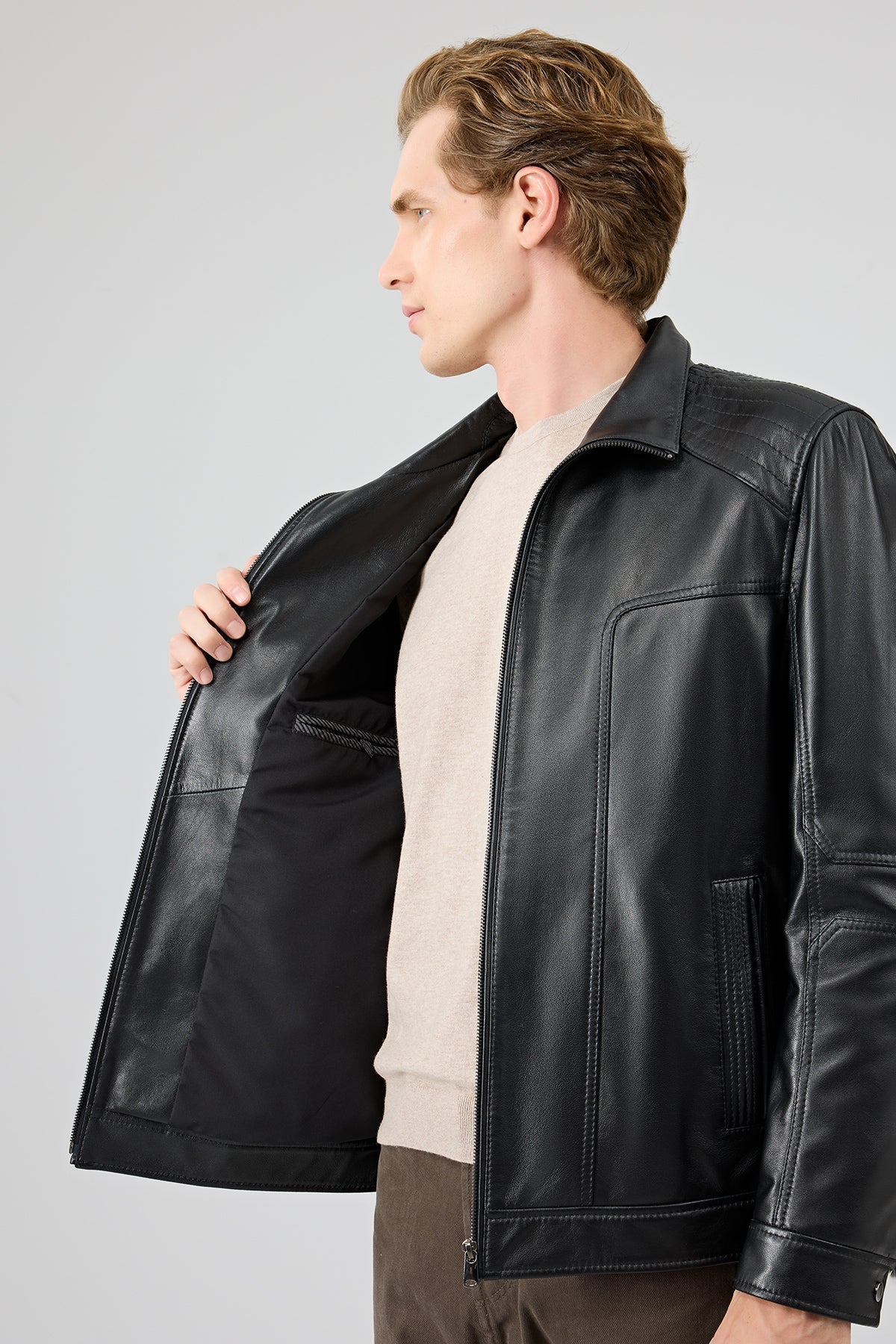 Alfred Erkek Siyah Deri Mont