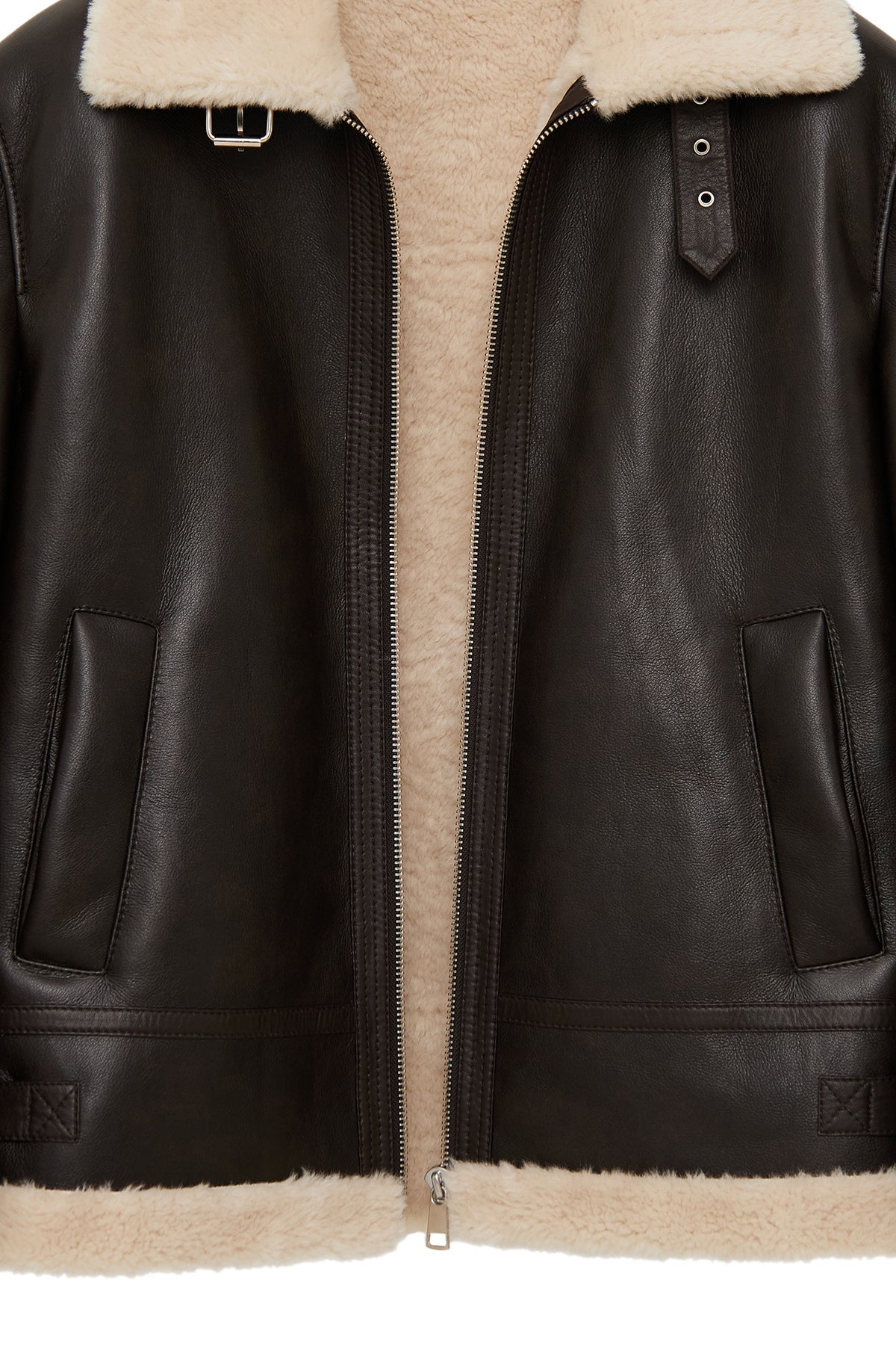 Materyal: Deri-Suni Kürk Deri Özelliği: Koyun derisi içermektedir. İç Astar: Astarsız.