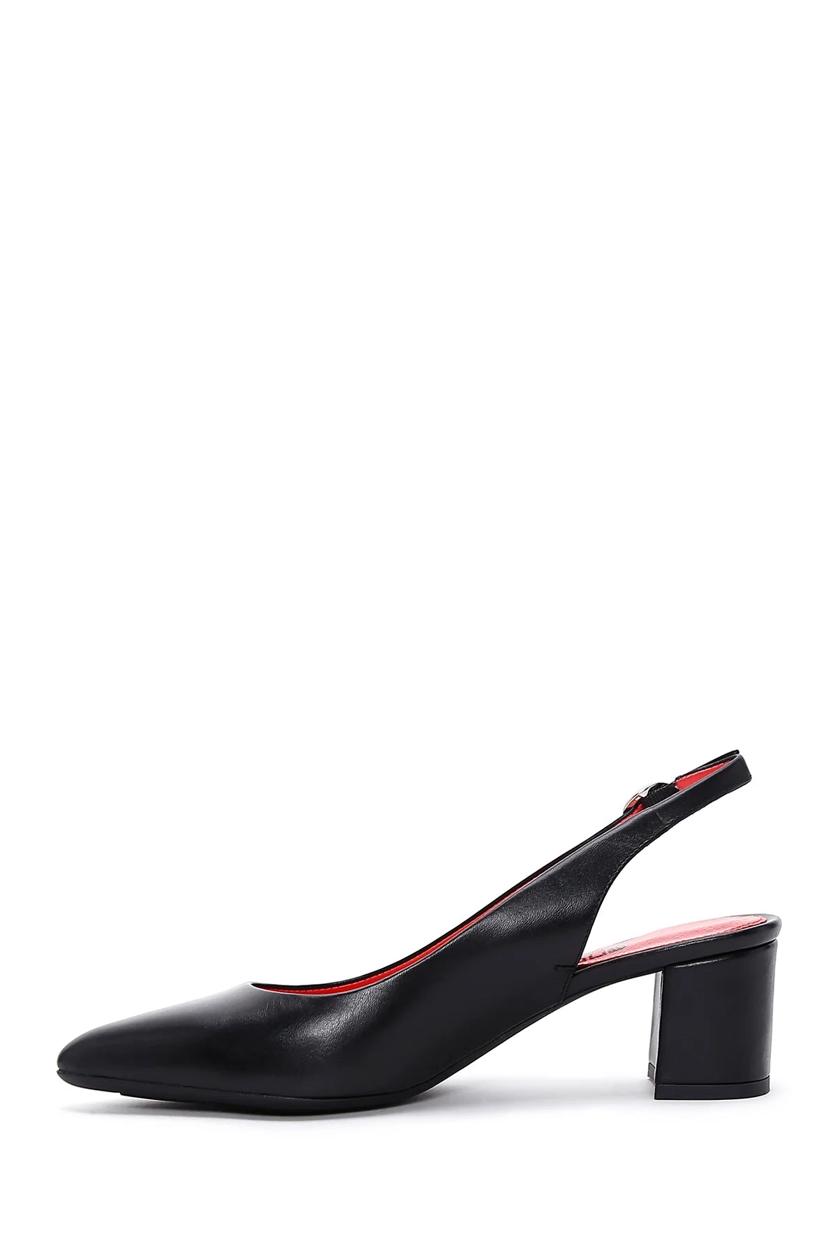 Derimod Gritti Kadın Siyah Arkası Açık Kısa Kalın Topuklu Deri Ayakkabı
