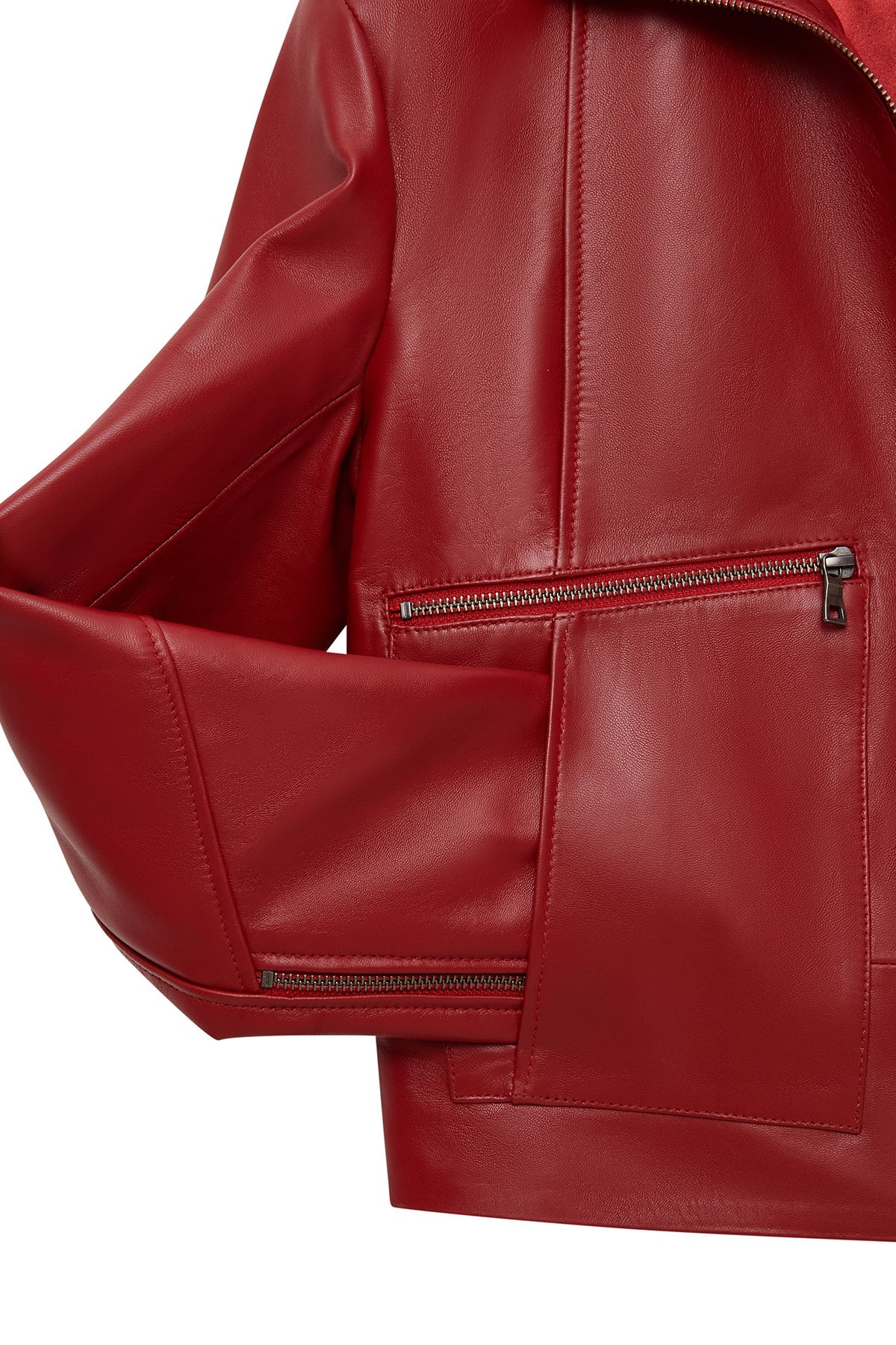 Dolores Kadın Kırmızı Devrik Yaka Oversize Deri Ceket