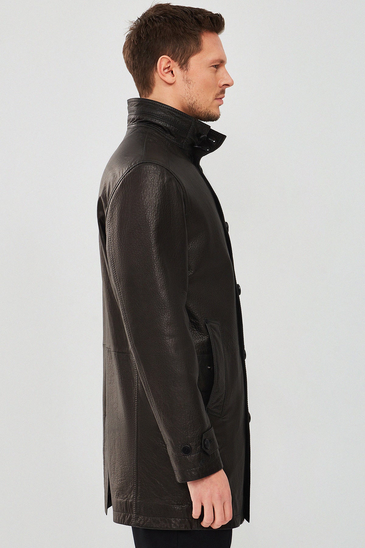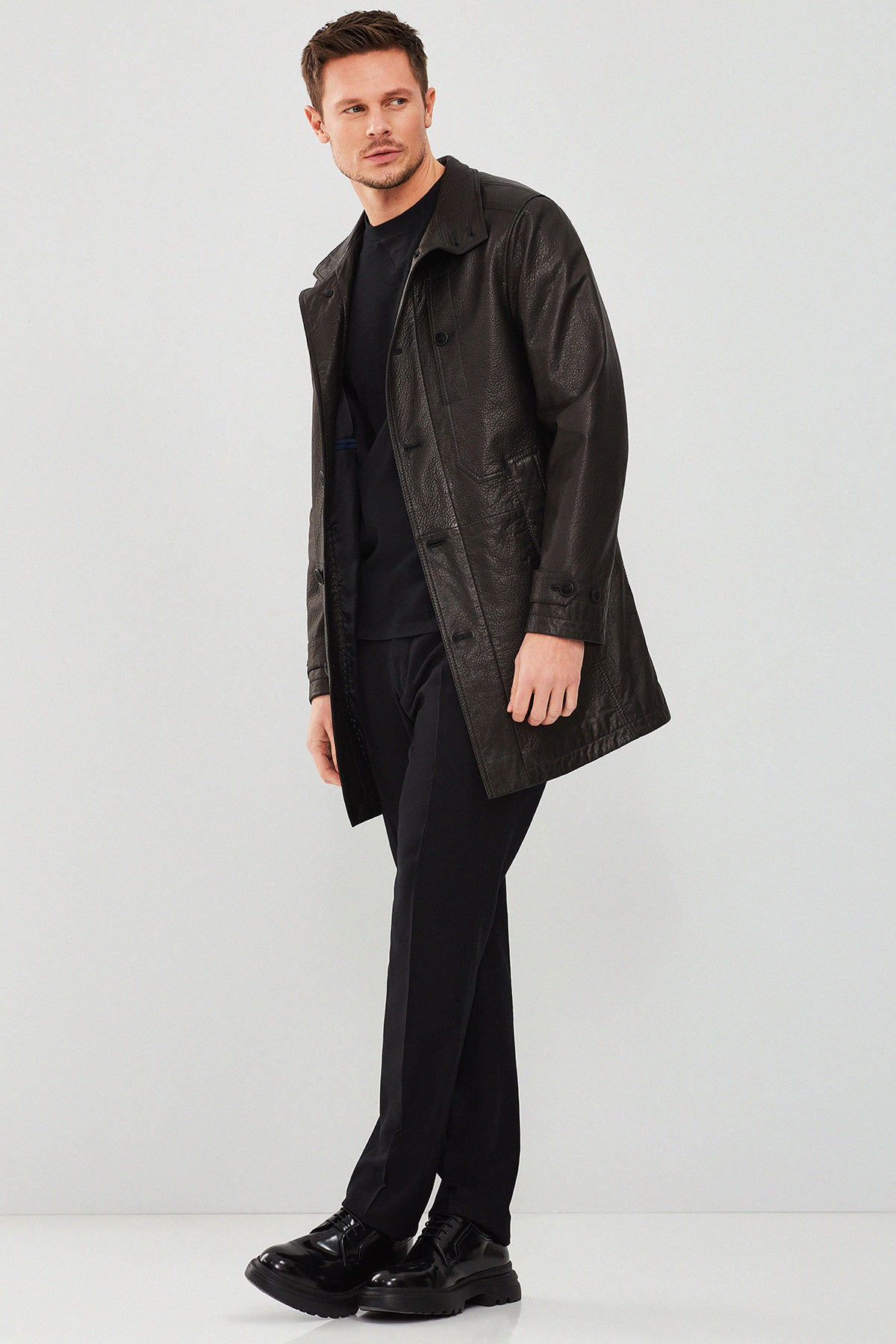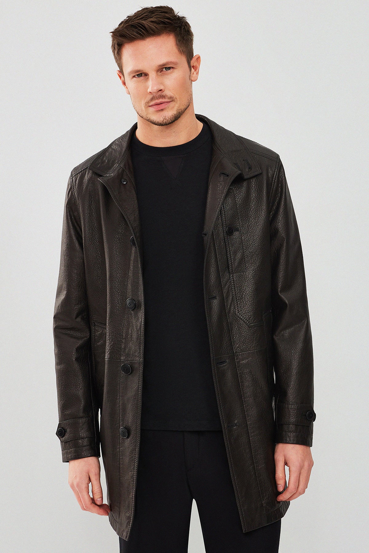 İç Astar: TekstilMateryal: Deri.Ederson Erkek Siyah Uzun Deri Ceket, zarif tasarımı ve yüksek kaliteli deri materyali ile dikkat çekiyor. Bu şık ceket, dış kısmında 3 cep ve iç kısmında 2 cep ile hem estetik hem de fonksiyonellik sunuyor. Düğmeli kapama şekli sayesinde kolay bir kullanım sağlayan ceket, hakim yaka tasarımı ile klasik bir hava katıyor. Diz boyunda uzunluğu ile soğuk havalarda da rahatlıkla tercih edilebilir. Regular/standart kalıbı sayesinde geniş bir kitleye hitap eden Ederson Erkek Siyah Uzun Deri Ceket, her ortamda şıklığınızı tamamlayacak mükemmel bir parça olarak öne çıkıyor. Hem günlük kullanıma uygun hem de özel günlerde giyilebilecek bu ceket, gardırobunuzun vazgeçilmezleri arasında yer alacak. Ürünün kodu: 23WGD61139M 11
