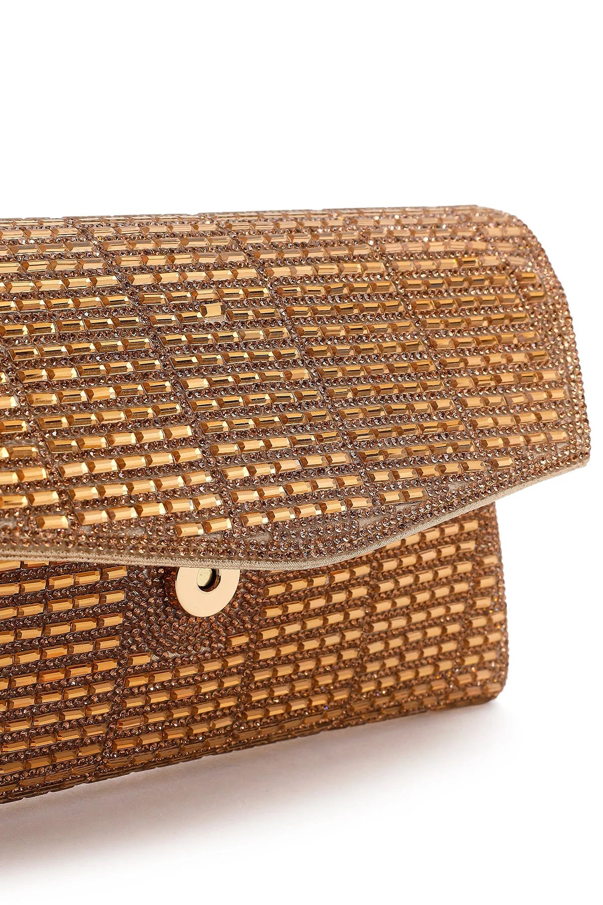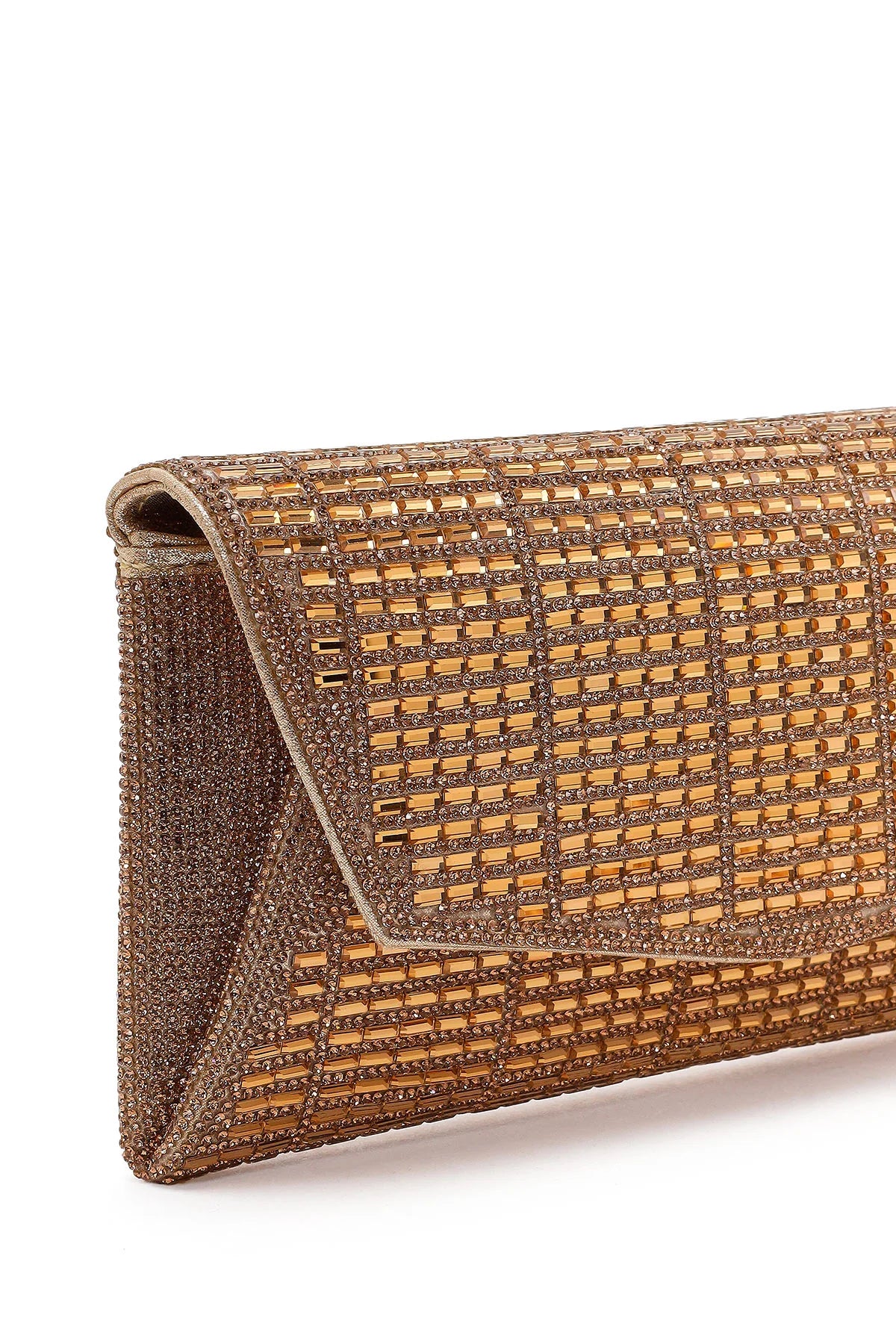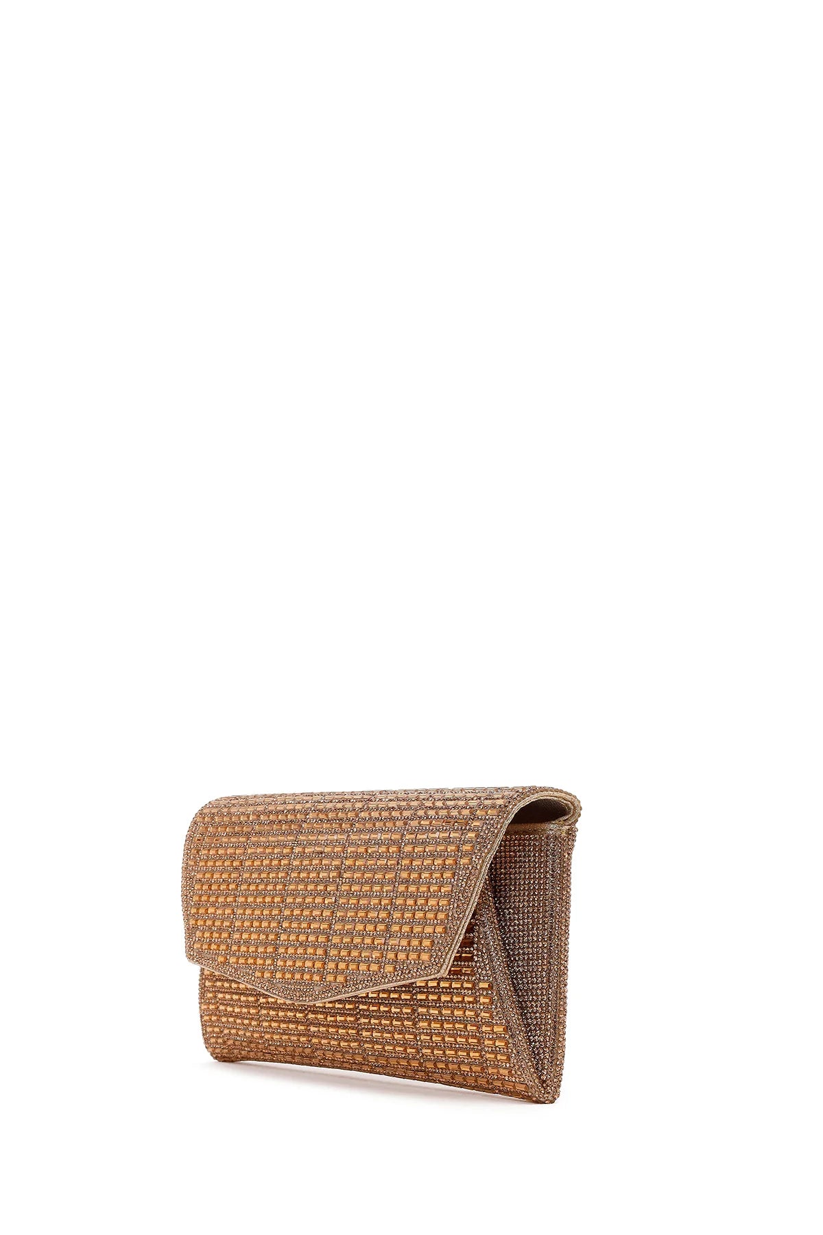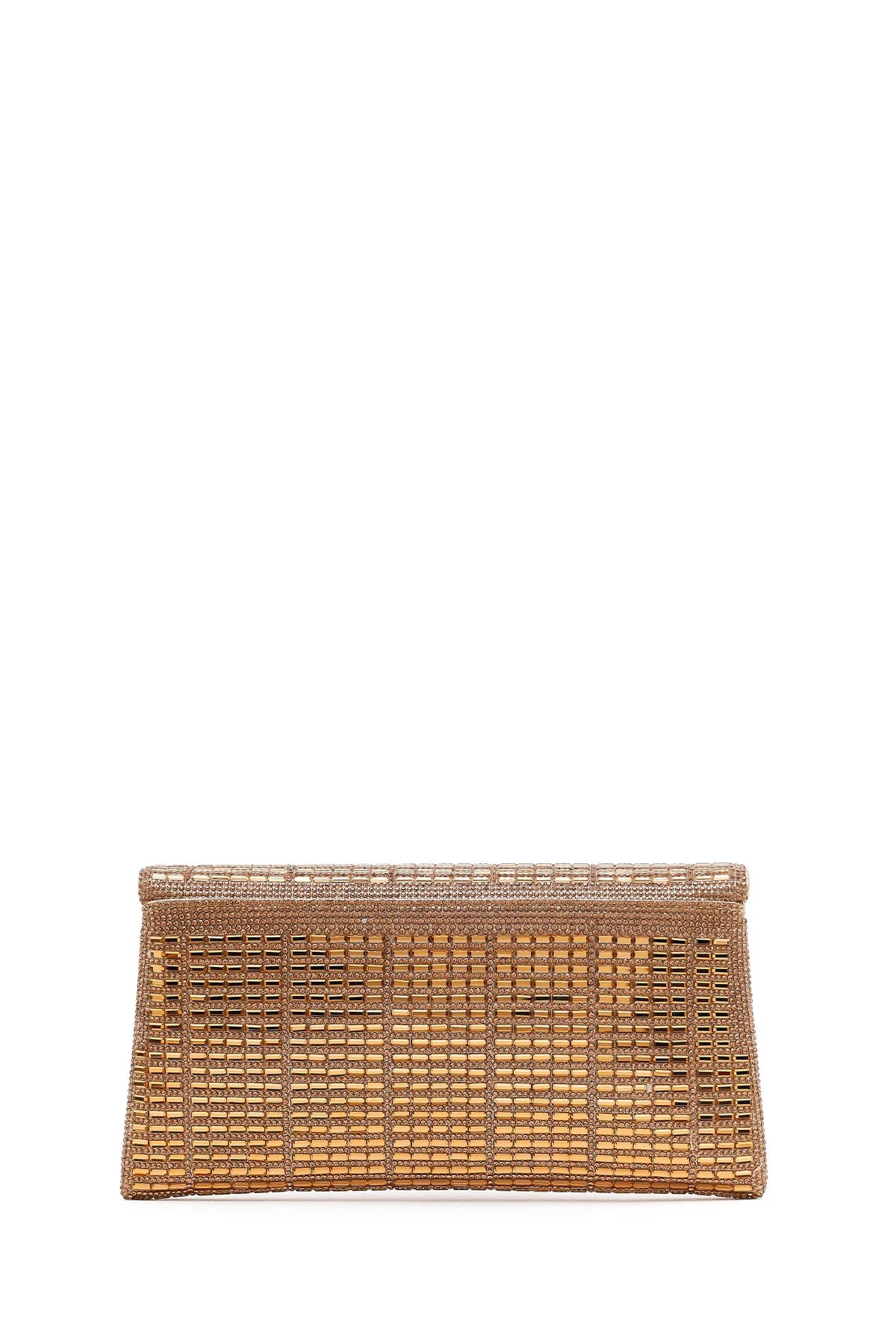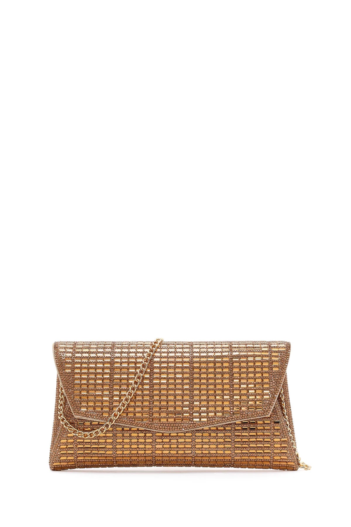 Kadın Altın Uzun Zincir Askılı Taşlı Mini Abiye Portföy Çanta