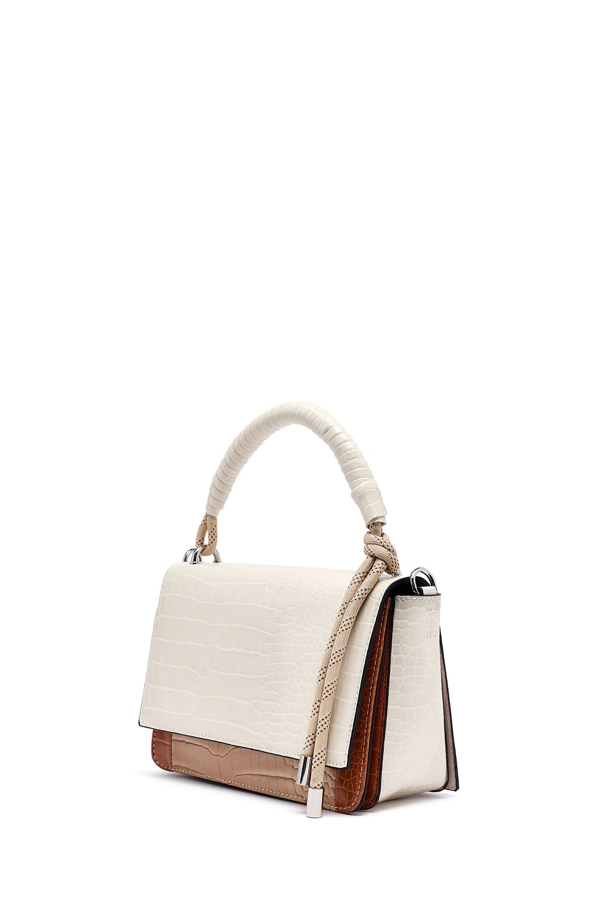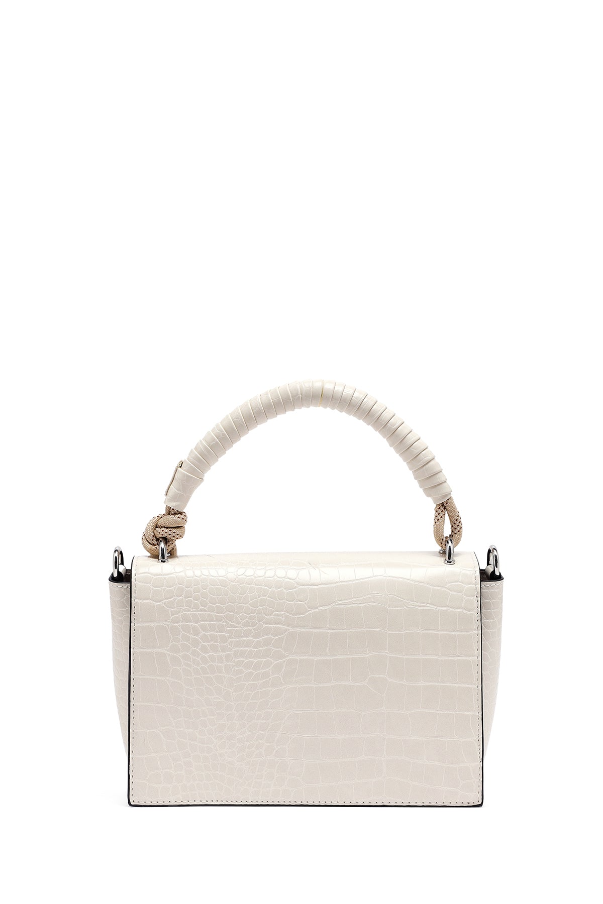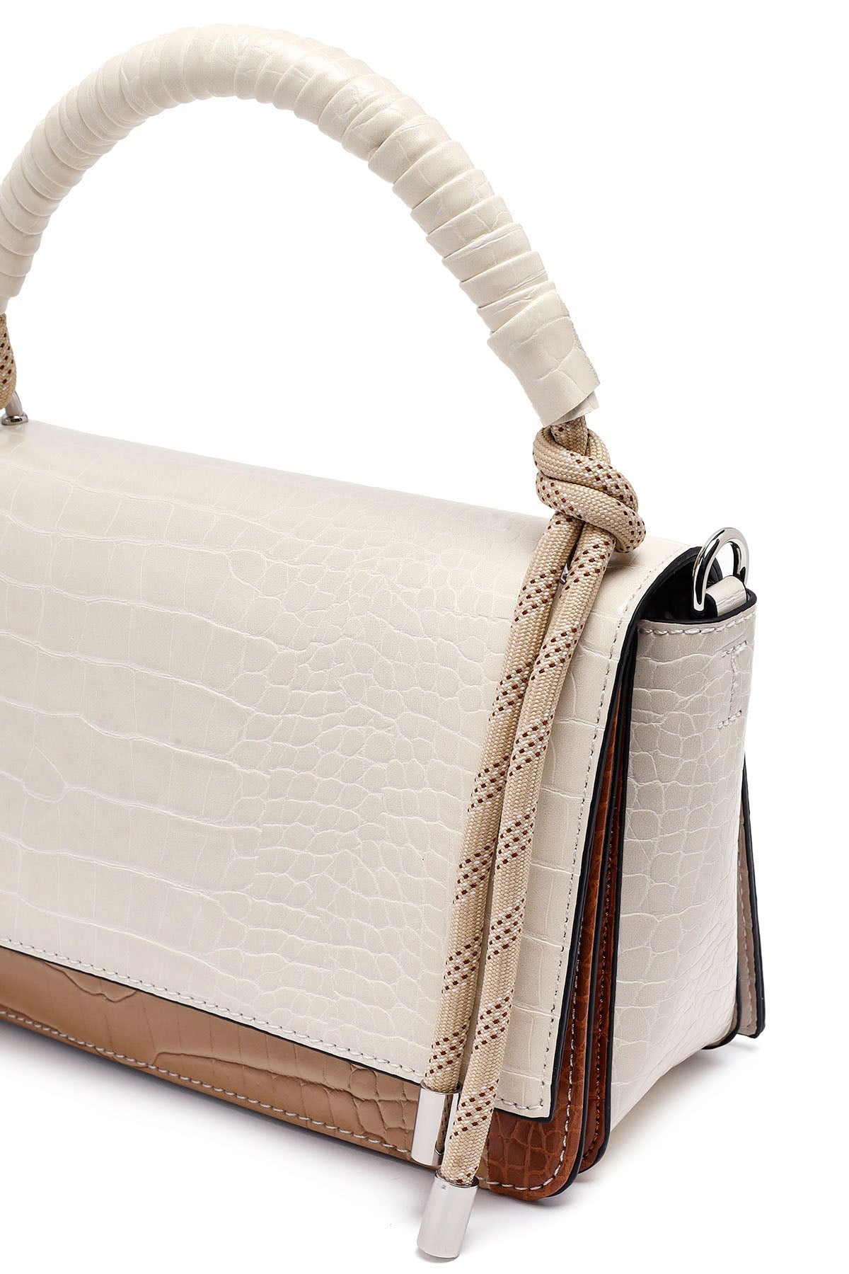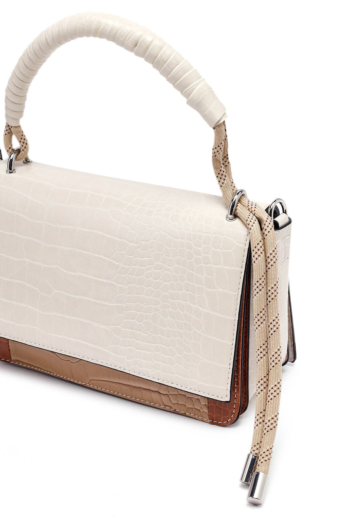 Kadın Bej Uzun Askılı Kroko Desenli Çapraz Çanta