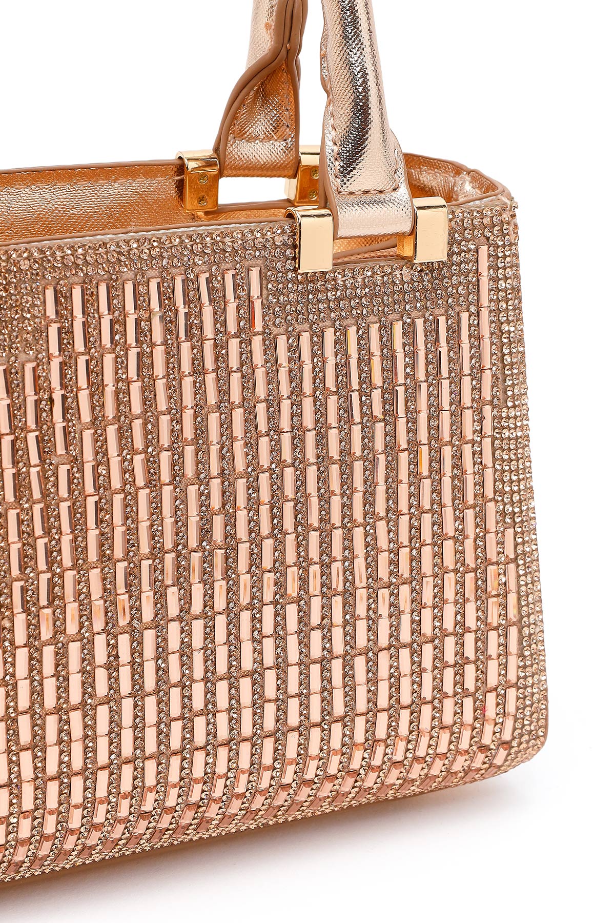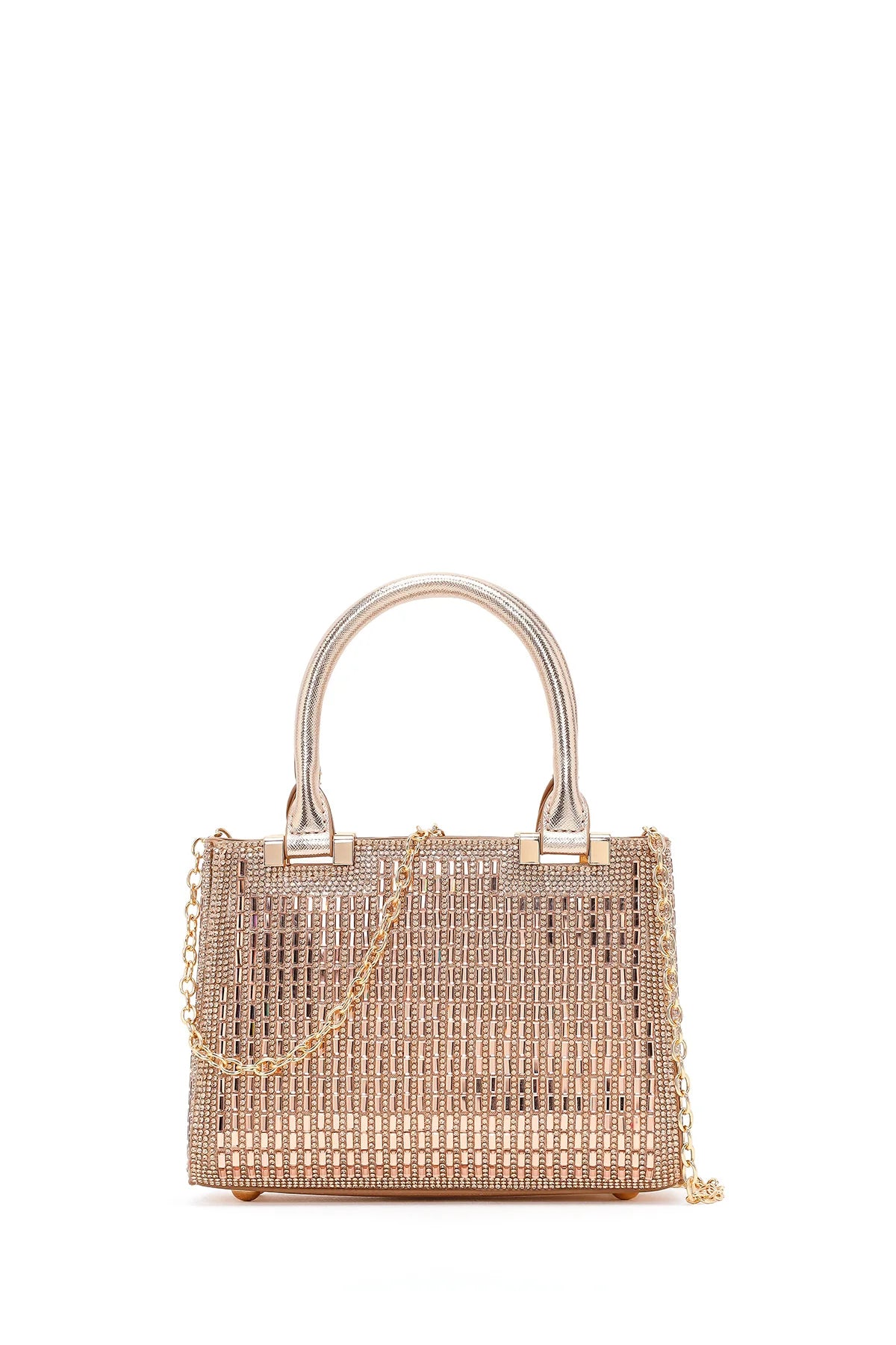 Kadın Bej Uzun Zincir Askılı Taşlı Mini Abiye Çanta