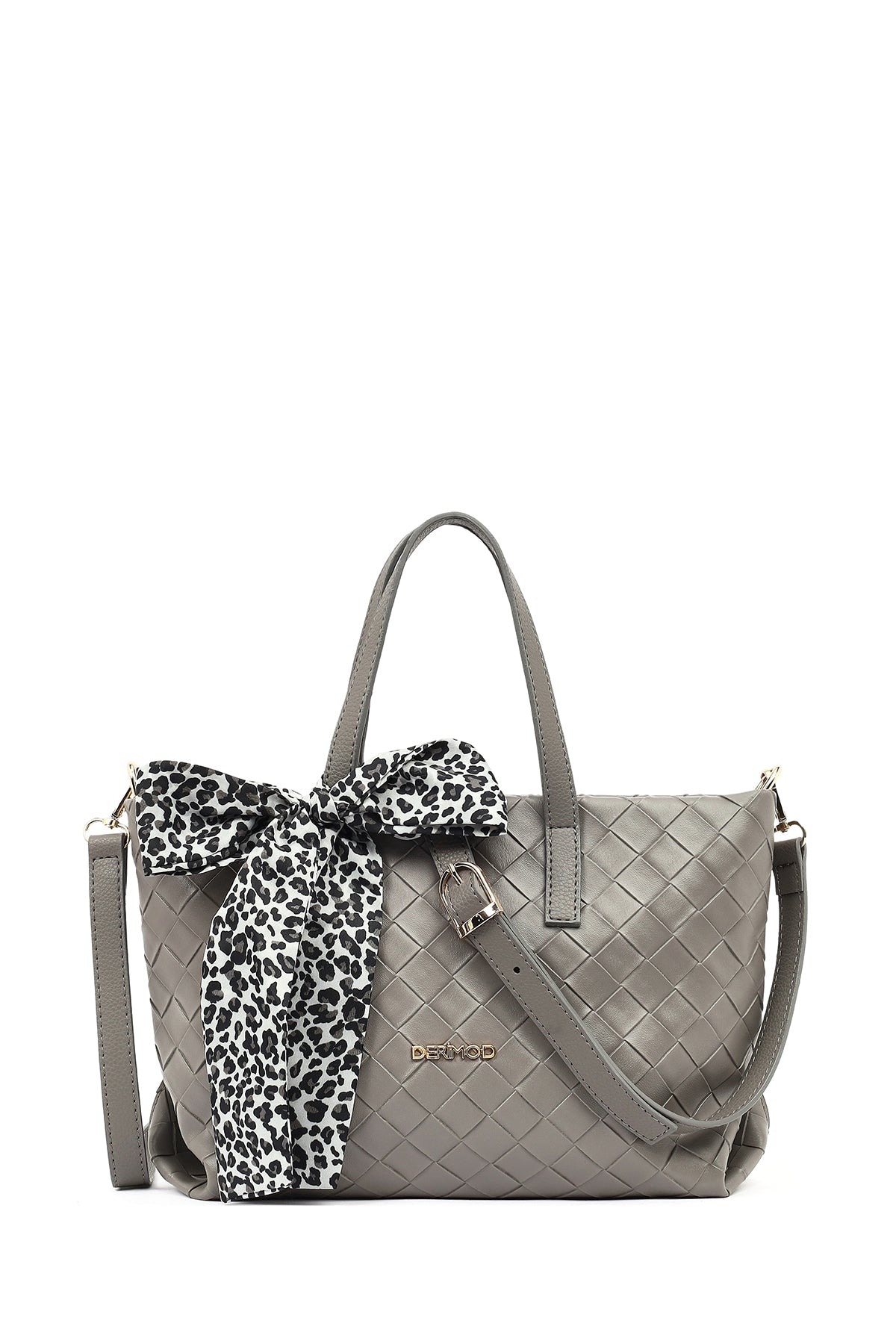 Kadın Gri Uzun Askılı Örgülü Kol Çantası