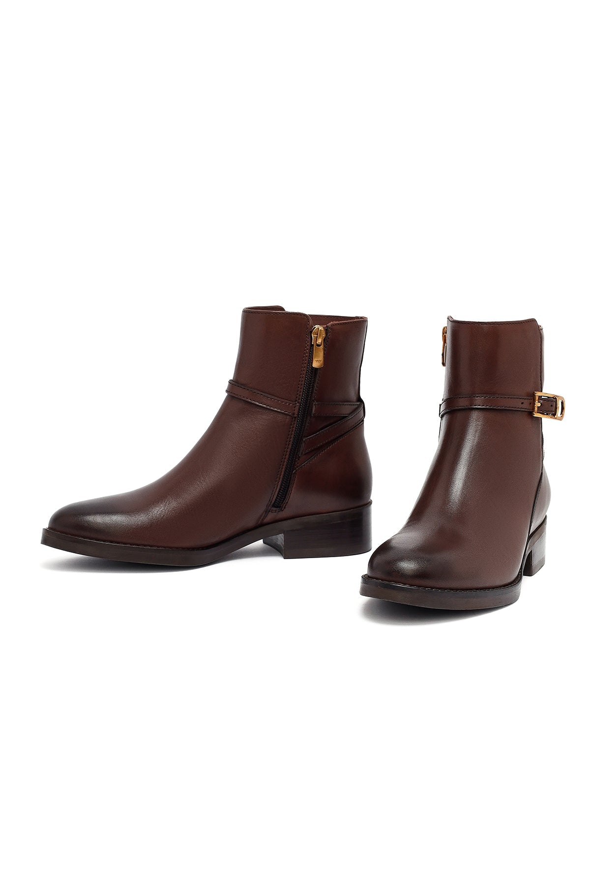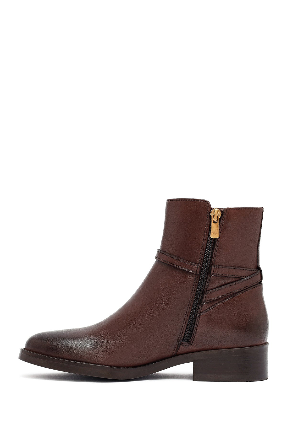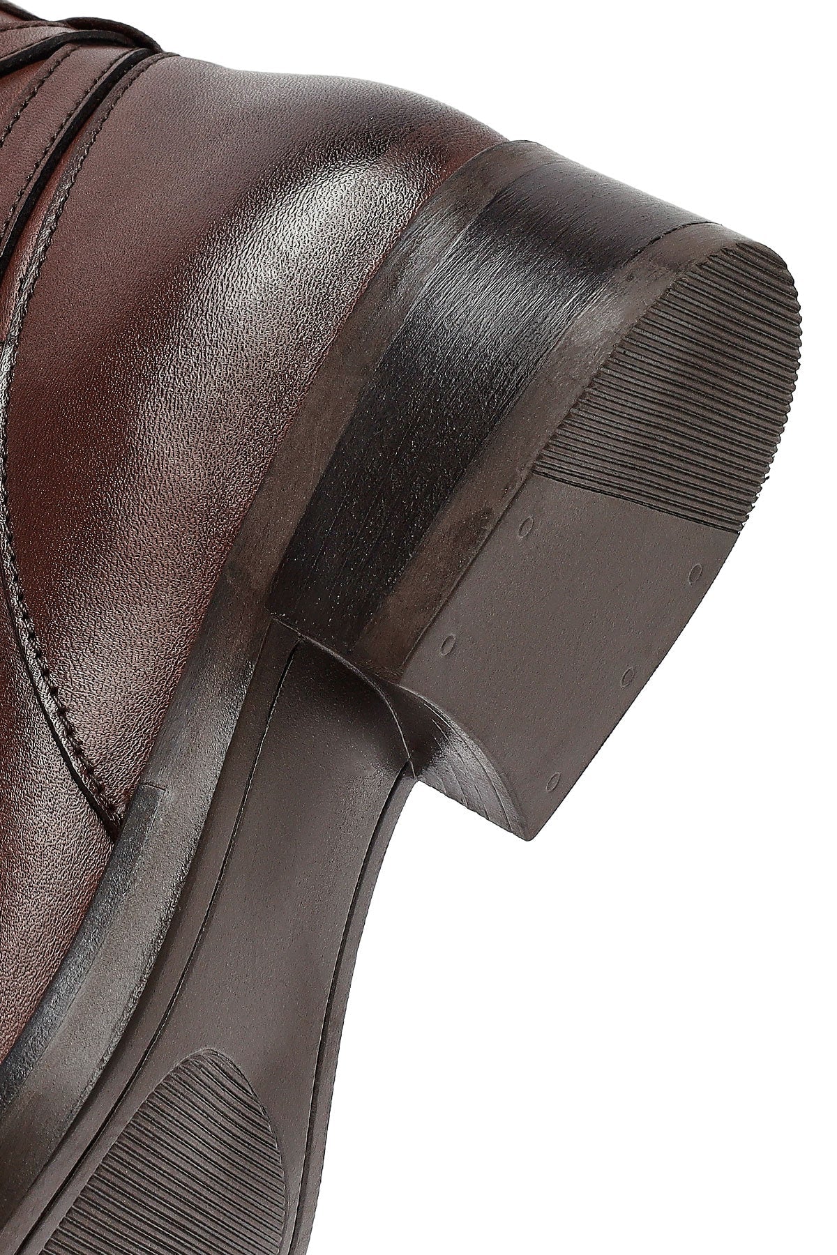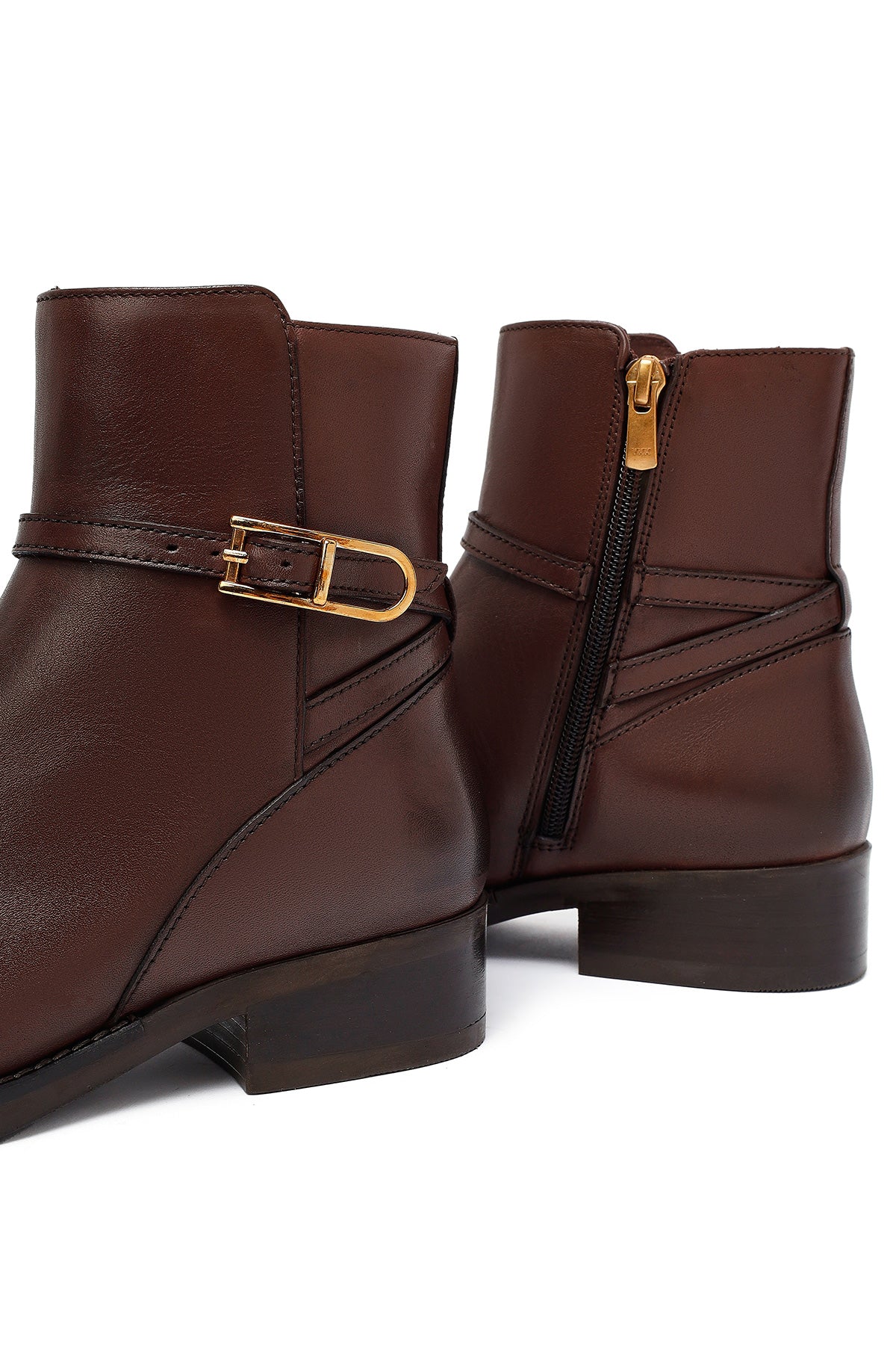 Kadın Kahverengi Fermuarlı Deri Bot