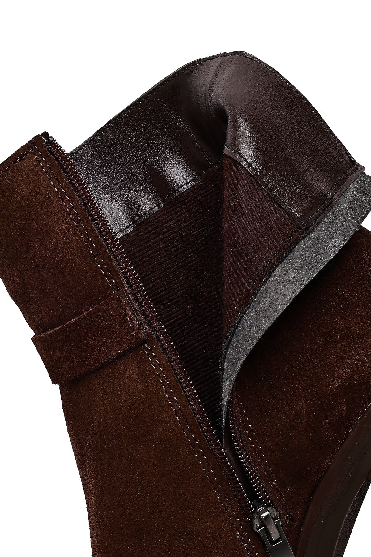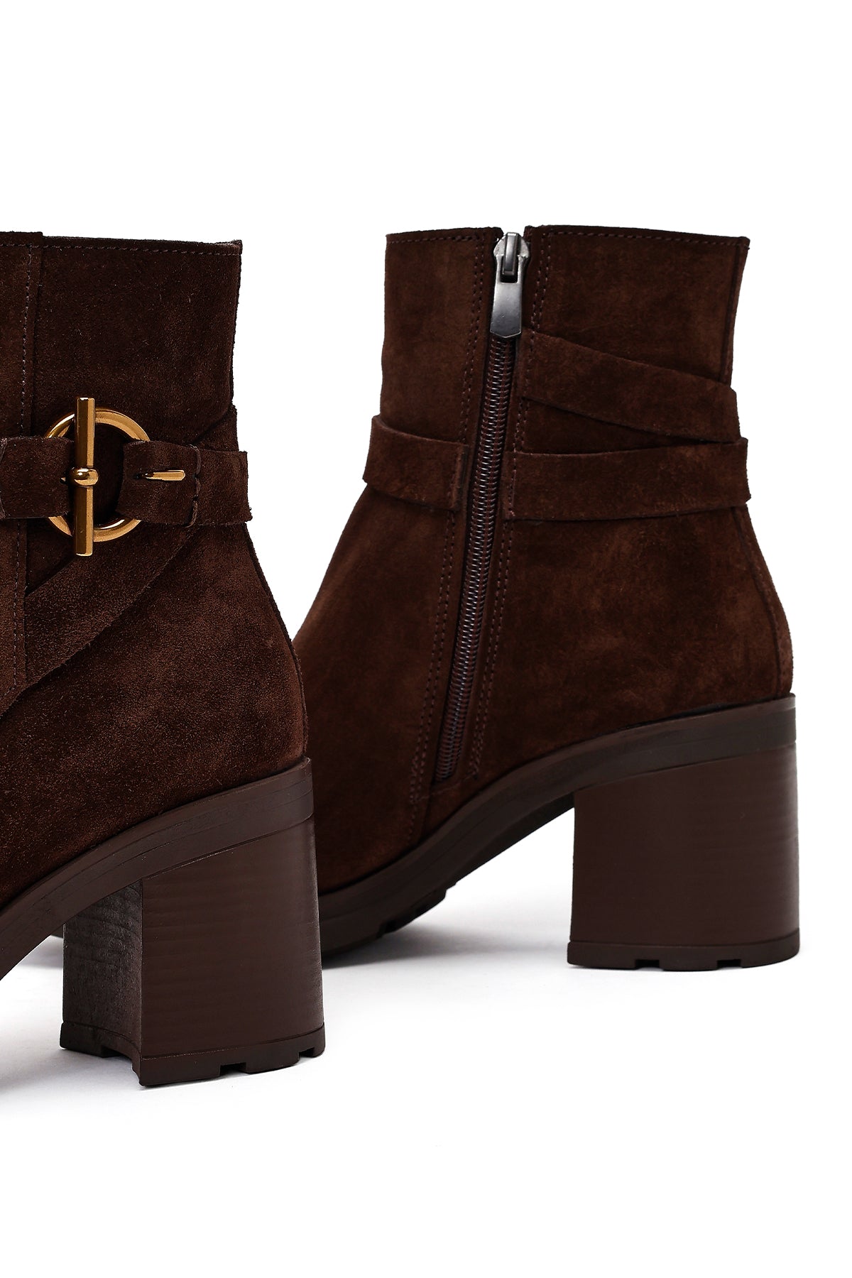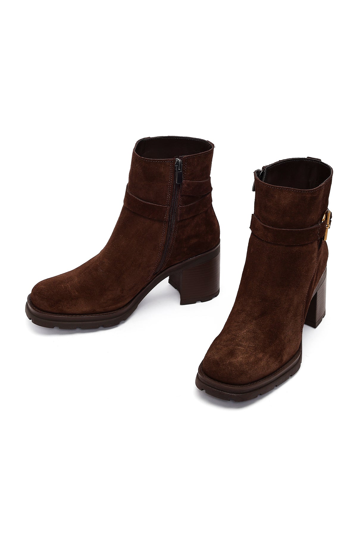 Kadın Kahverengi Fermuarlı Kalın Topuklu Süet Deri Bot