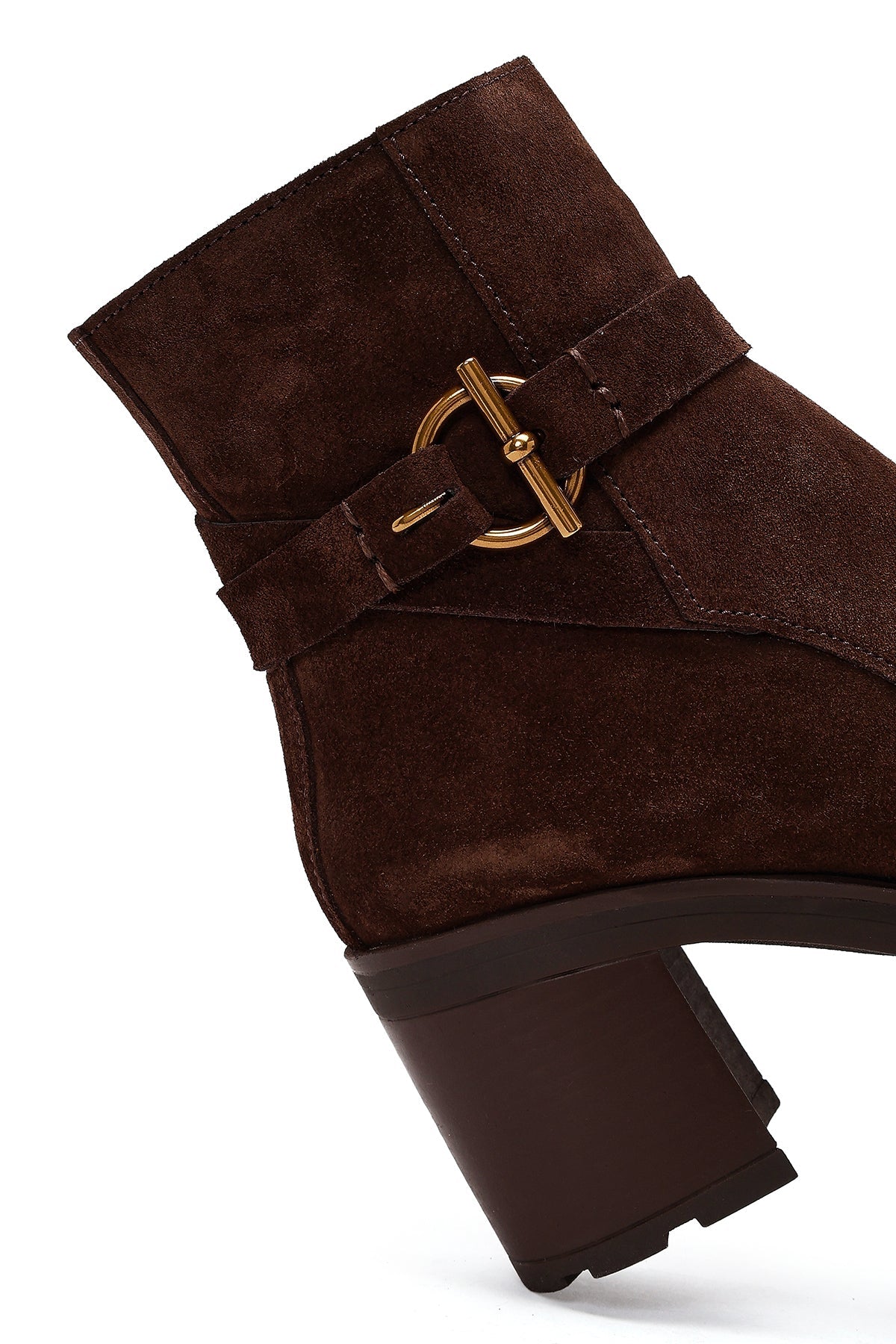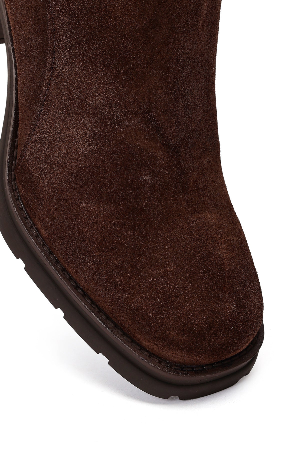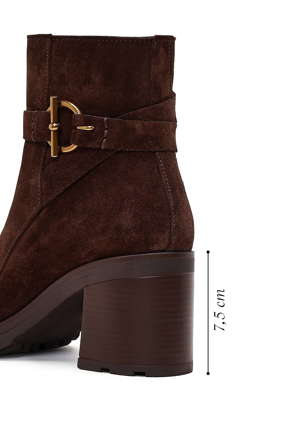 Kadın Kahverengi Fermuarlı Kalın Topuklu Süet Deri Bot