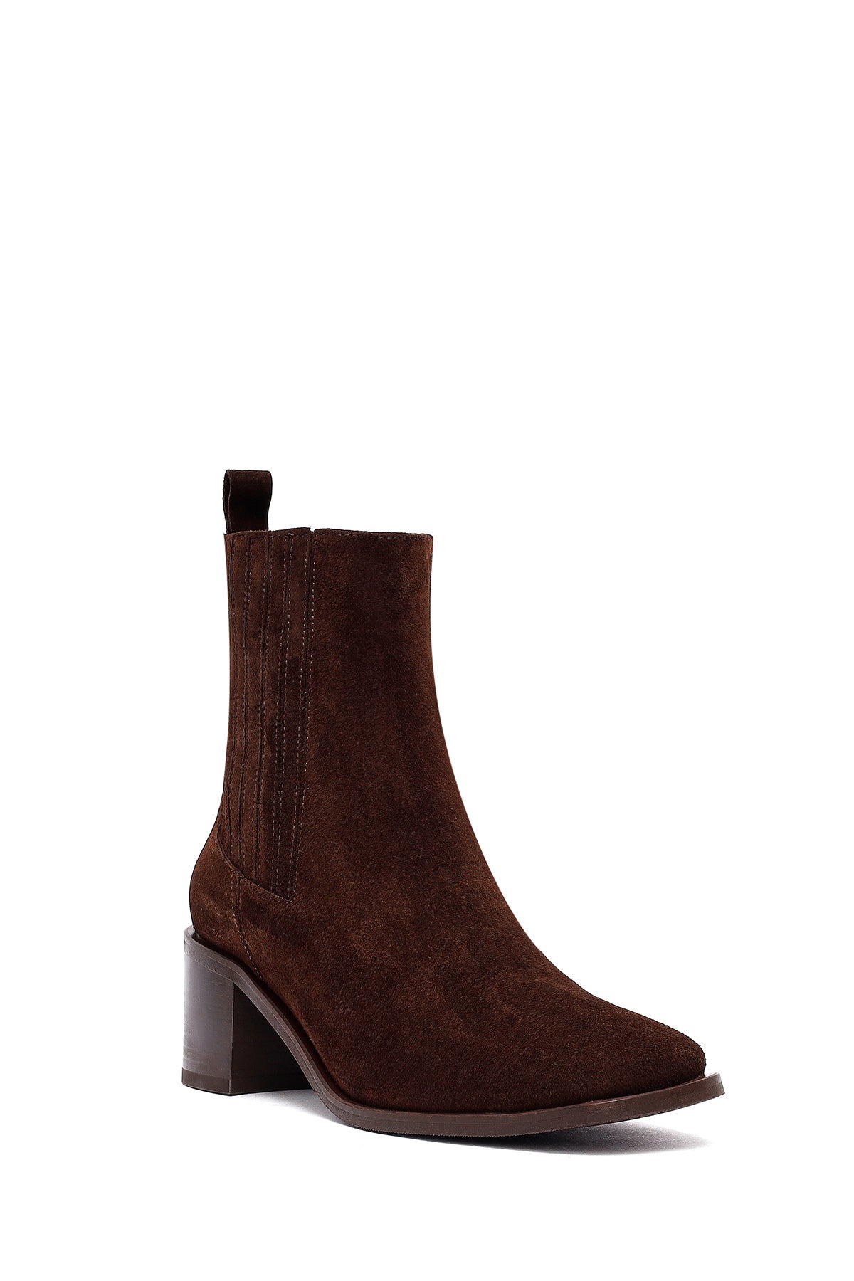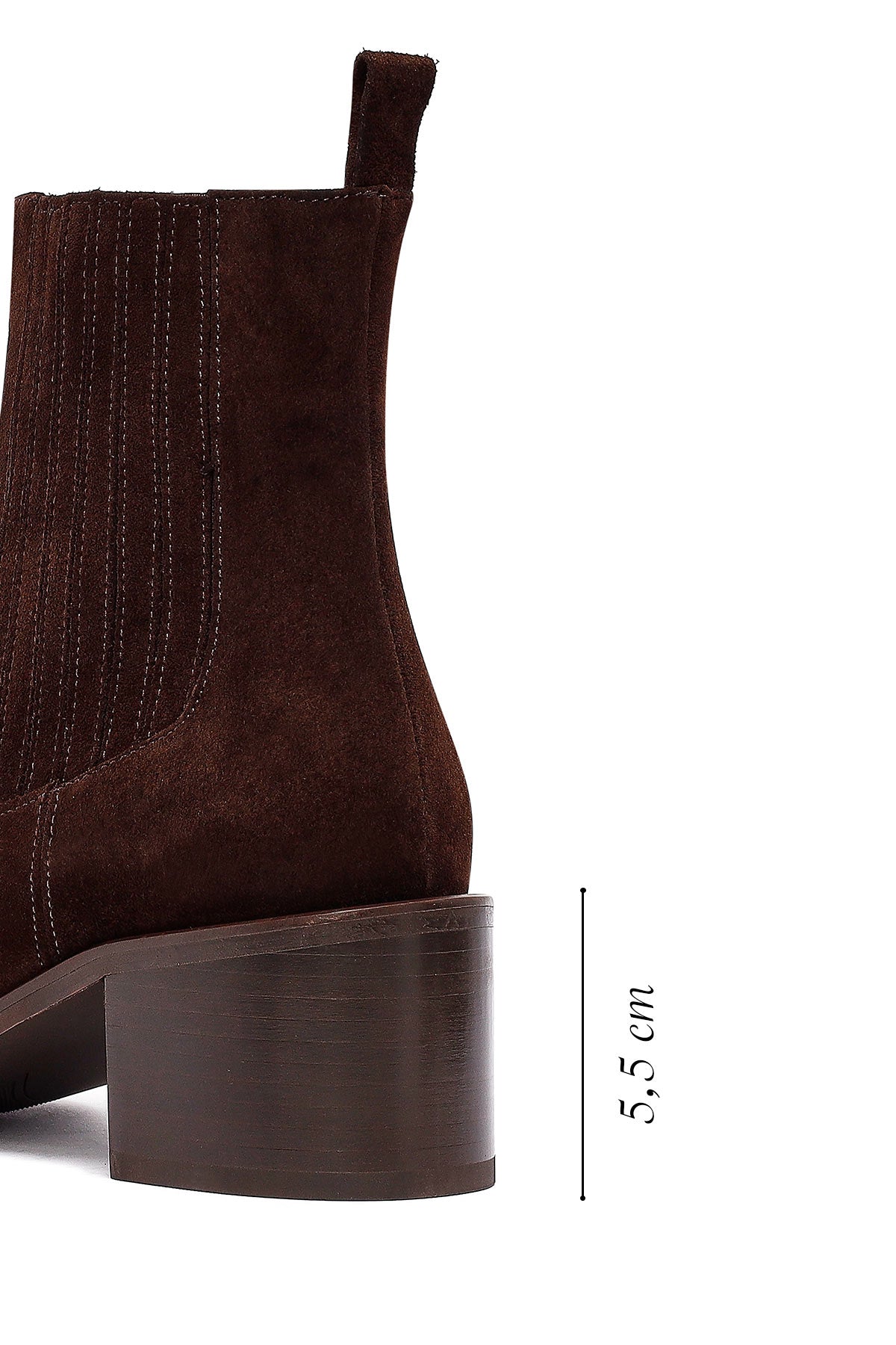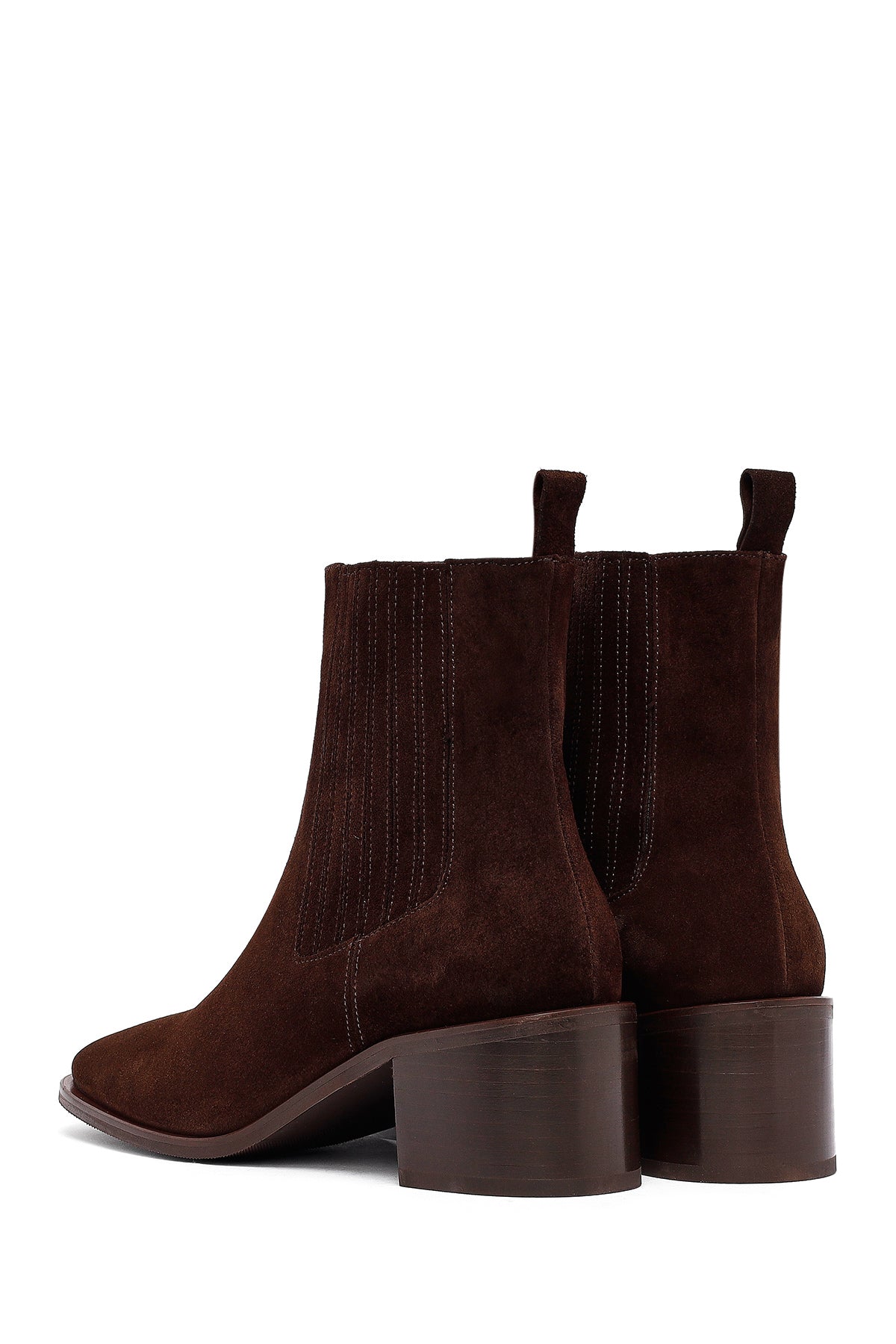 Kadın Kahverengi Kalın Topuklu Süet Deri Chelsea Bot