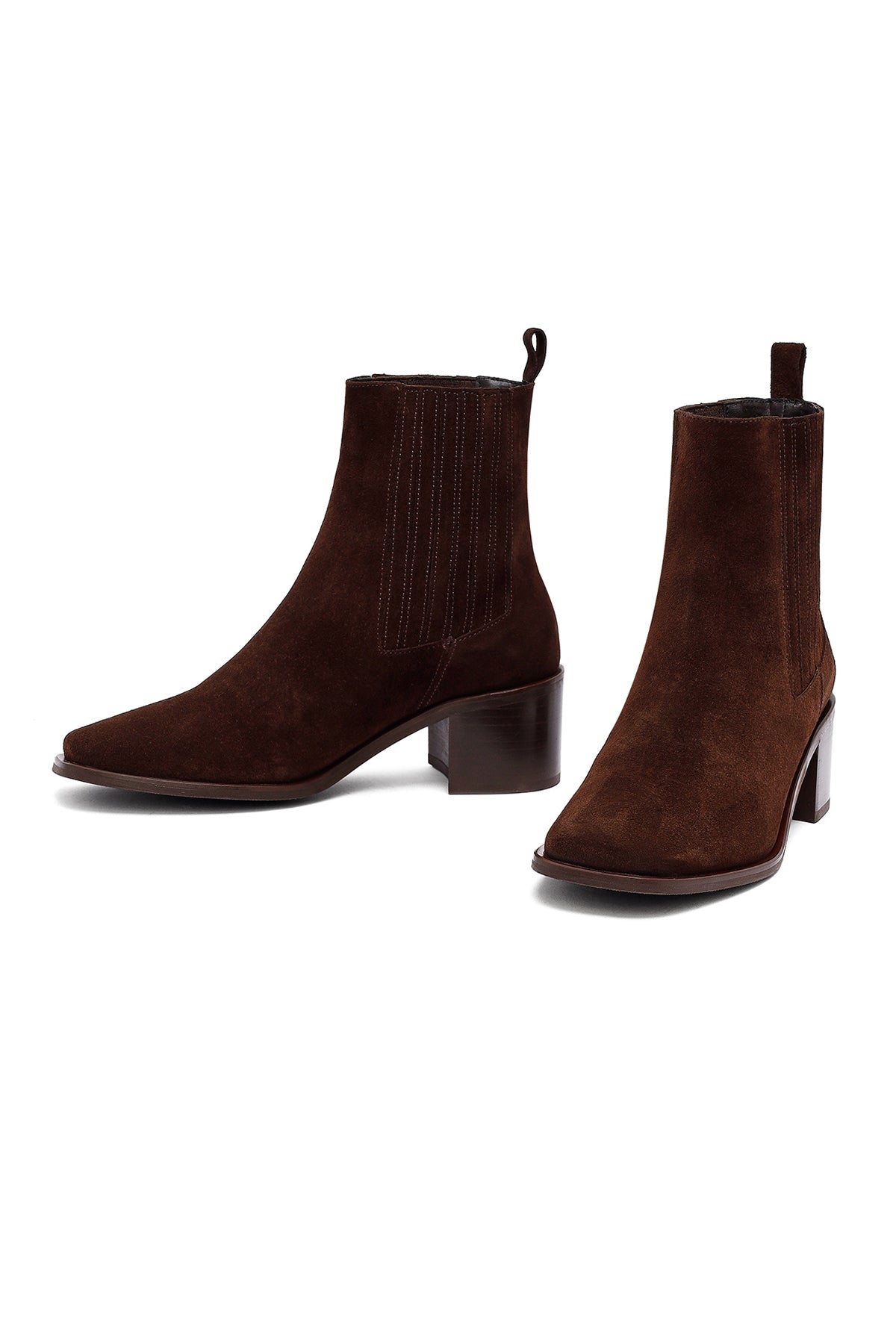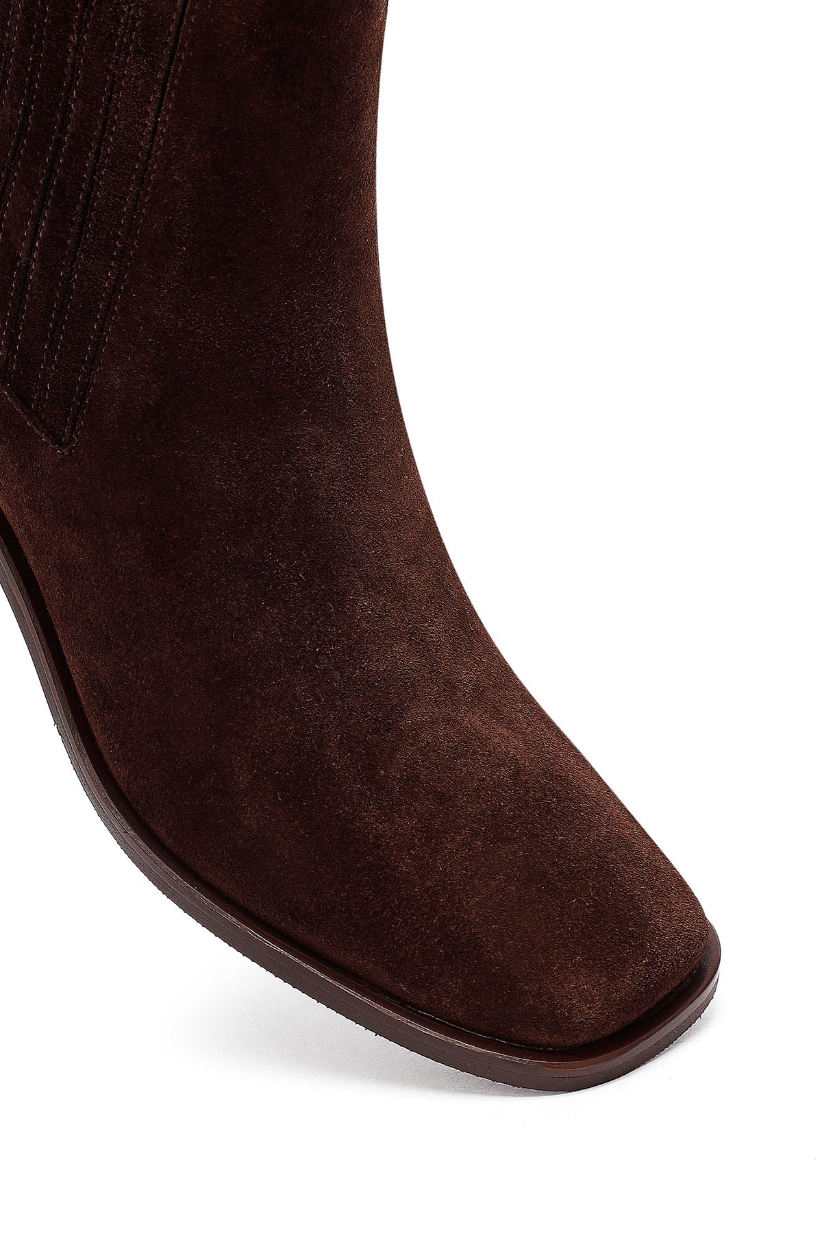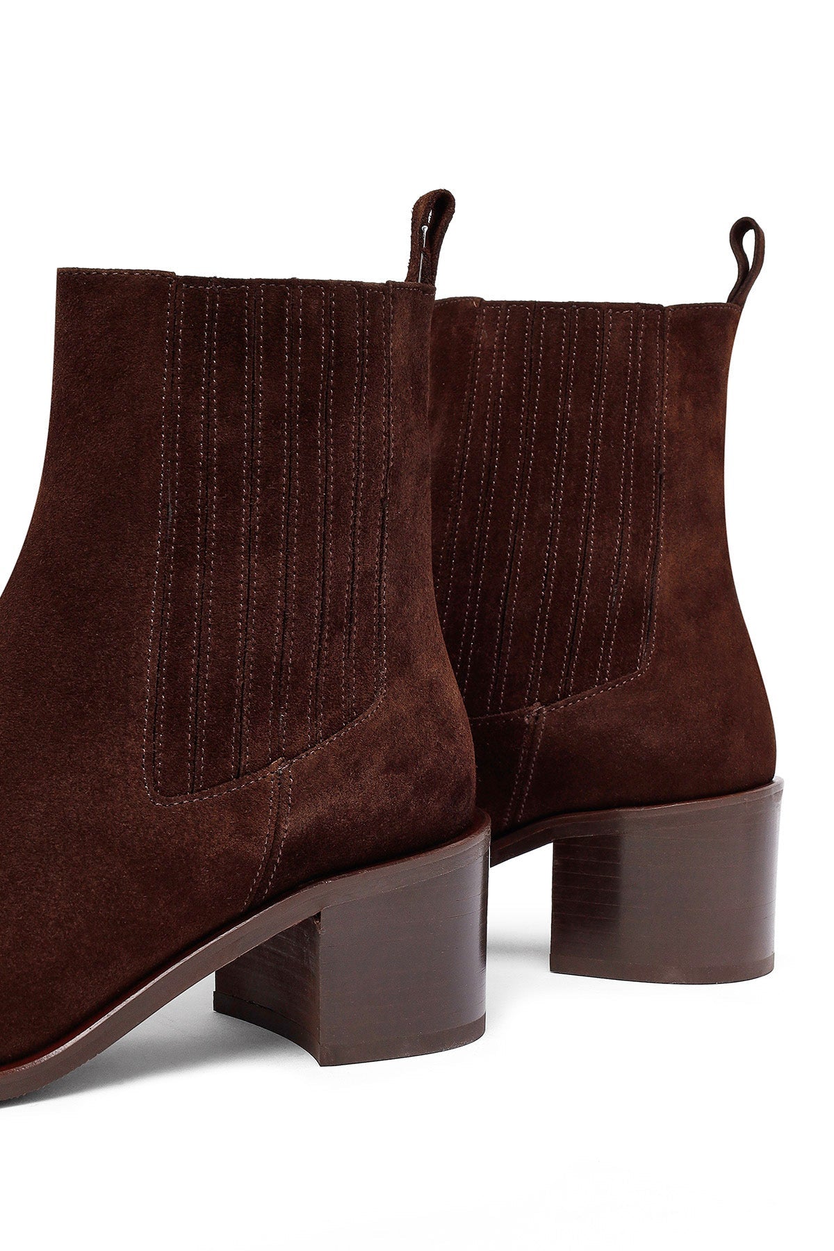Kadın Kahverengi Kalın Topuklu Süet Deri Chelsea Bot