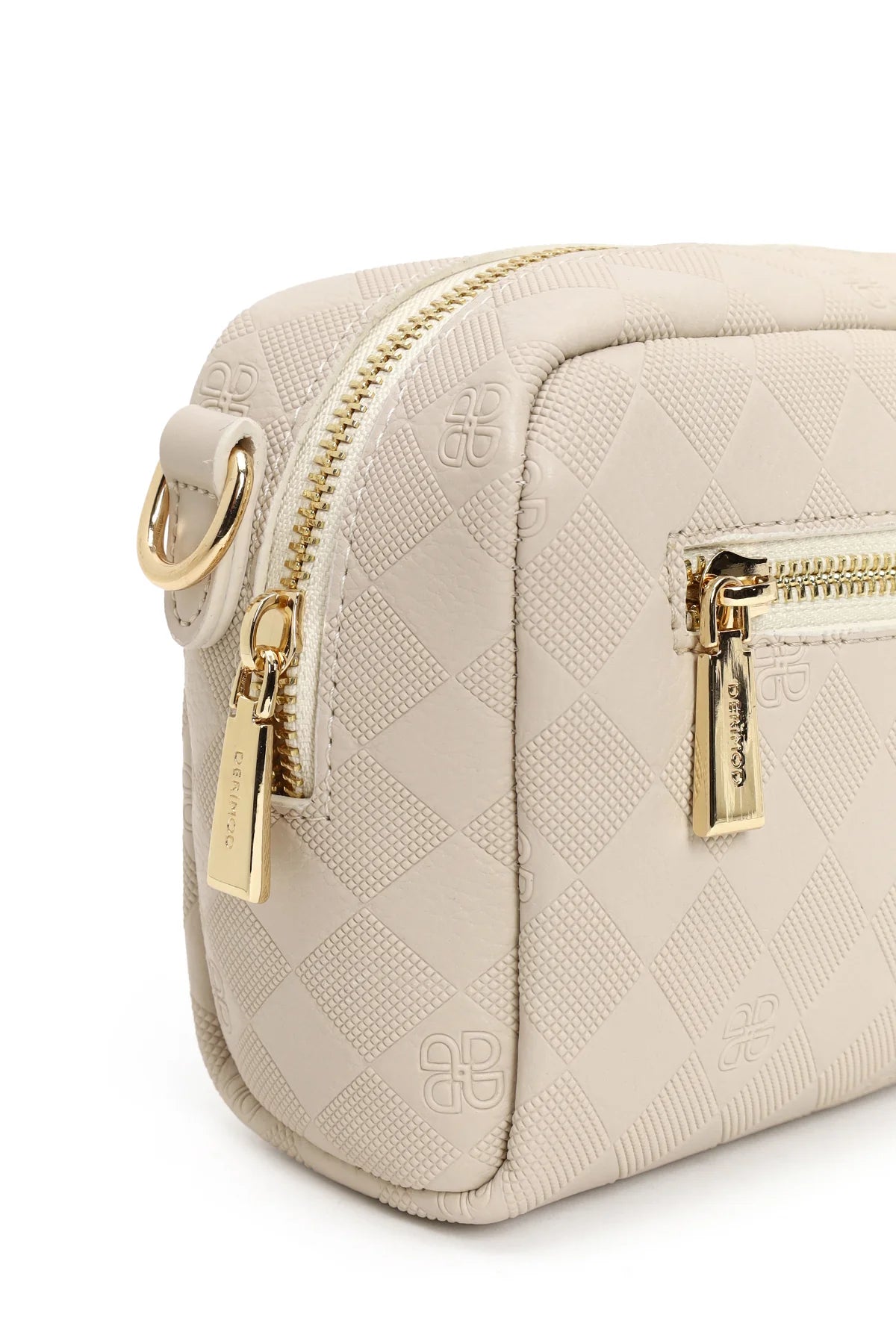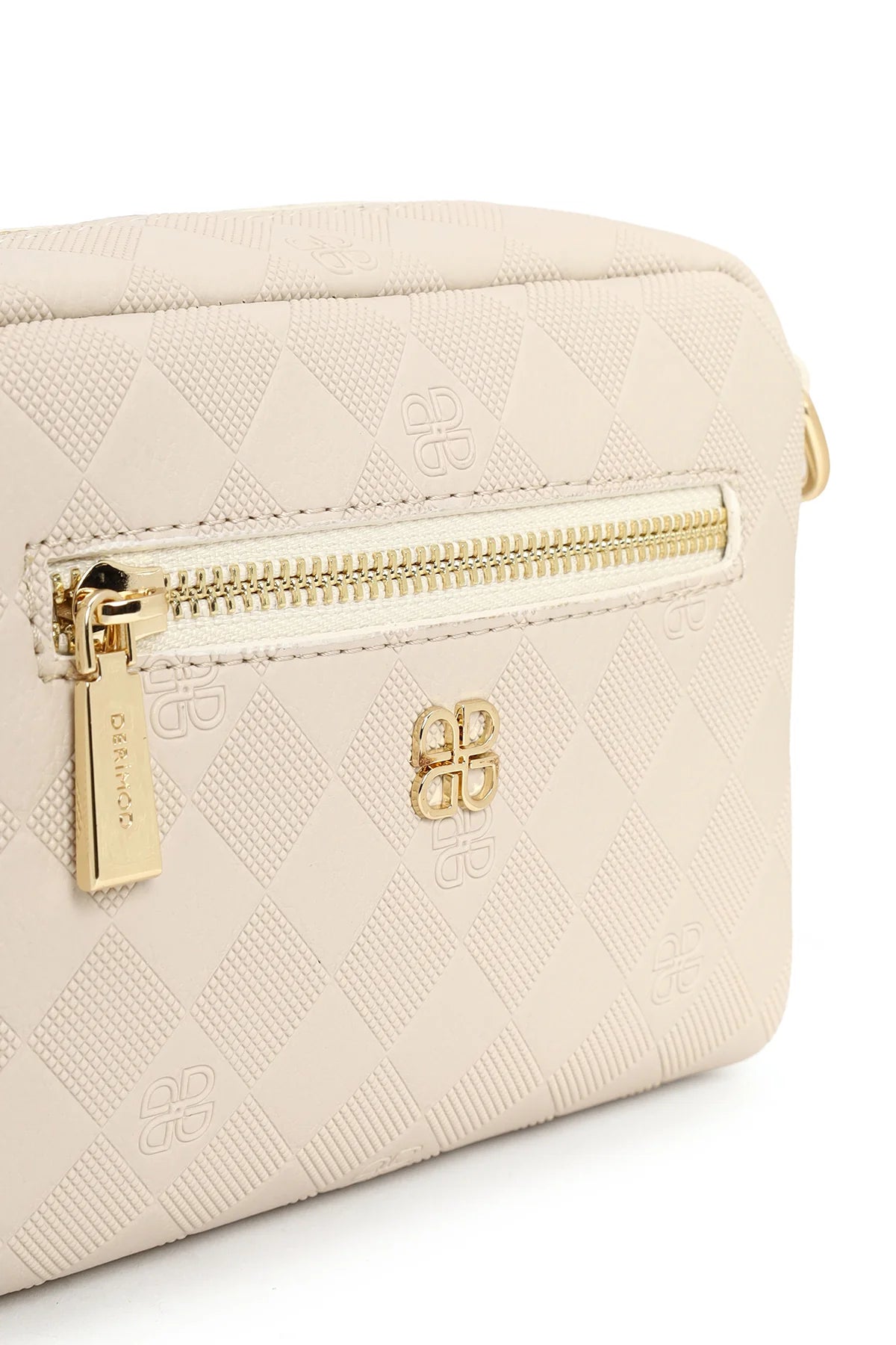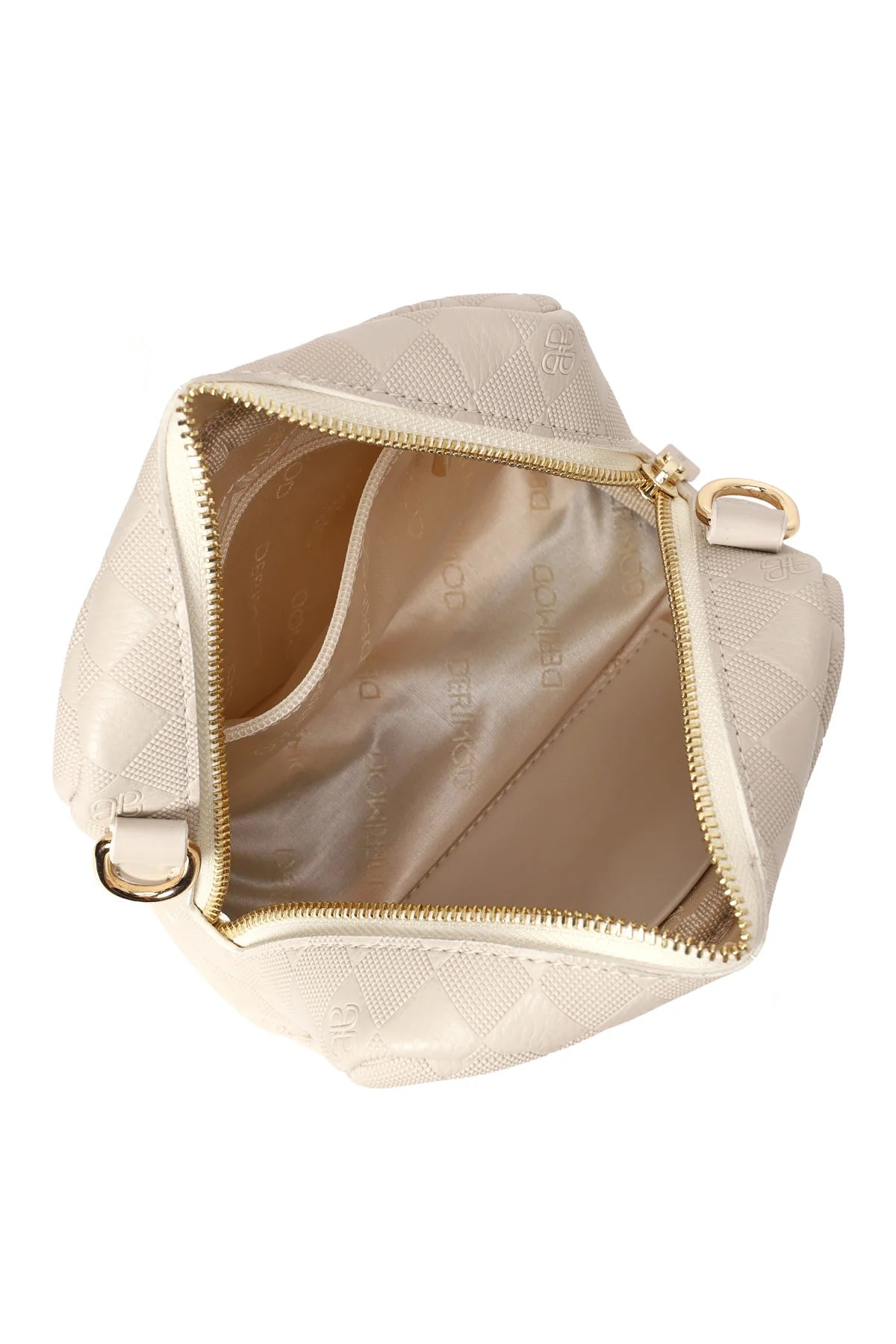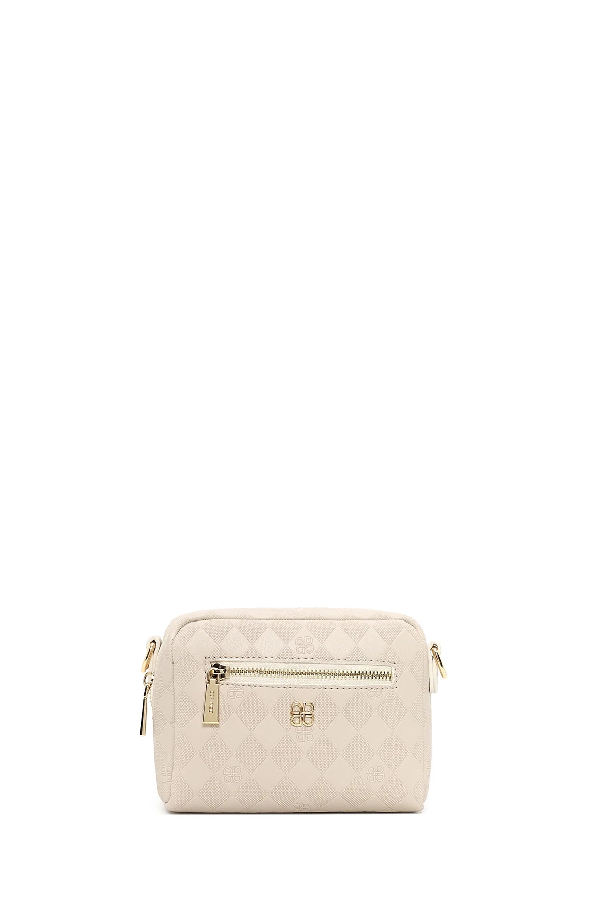 Kadın Krem Uzun Askılı Baskılı Mini Çapraz Çanta