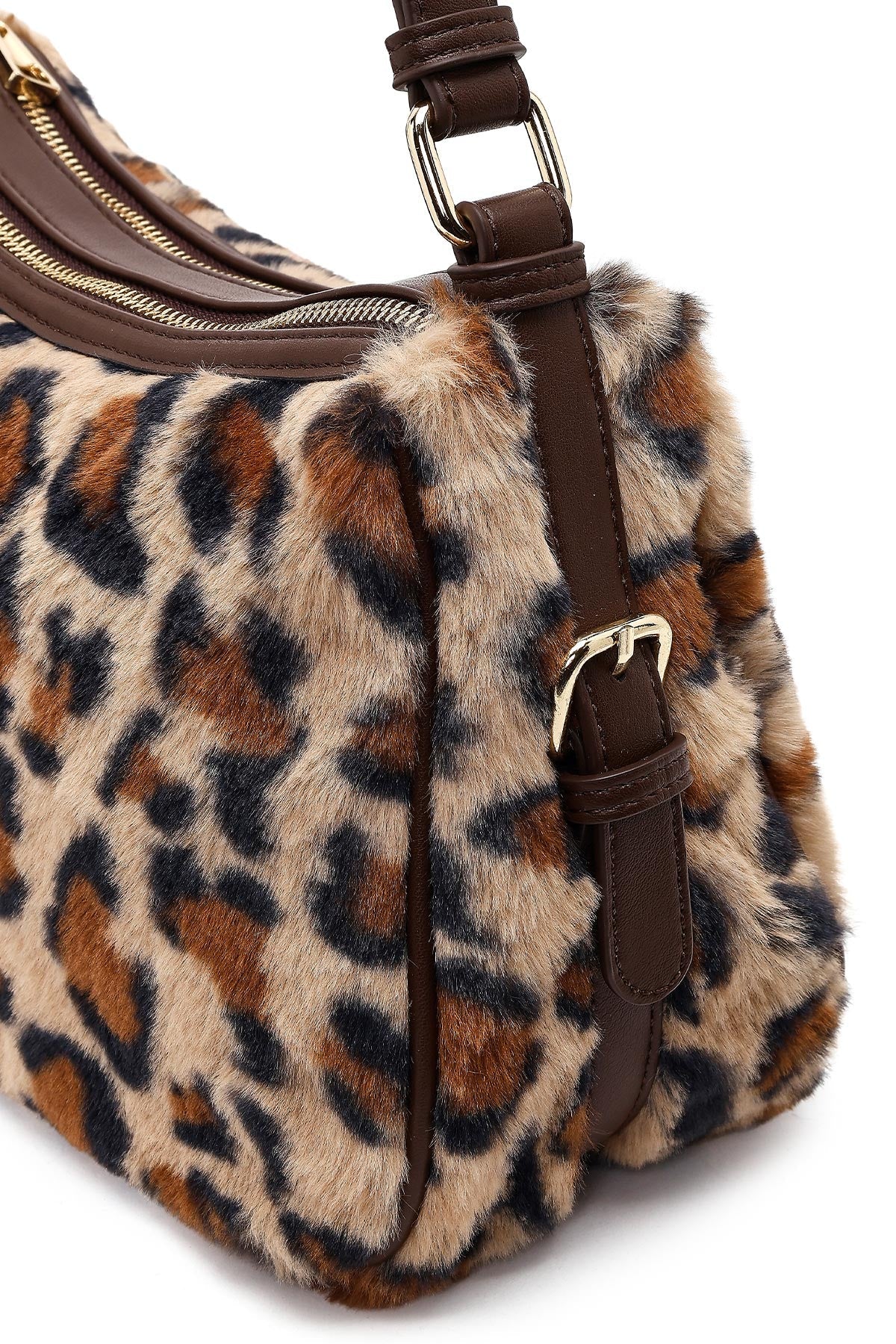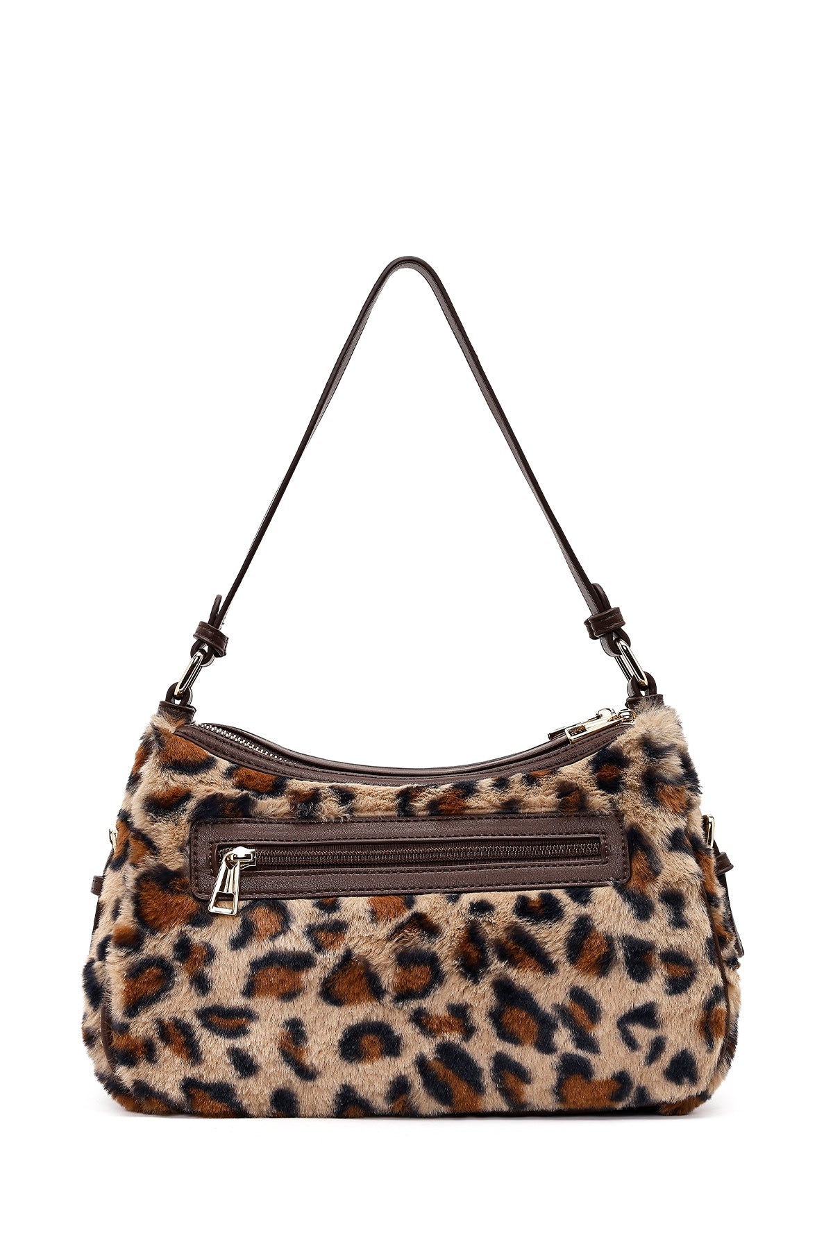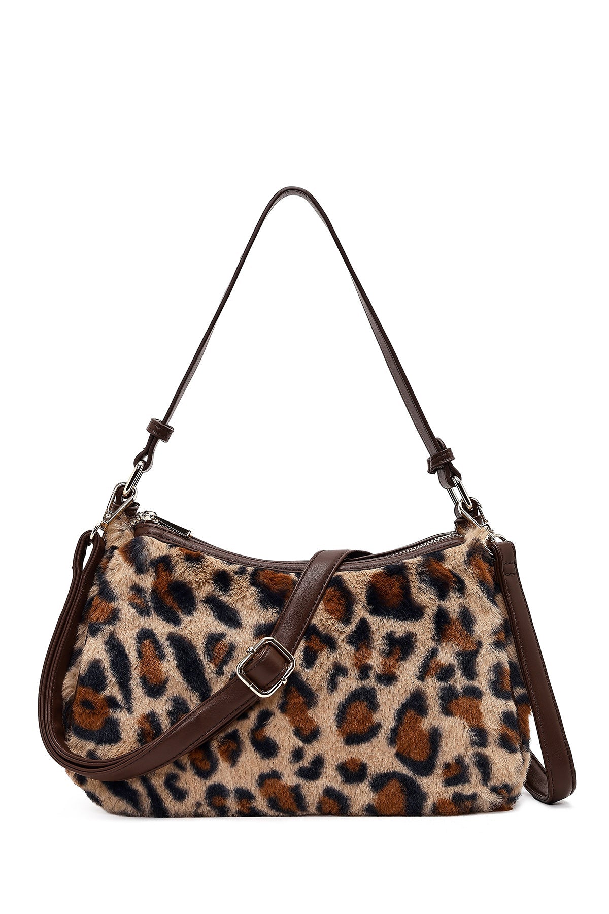 Kadın Leopar Uzun Askılı Peluş Omuz Çantası