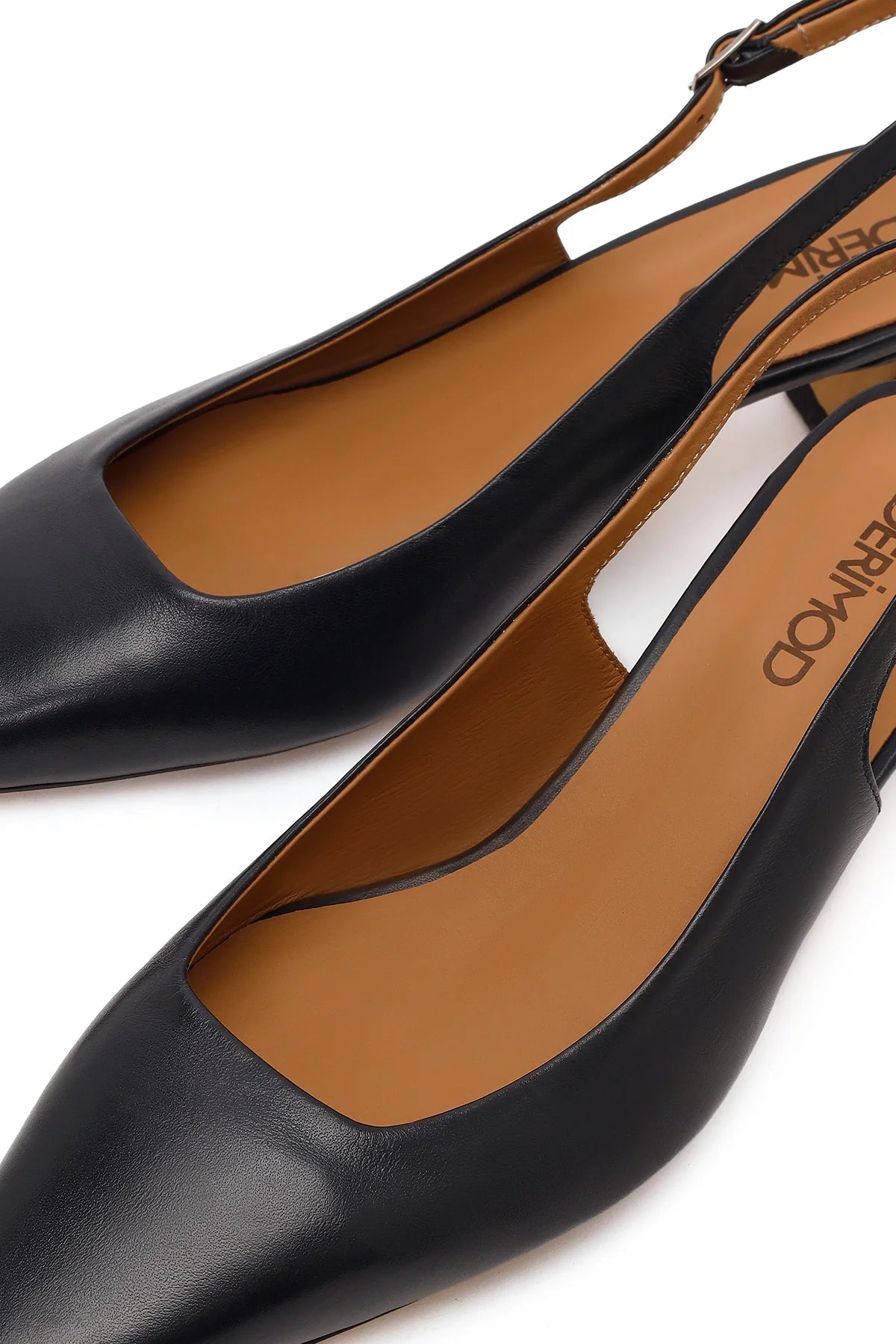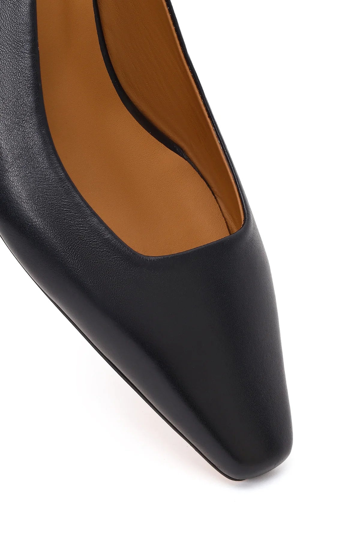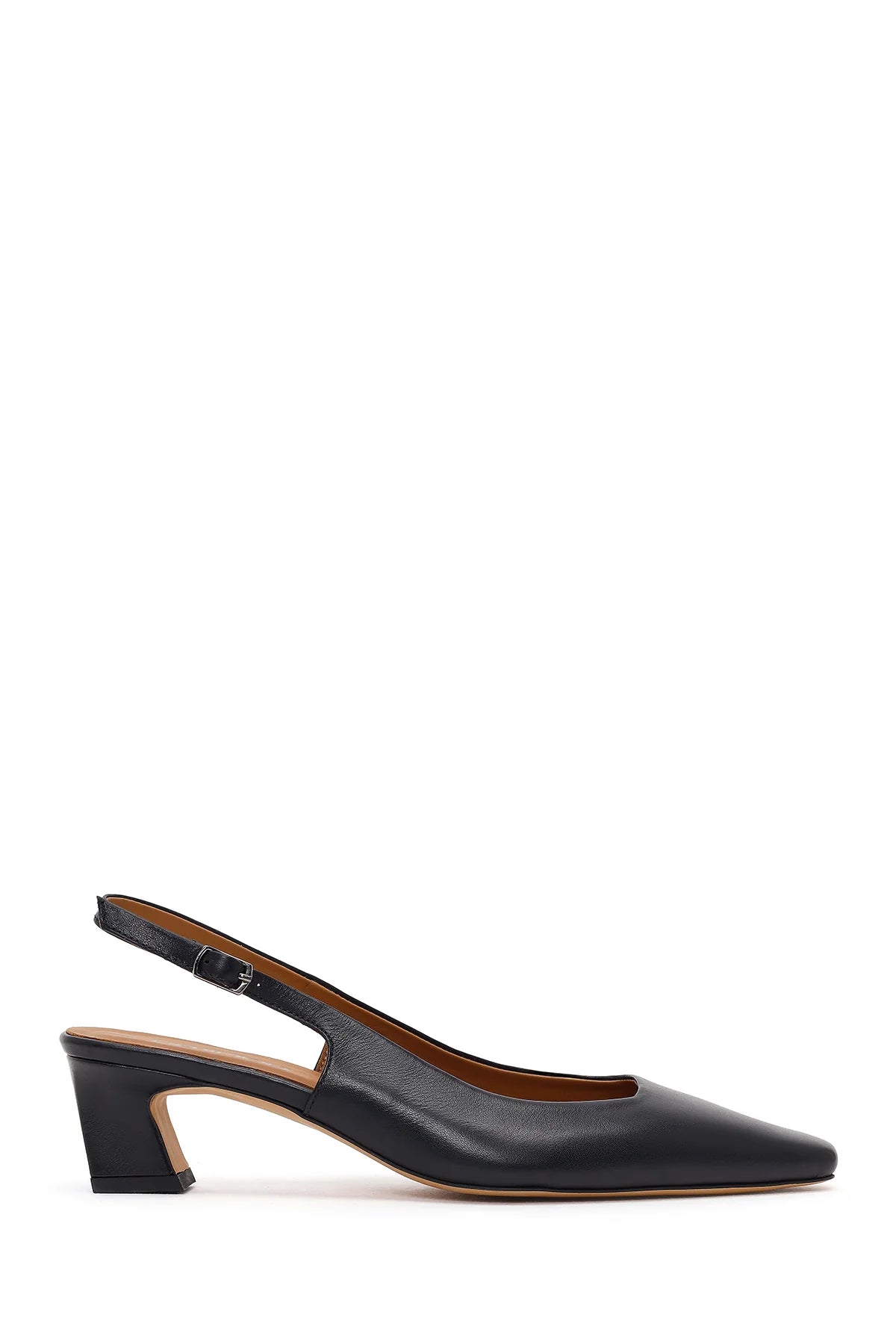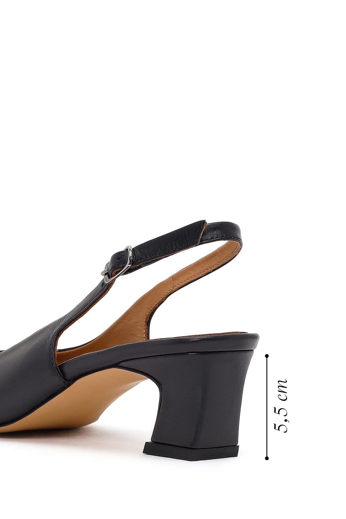 Kadın Siyah Arkası Açık Kısa Kalın Topuklu Deri Ayakkabı