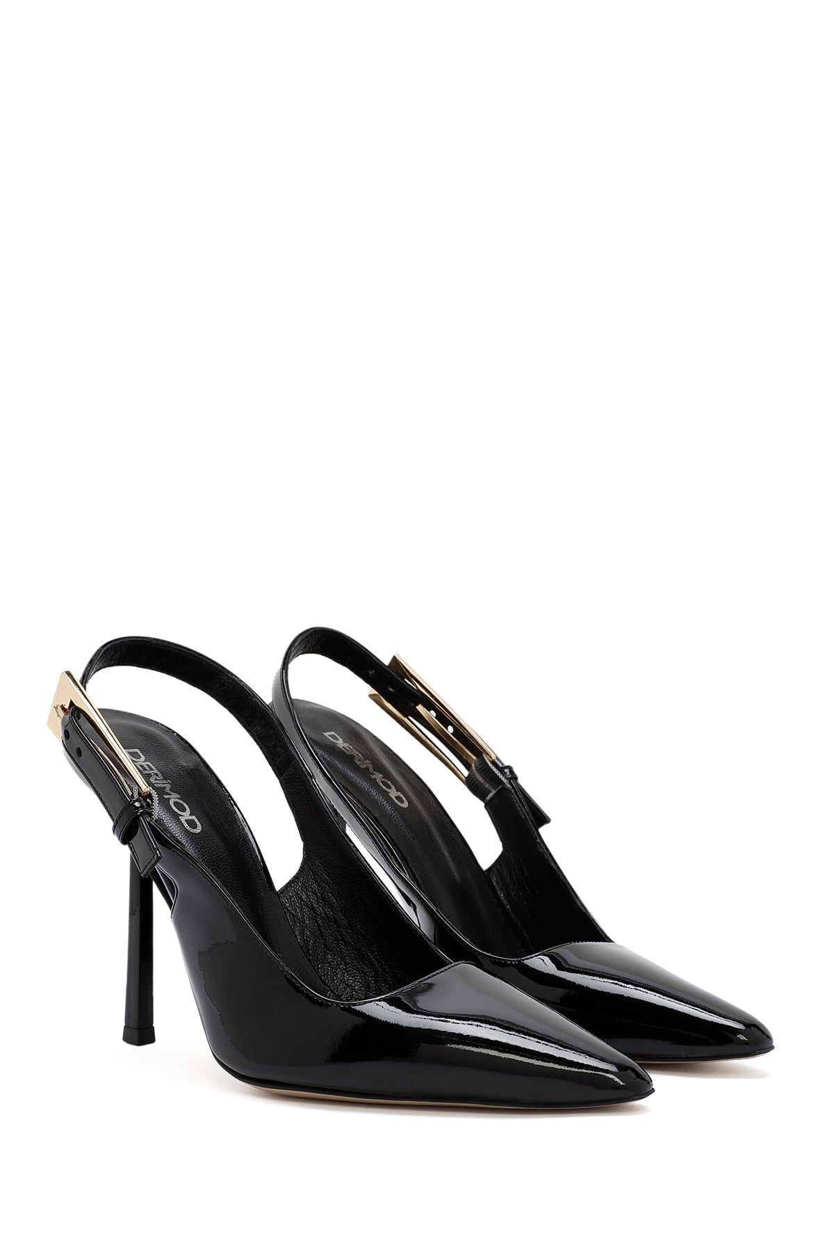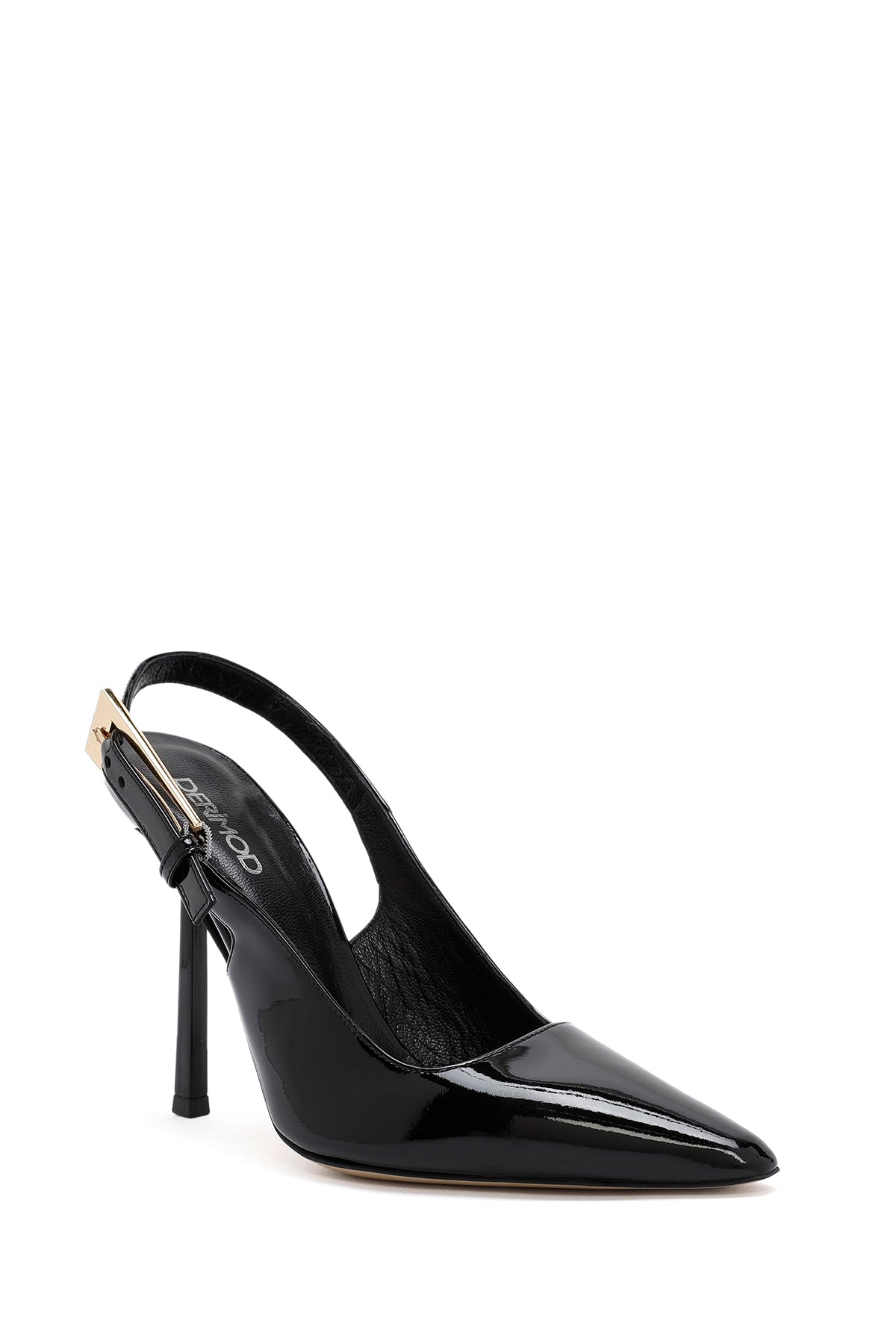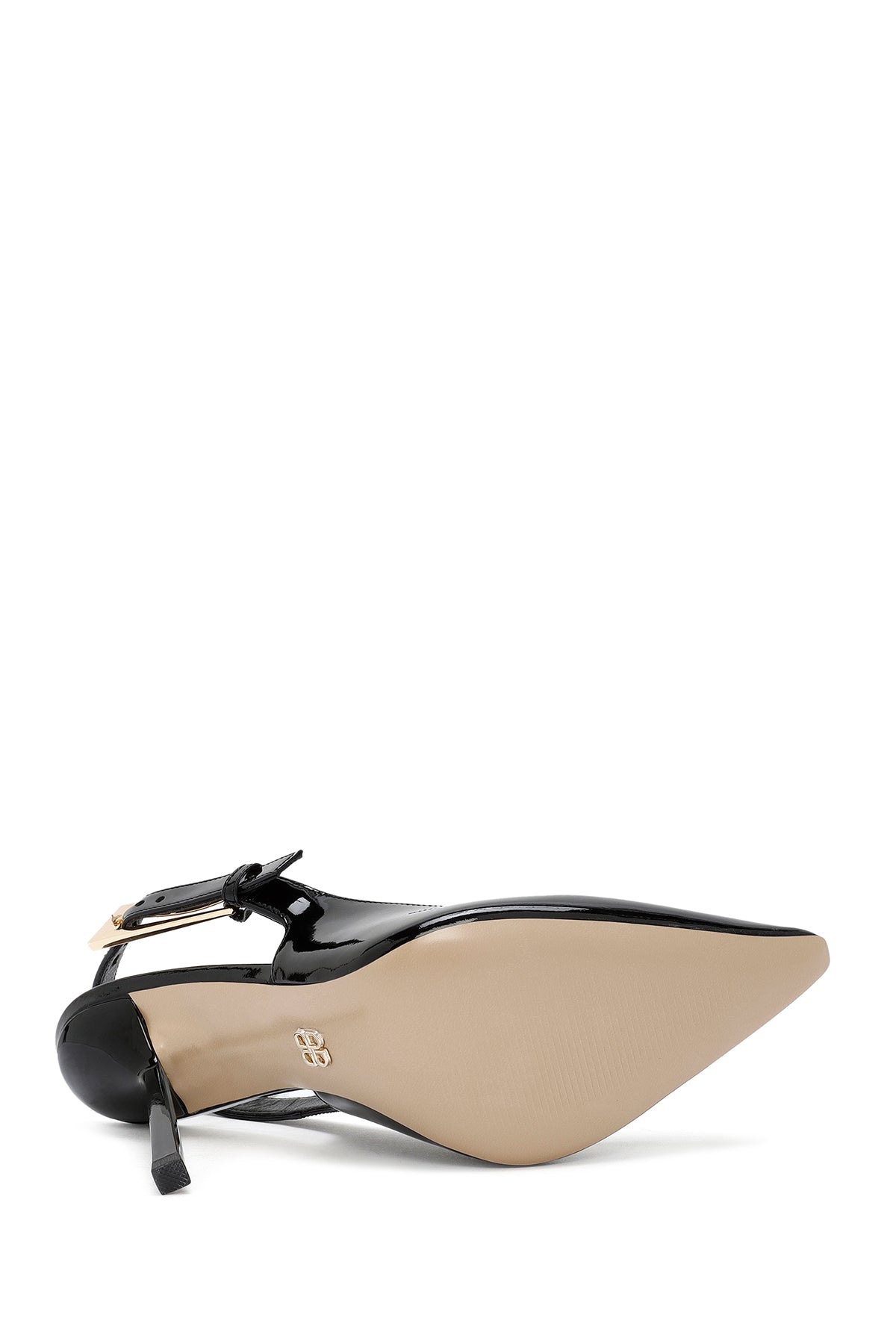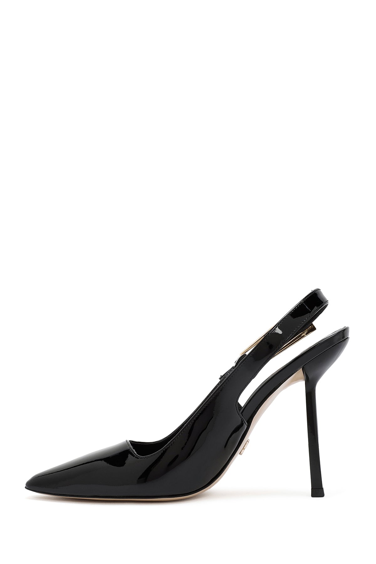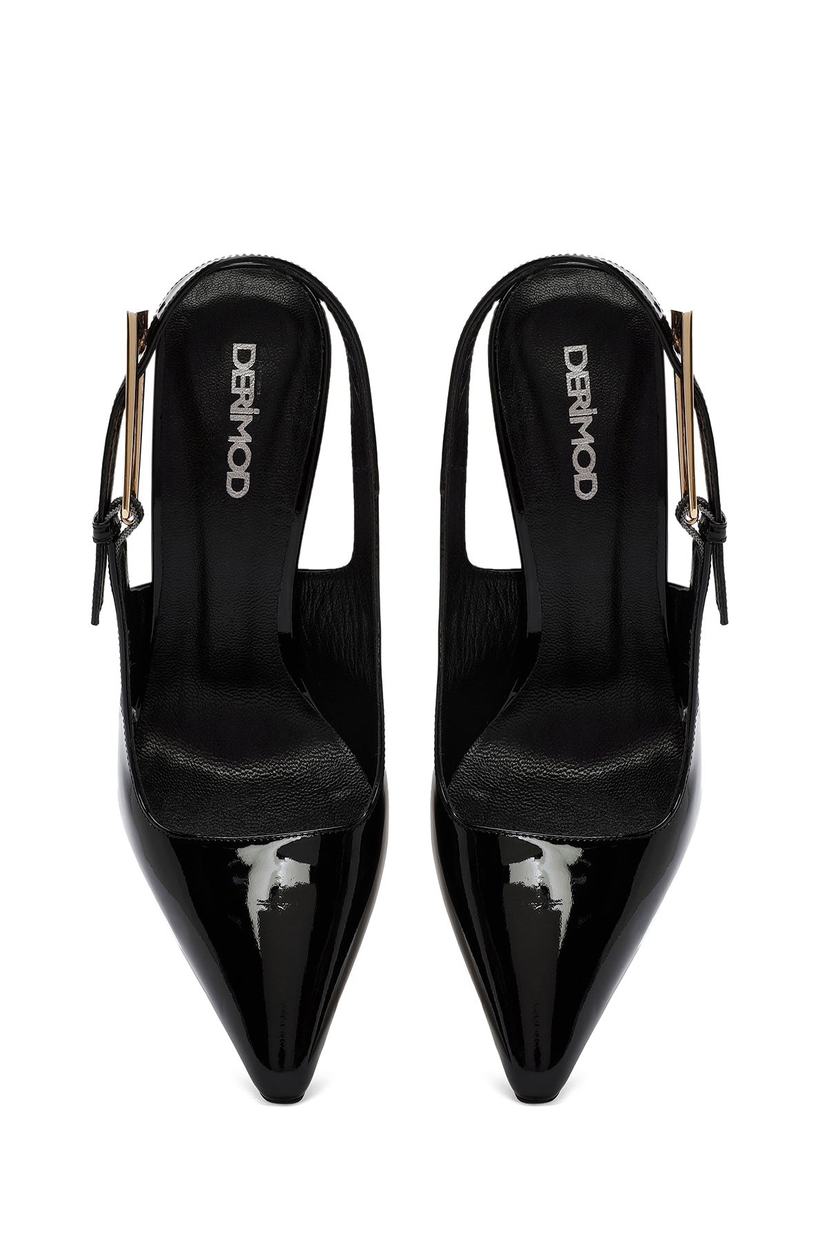 Kadın Siyah Arkası Açık Yüksek Ince Topuklu Rugan Deri Ayakkabı