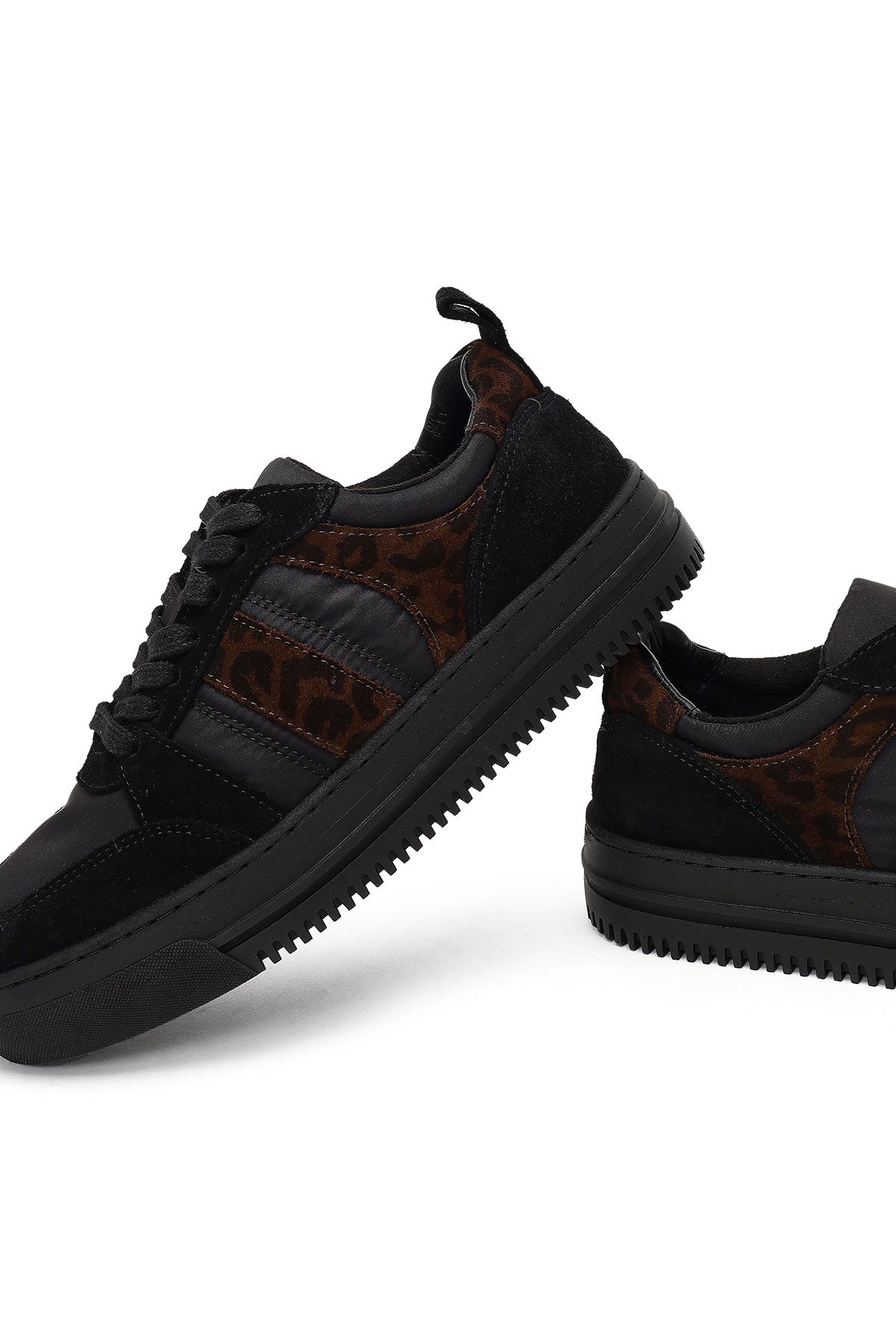 Kadın Siyah Bağcıklı Kalın Tabanlı Desenli Deri Sneaker