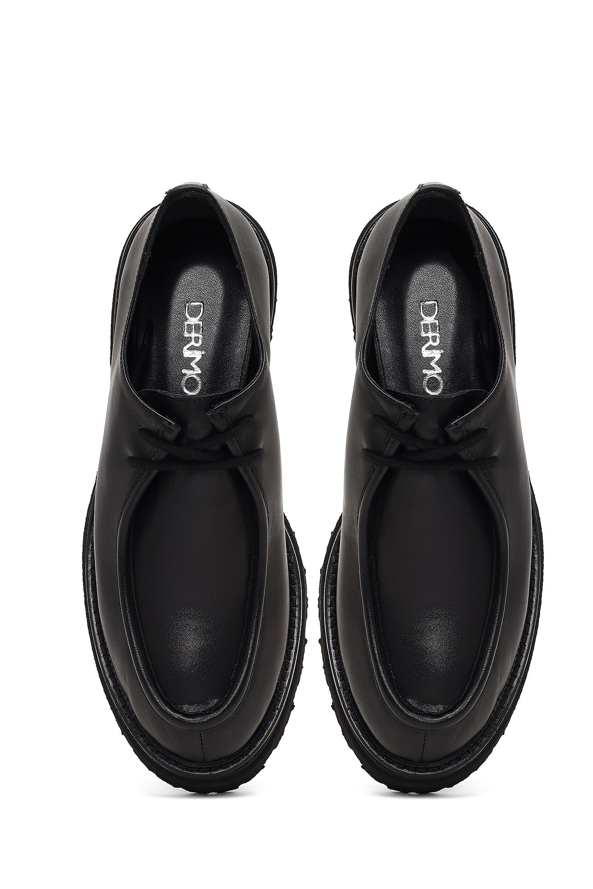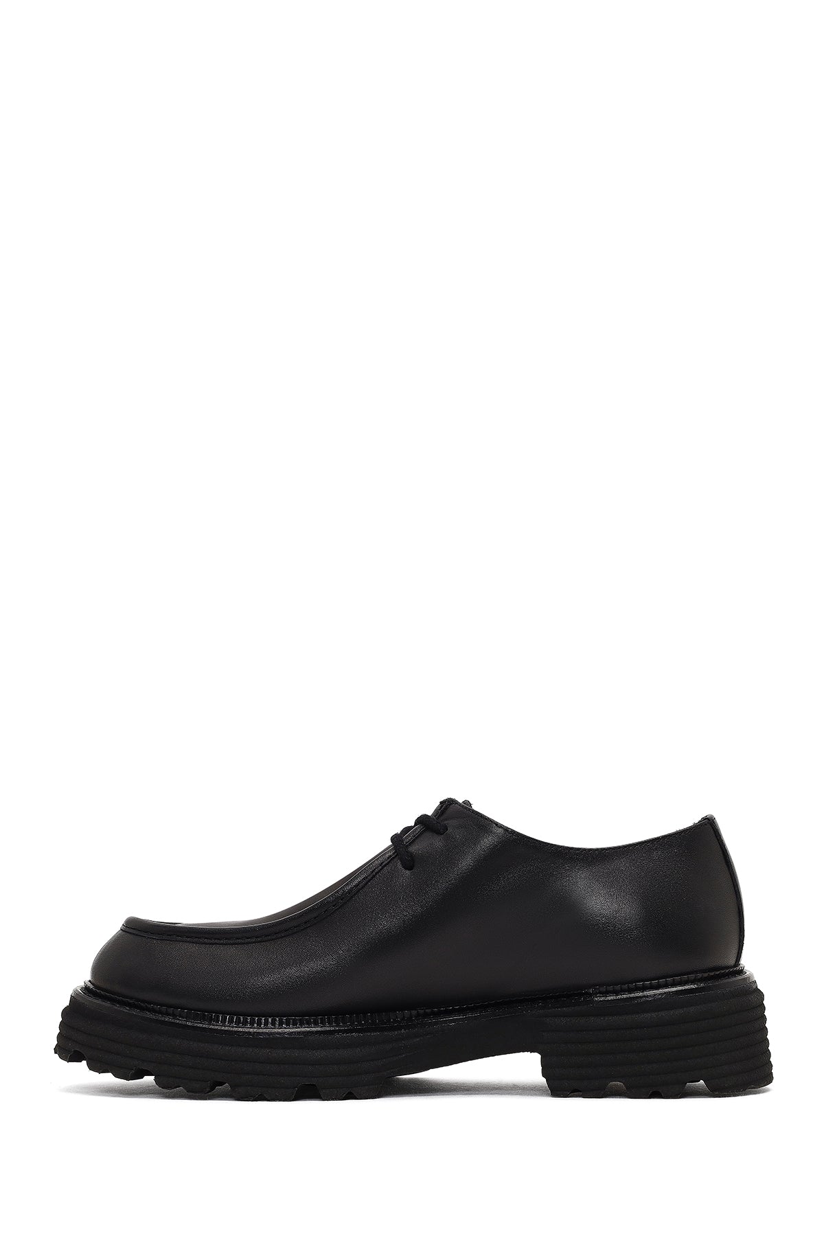 Kadın Siyah Bağcıklı Kalın Tabanlı Maskülen Ayakkabı