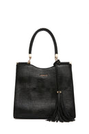 Kadın Siyah Baskılı Uzun Askılı Omuz Çantası