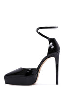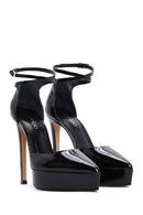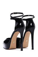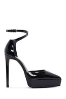 Kadın Siyah Bilekten Tokalı Platform Yüksek Topuklu Rugan Deri Ayakkabı