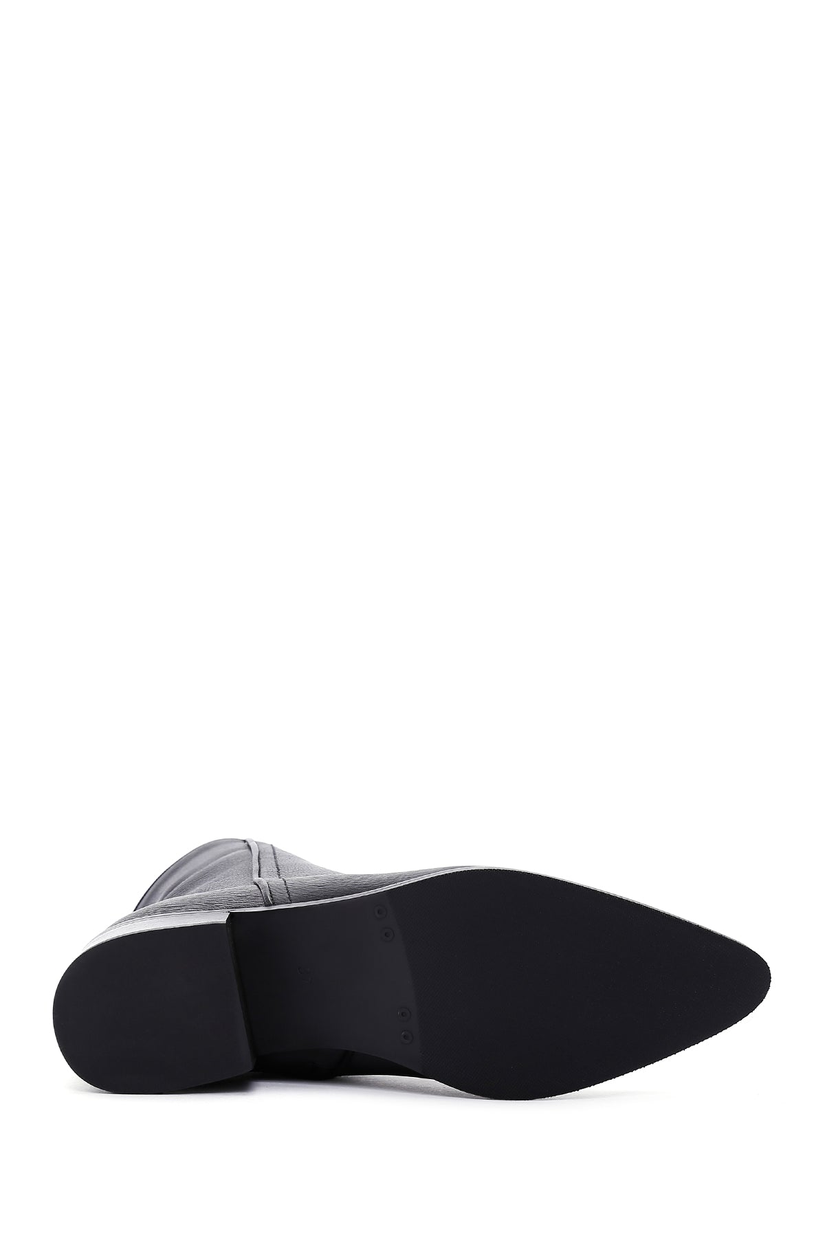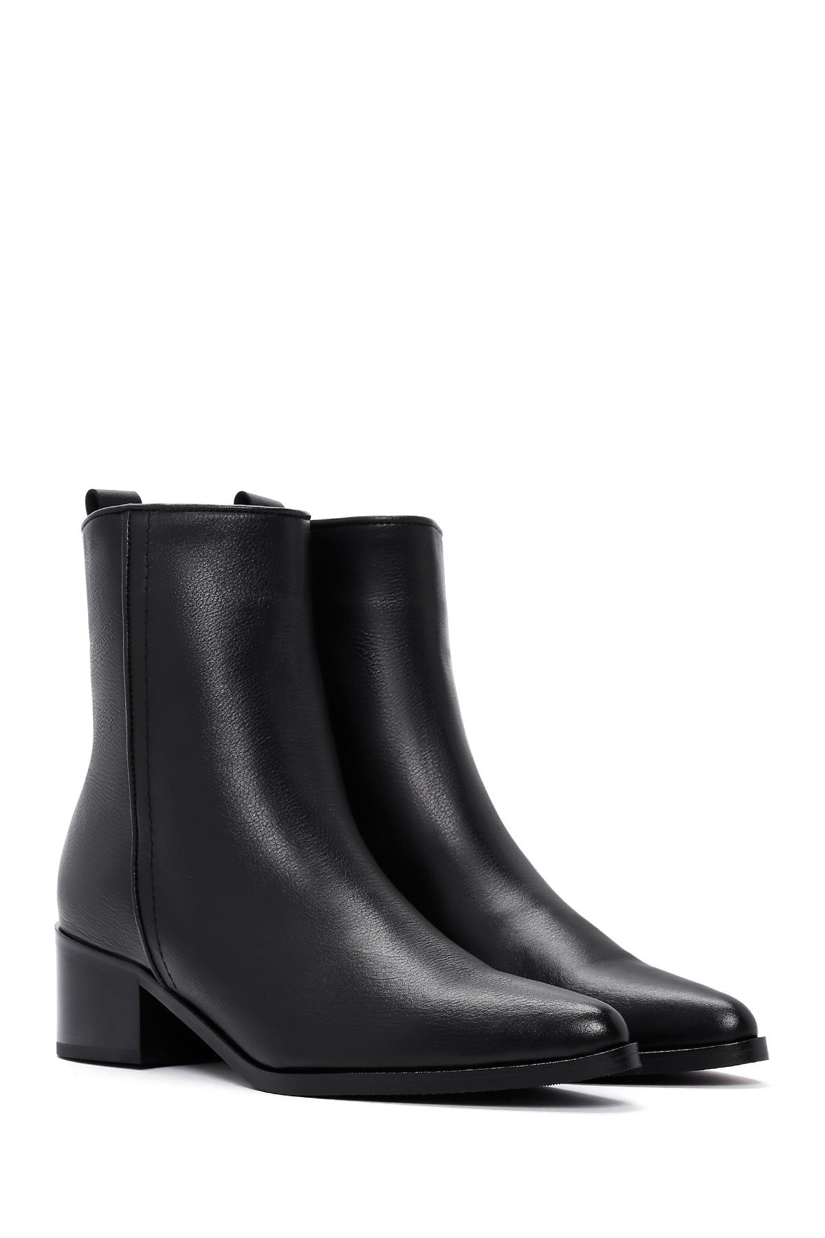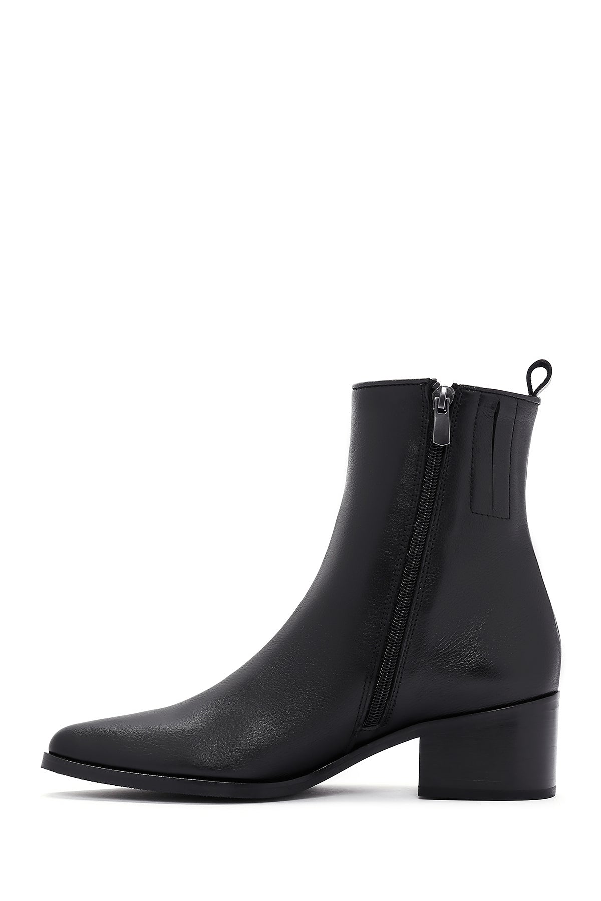 Kadın Siyah Fermuar Detaylı Kısa Topuklu Deri Bot