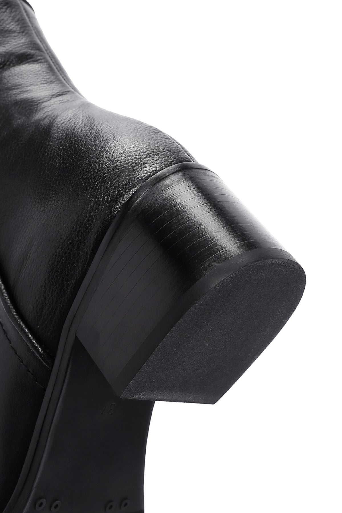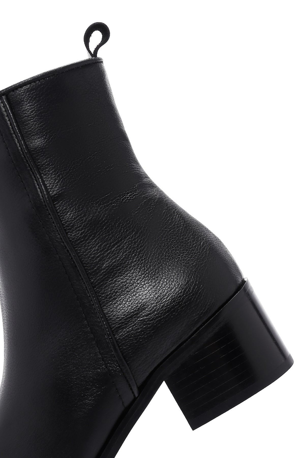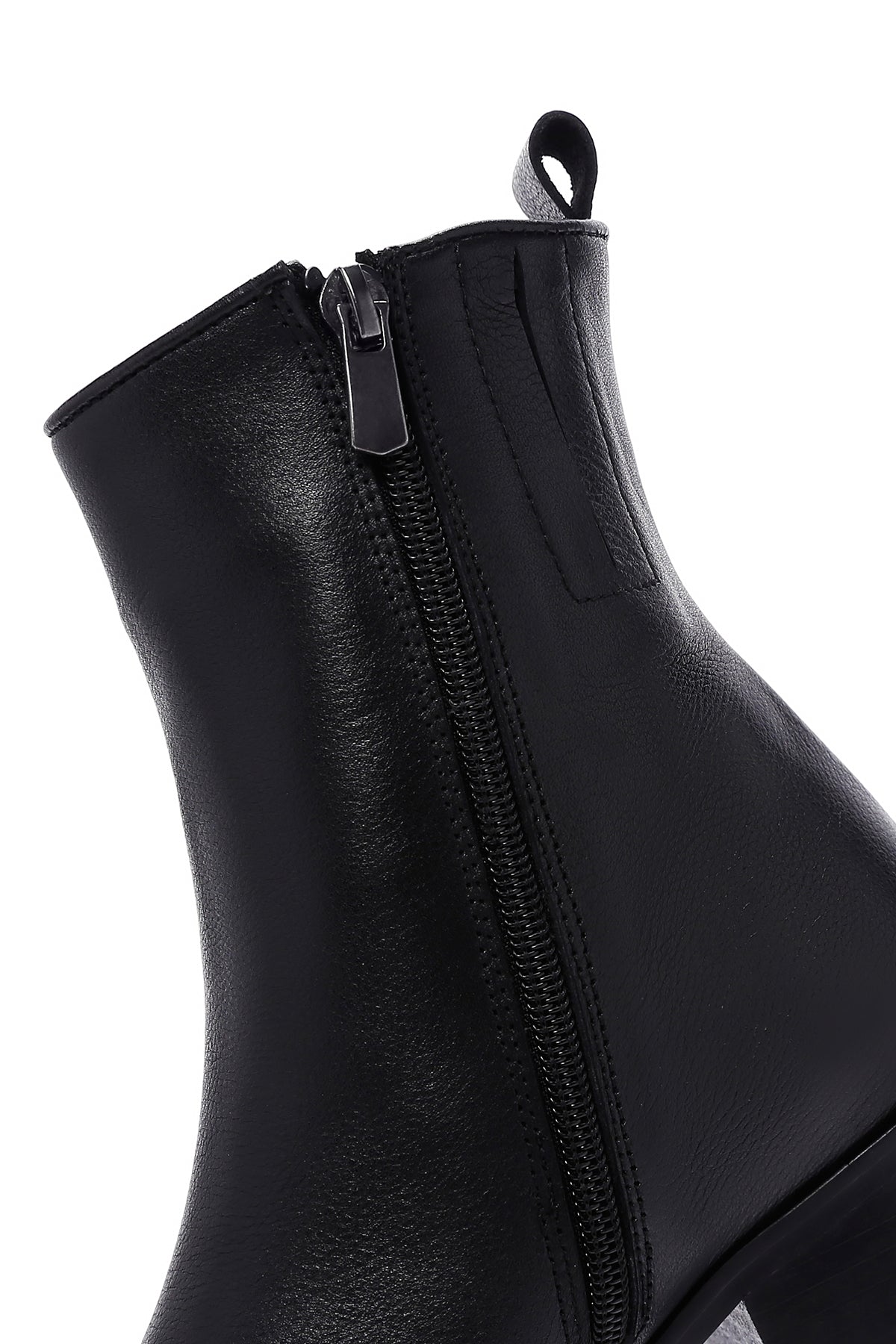 Kadın Siyah Fermuar Detaylı Kısa Topuklu Deri Bot