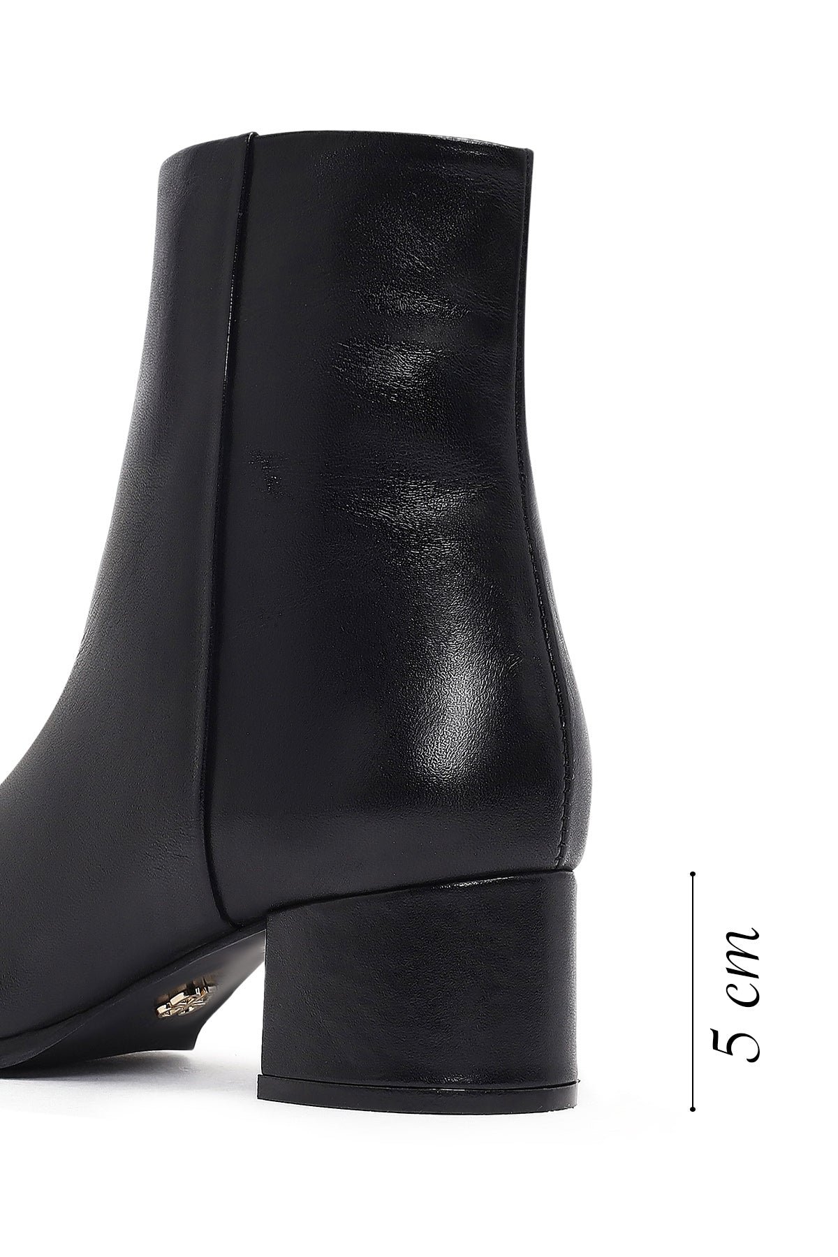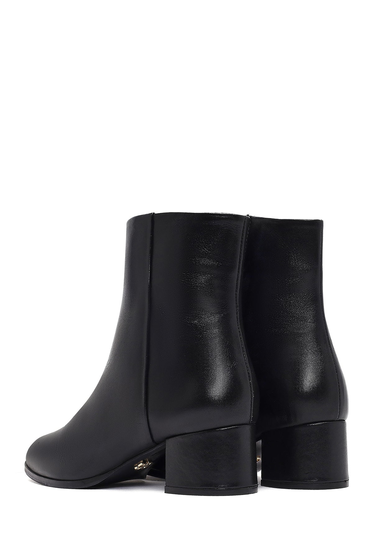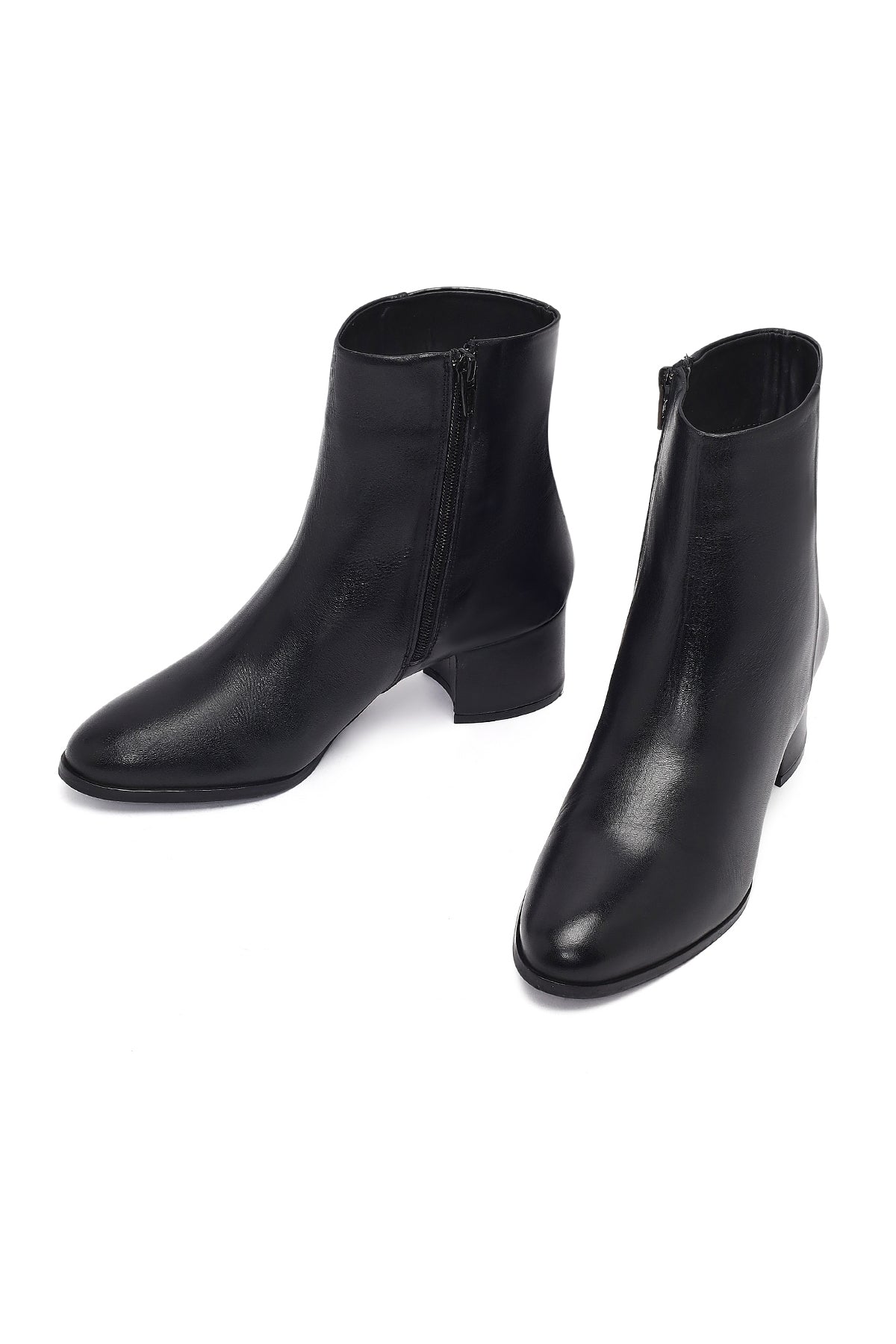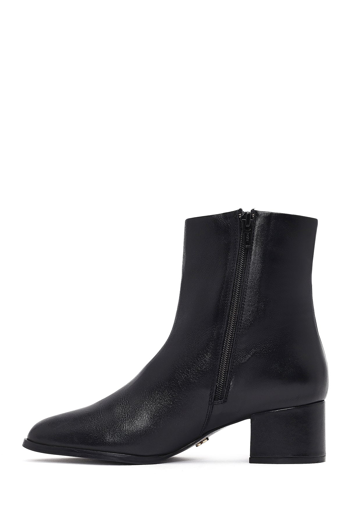 Kadın Siyah Fermuarlı Kısa Kalın Topuklu Deri Bot