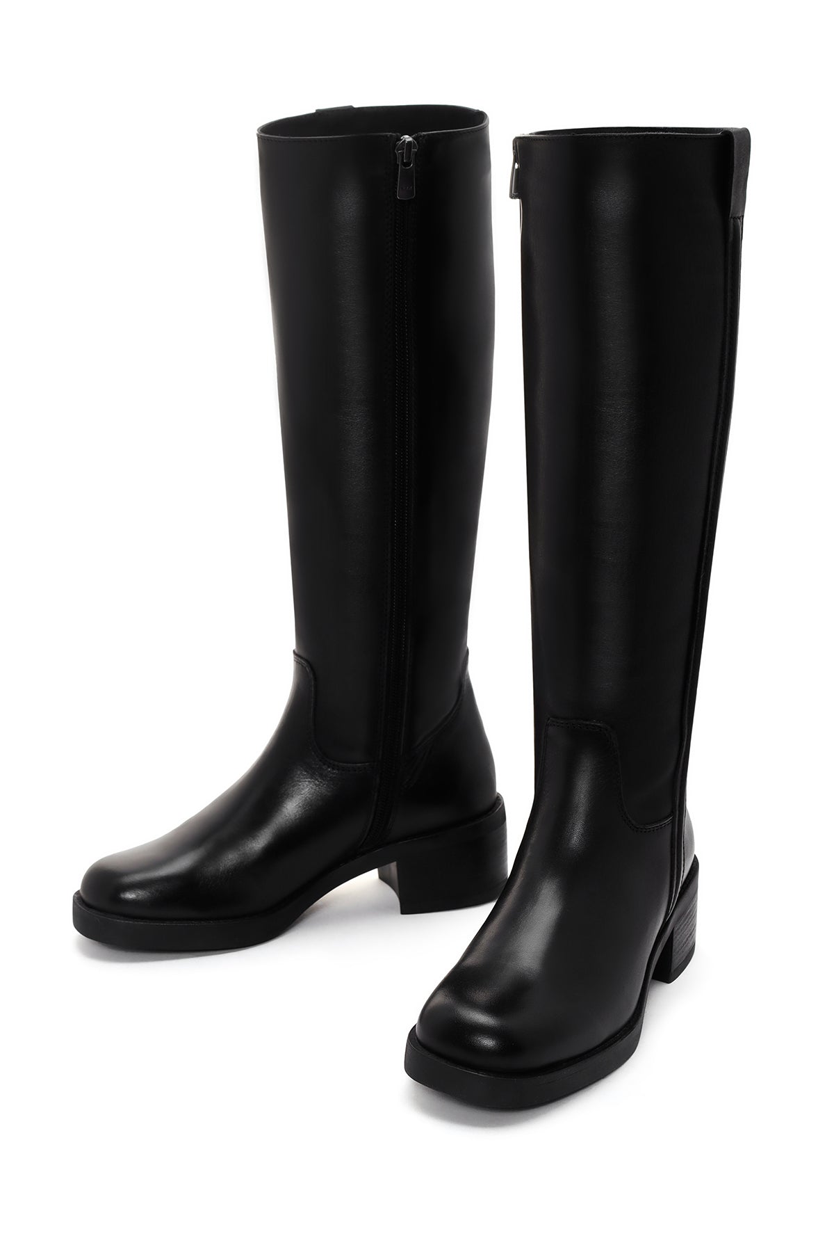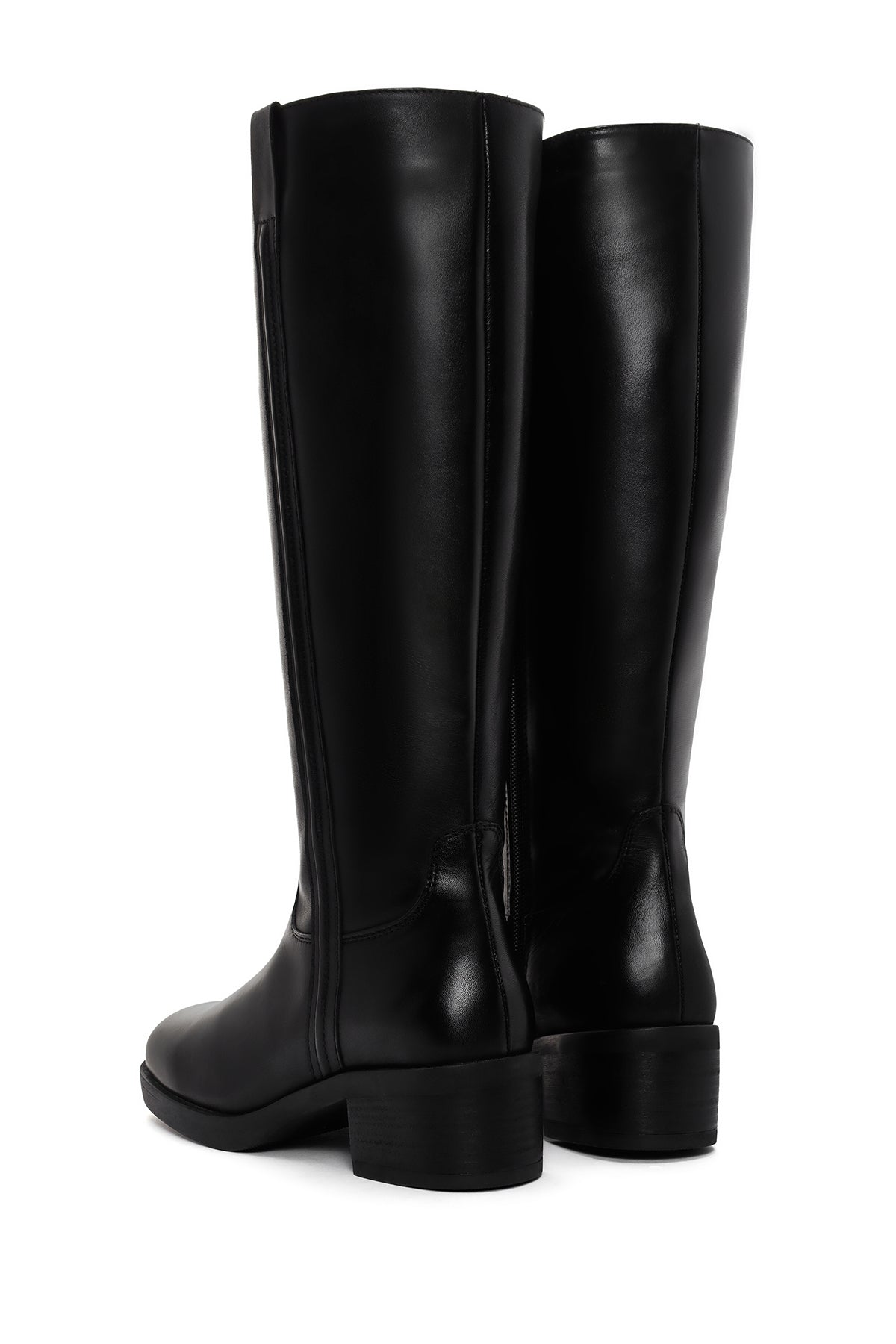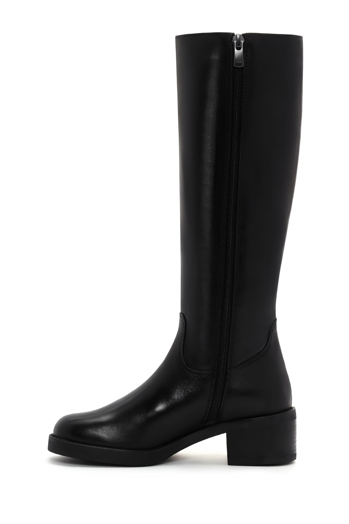 Kadın Siyah Fermuarlı Kısa Kalın Topuklu Deri Çizme