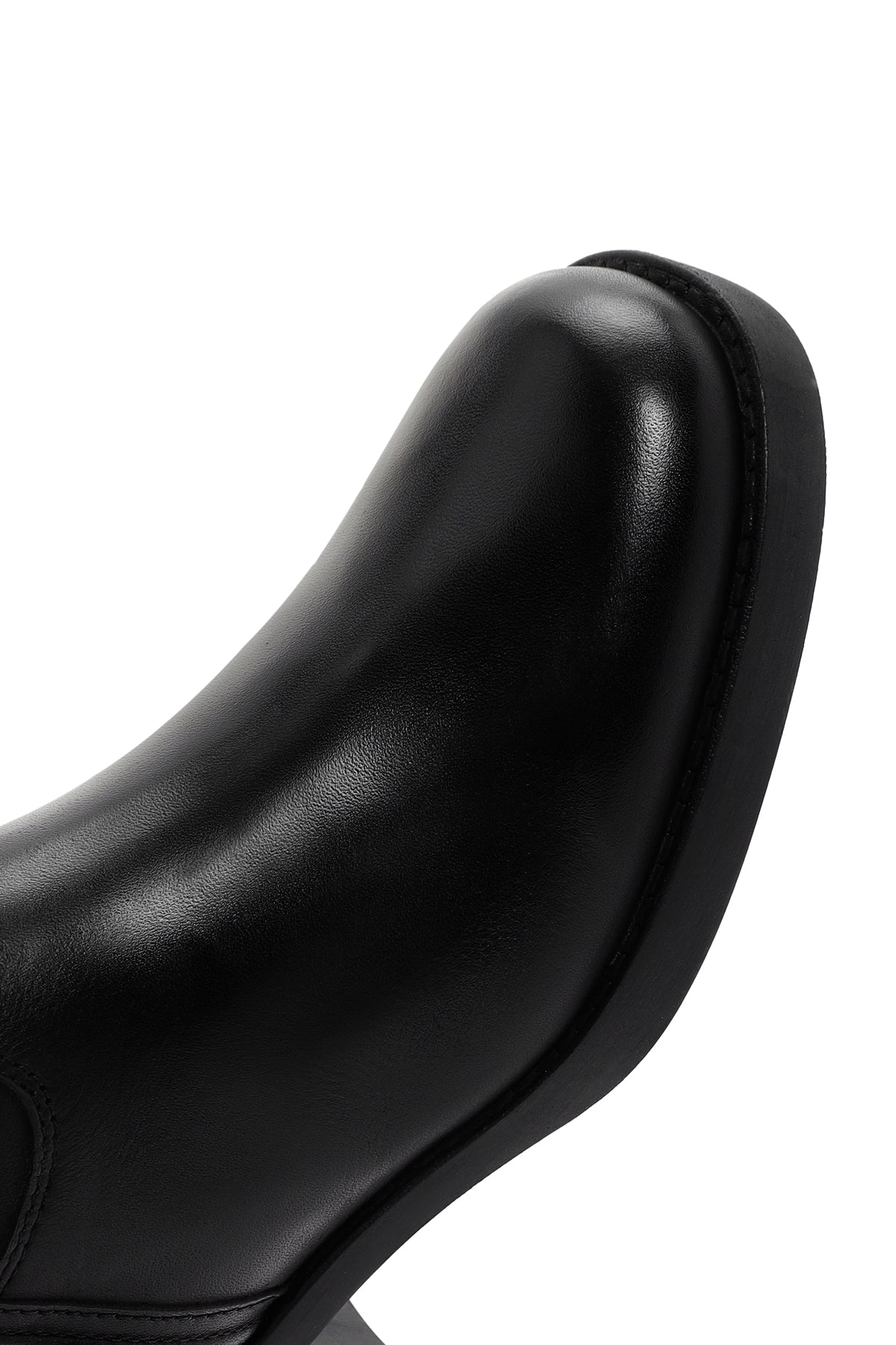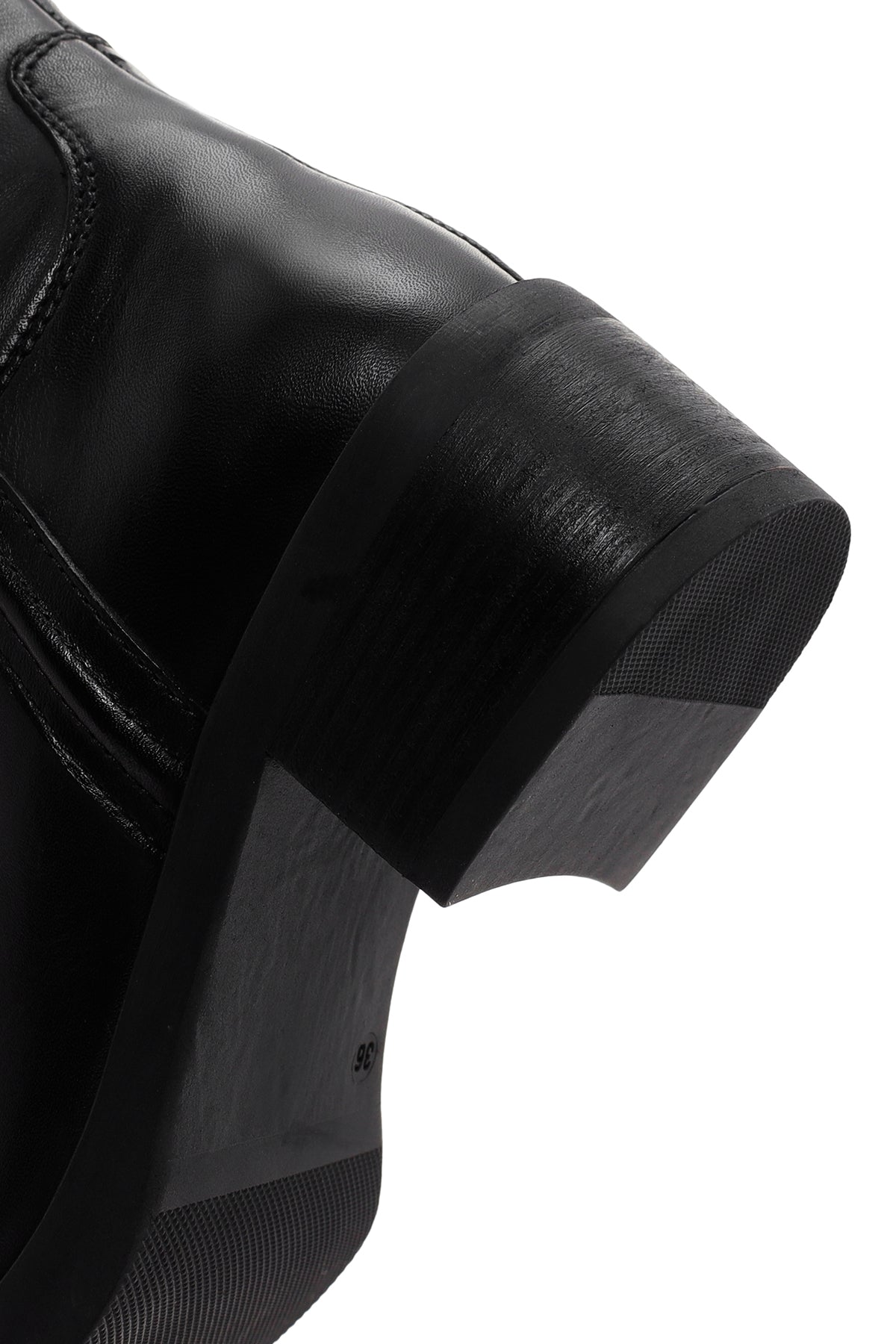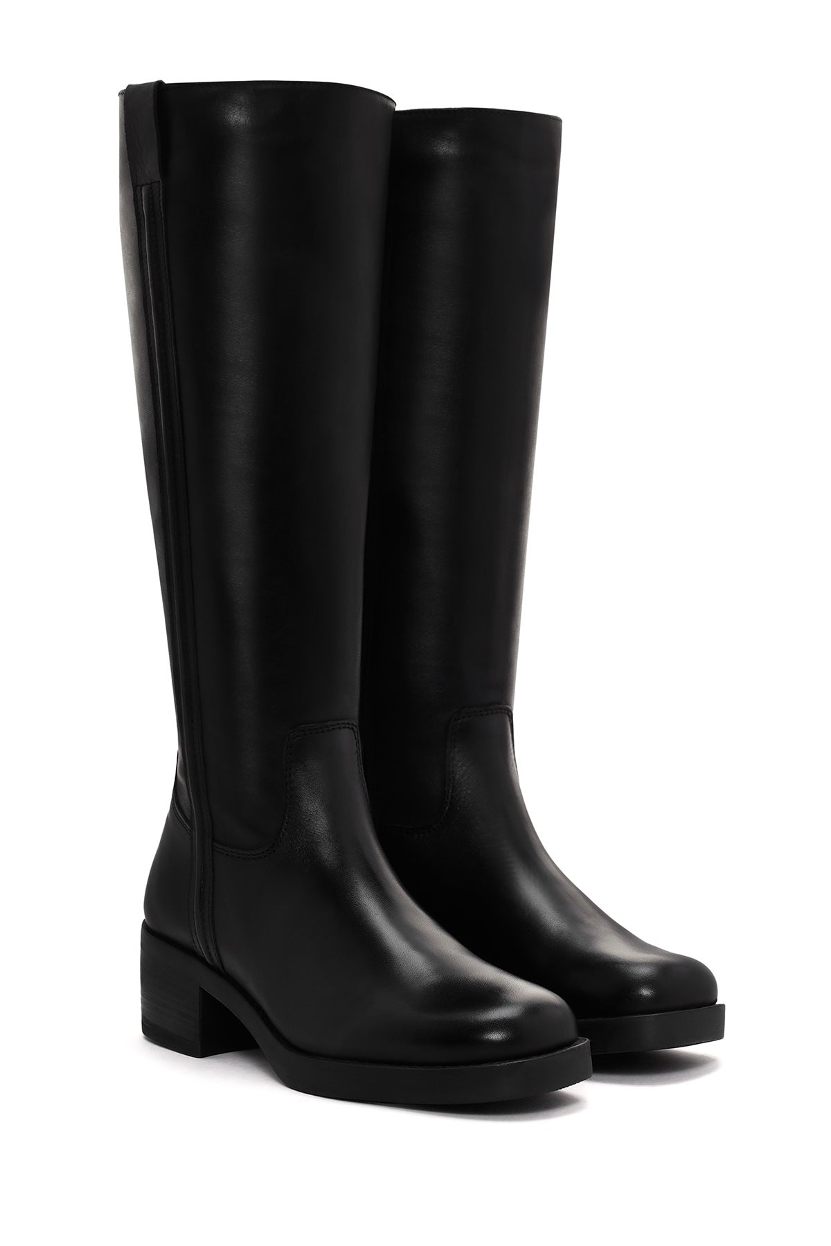 Kadın Siyah Fermuarlı Kısa Kalın Topuklu Deri Çizme