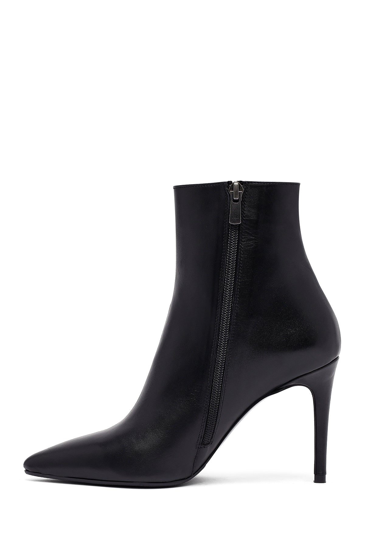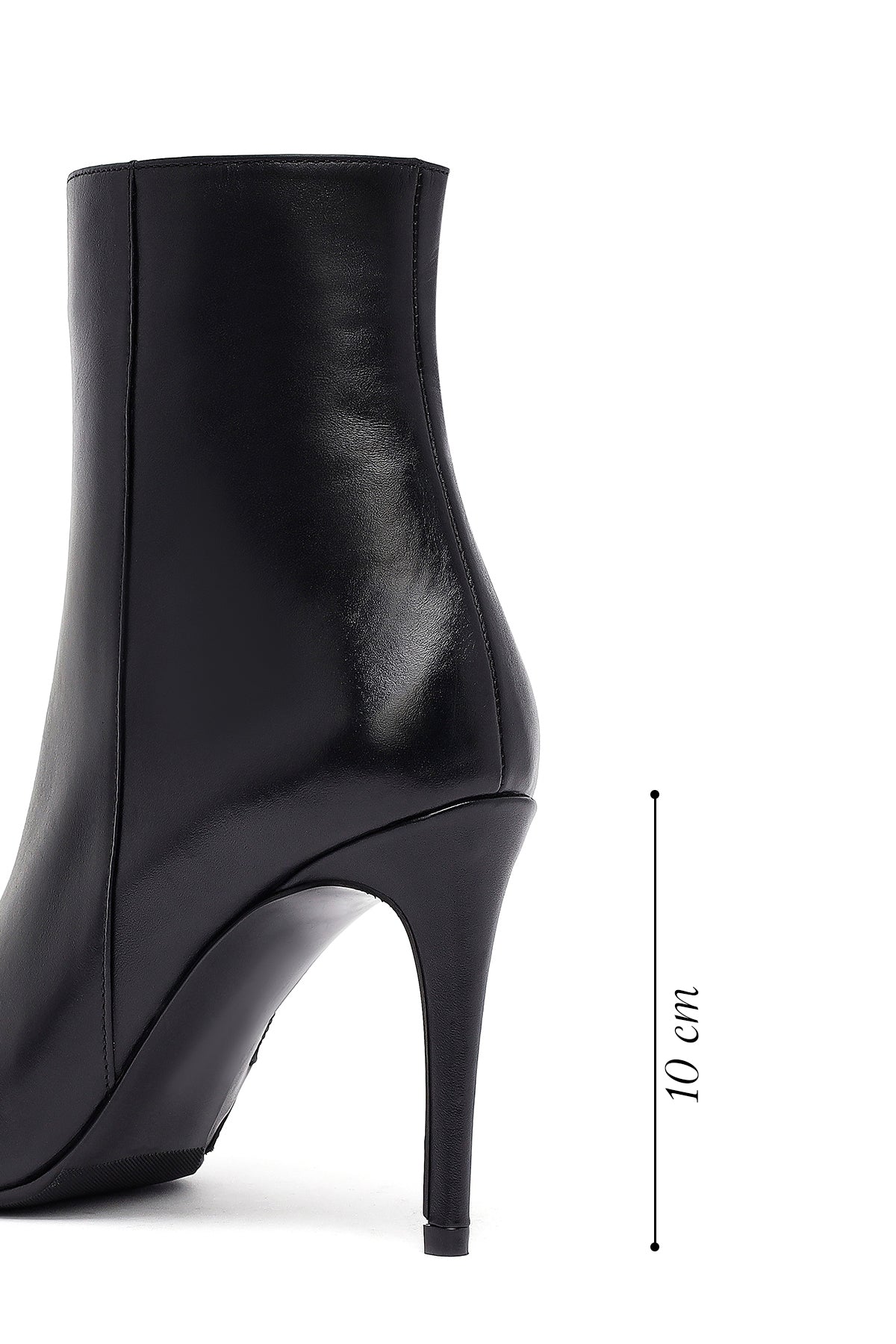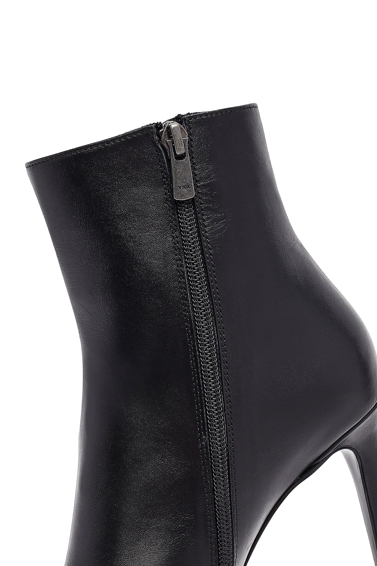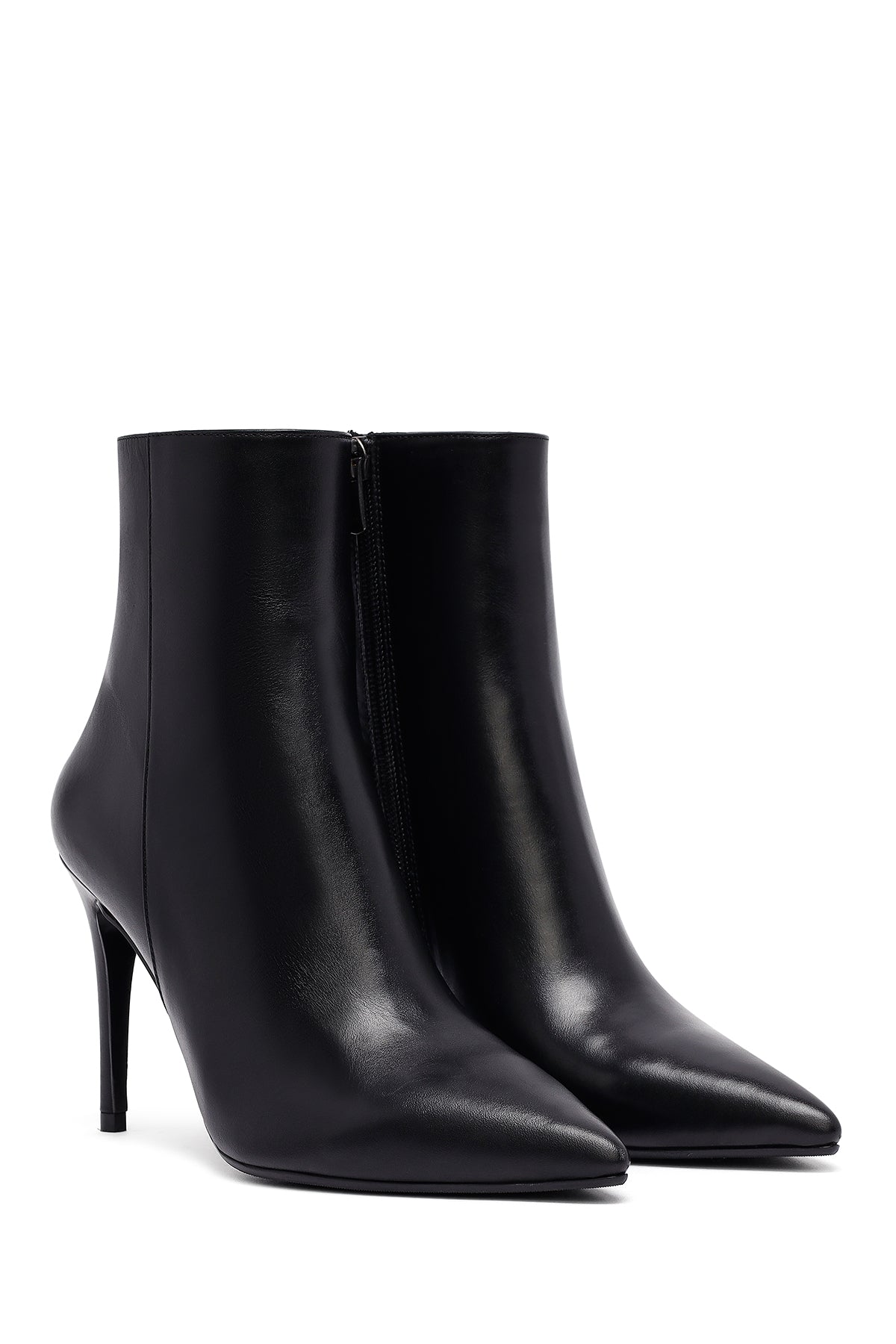 Kadın Siyah Fermuarlı Yüksek Ince Topuklu Deri Bot