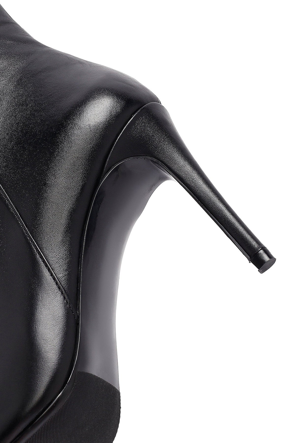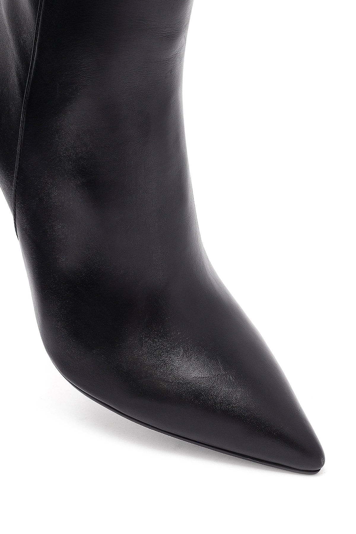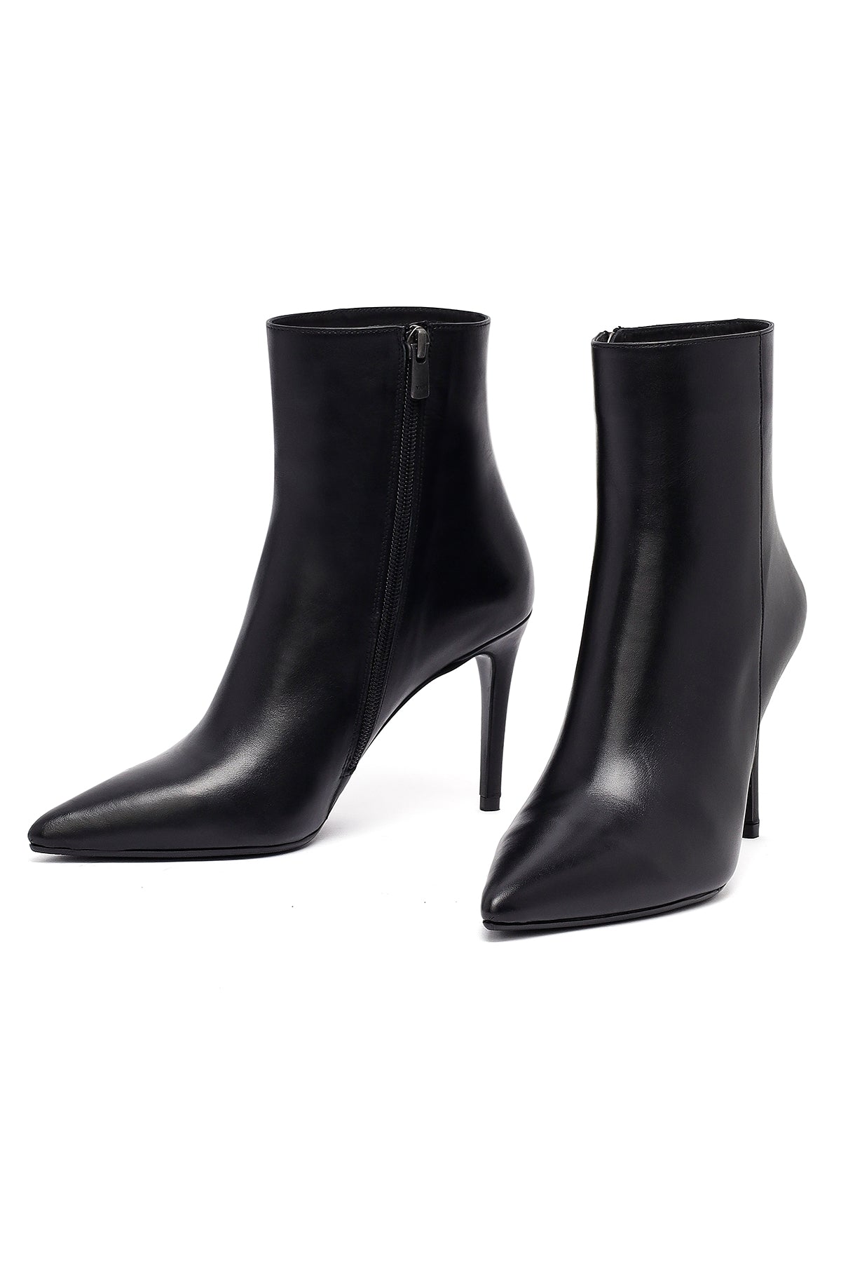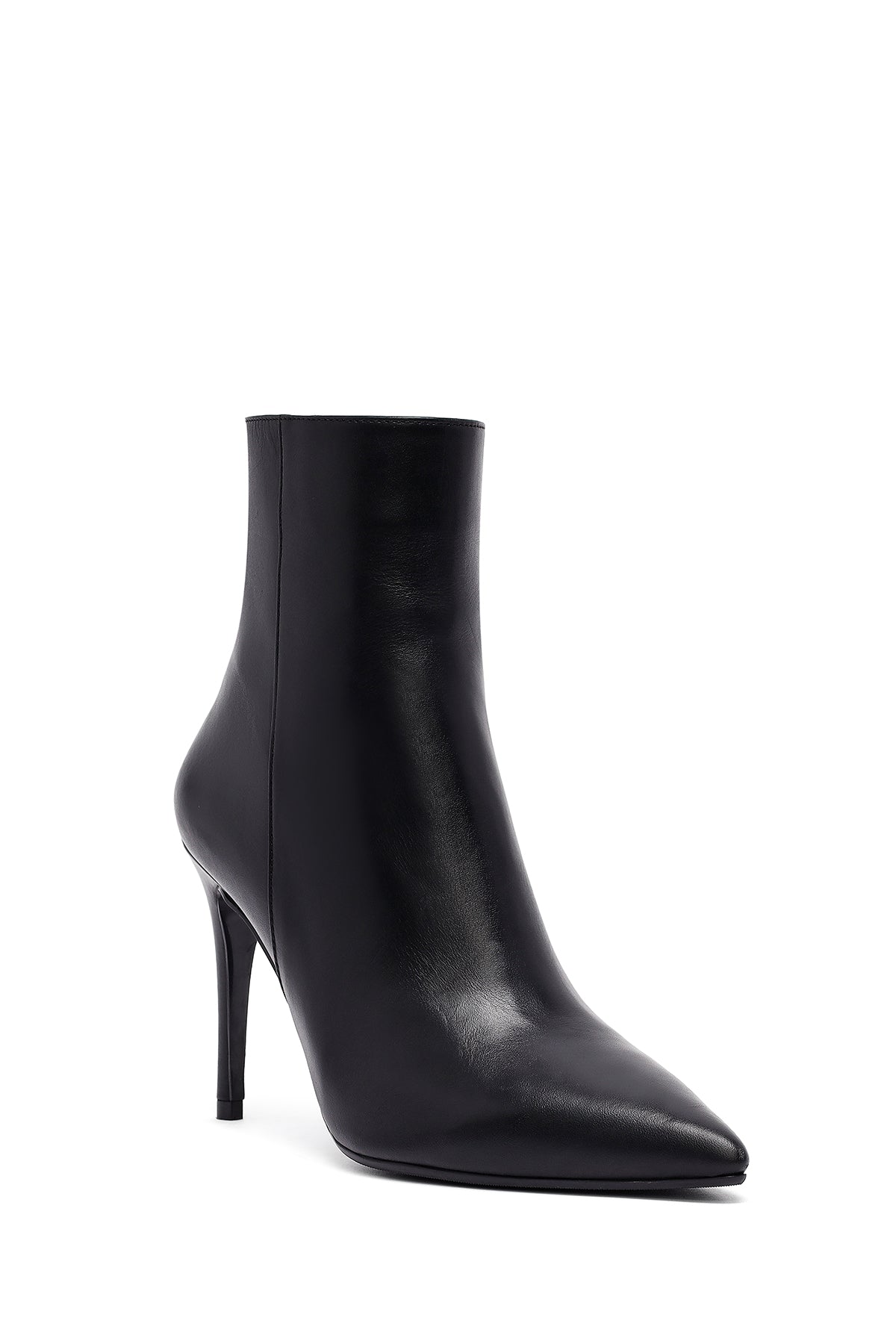 Kadın Siyah Fermuarlı Yüksek Ince Topuklu Deri Bot