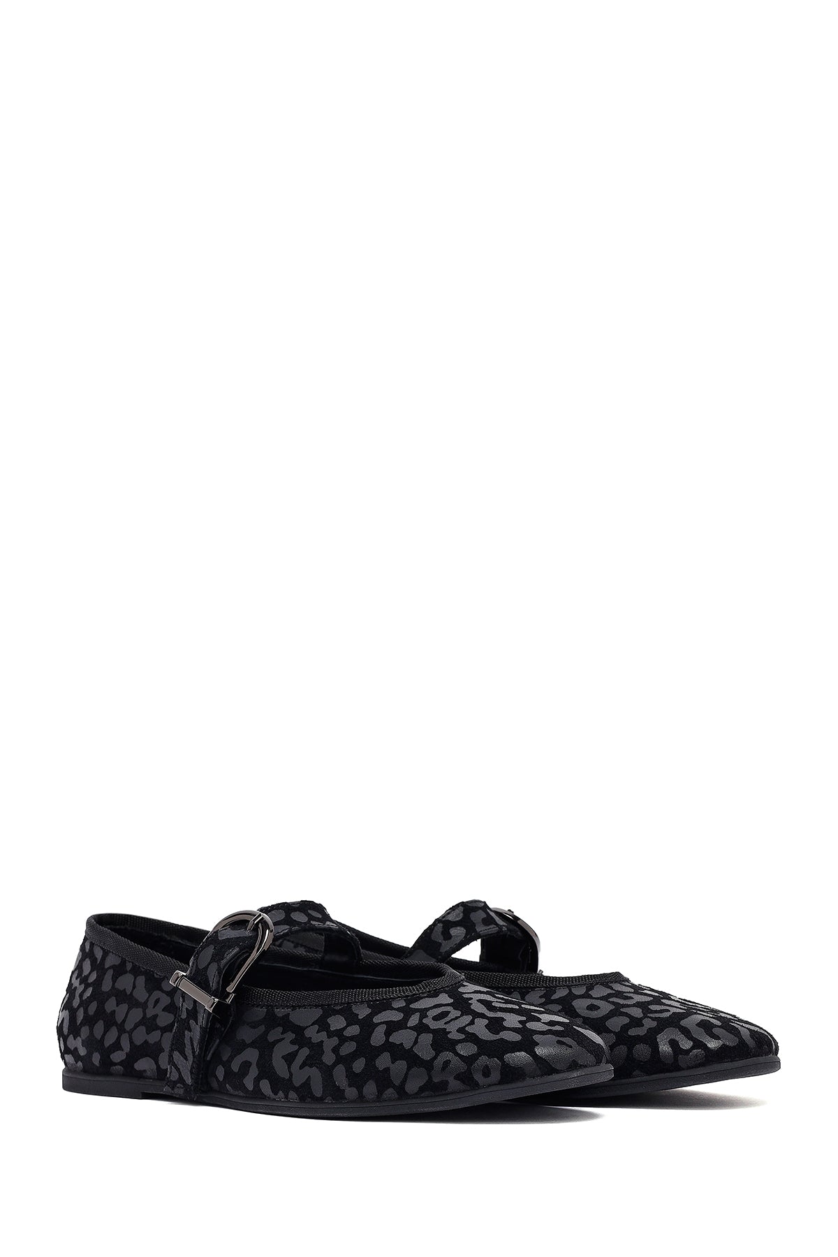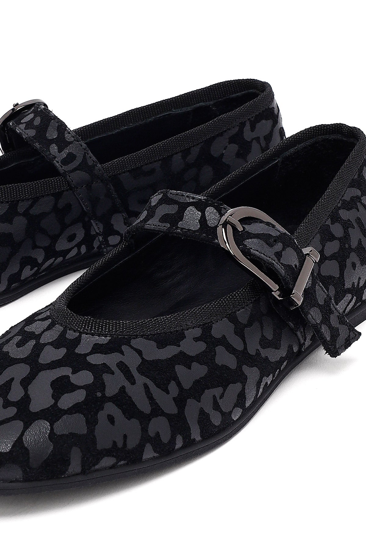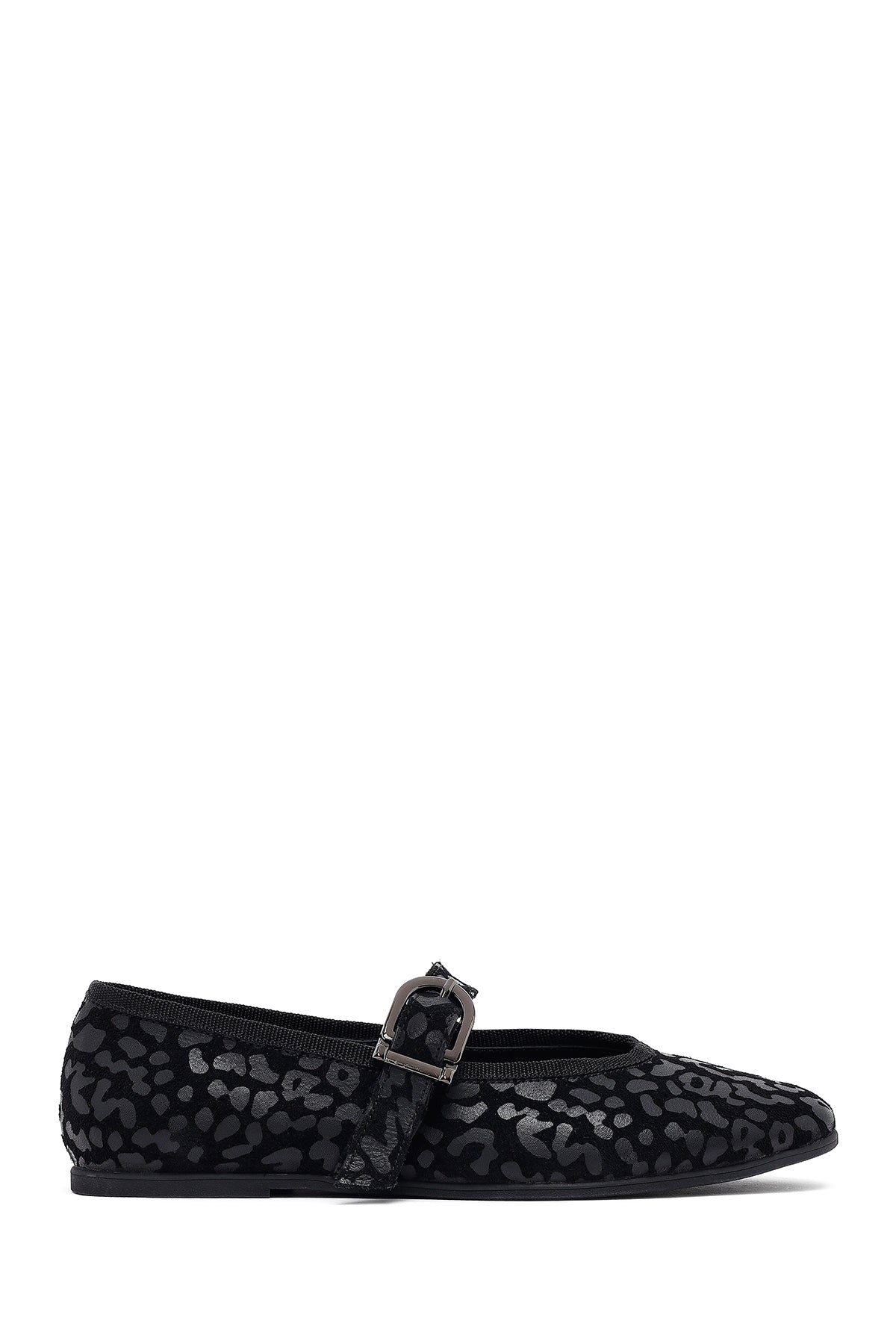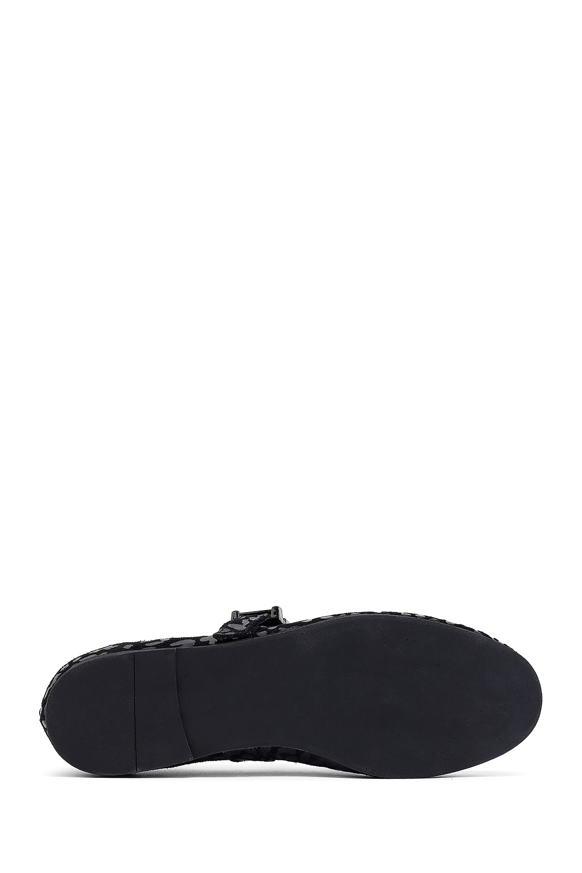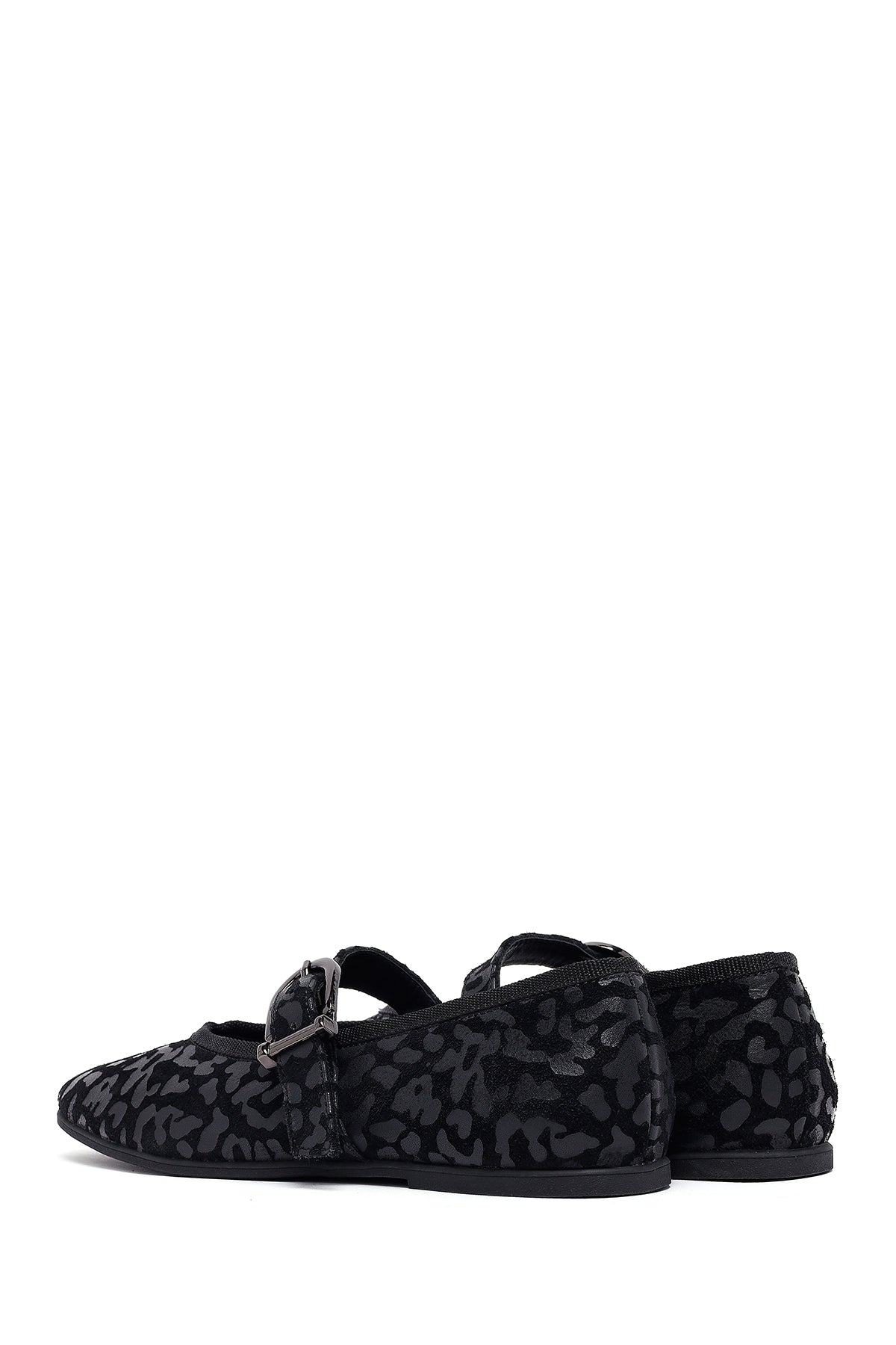 Kadın Siyah Leopar Desenli Tokalı Süet Deri Babet