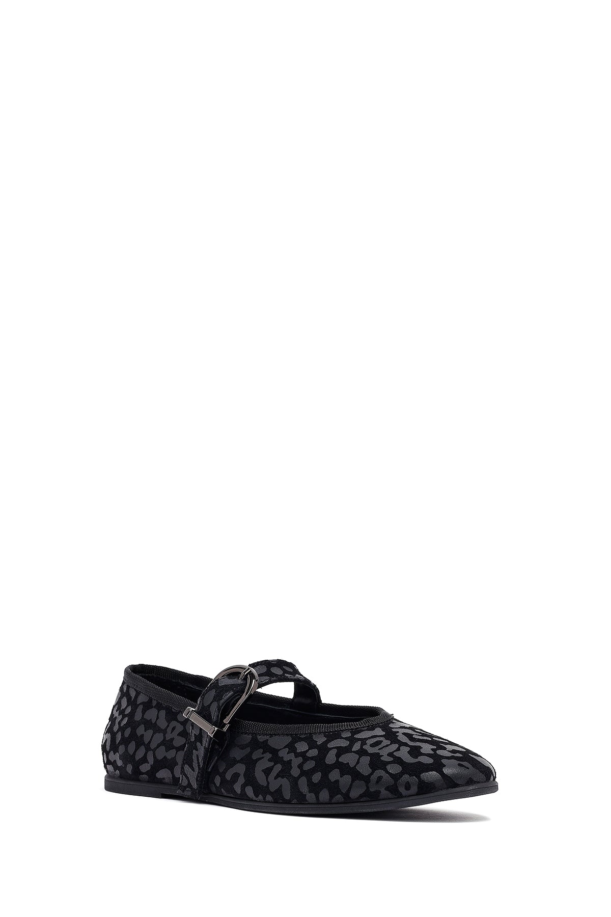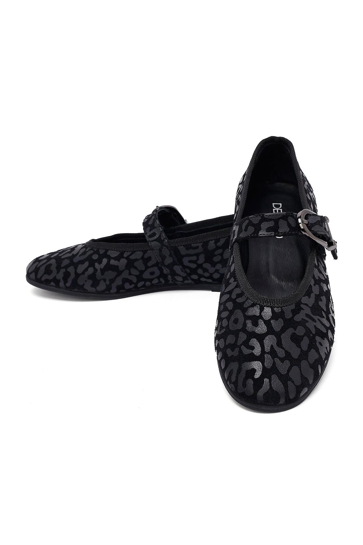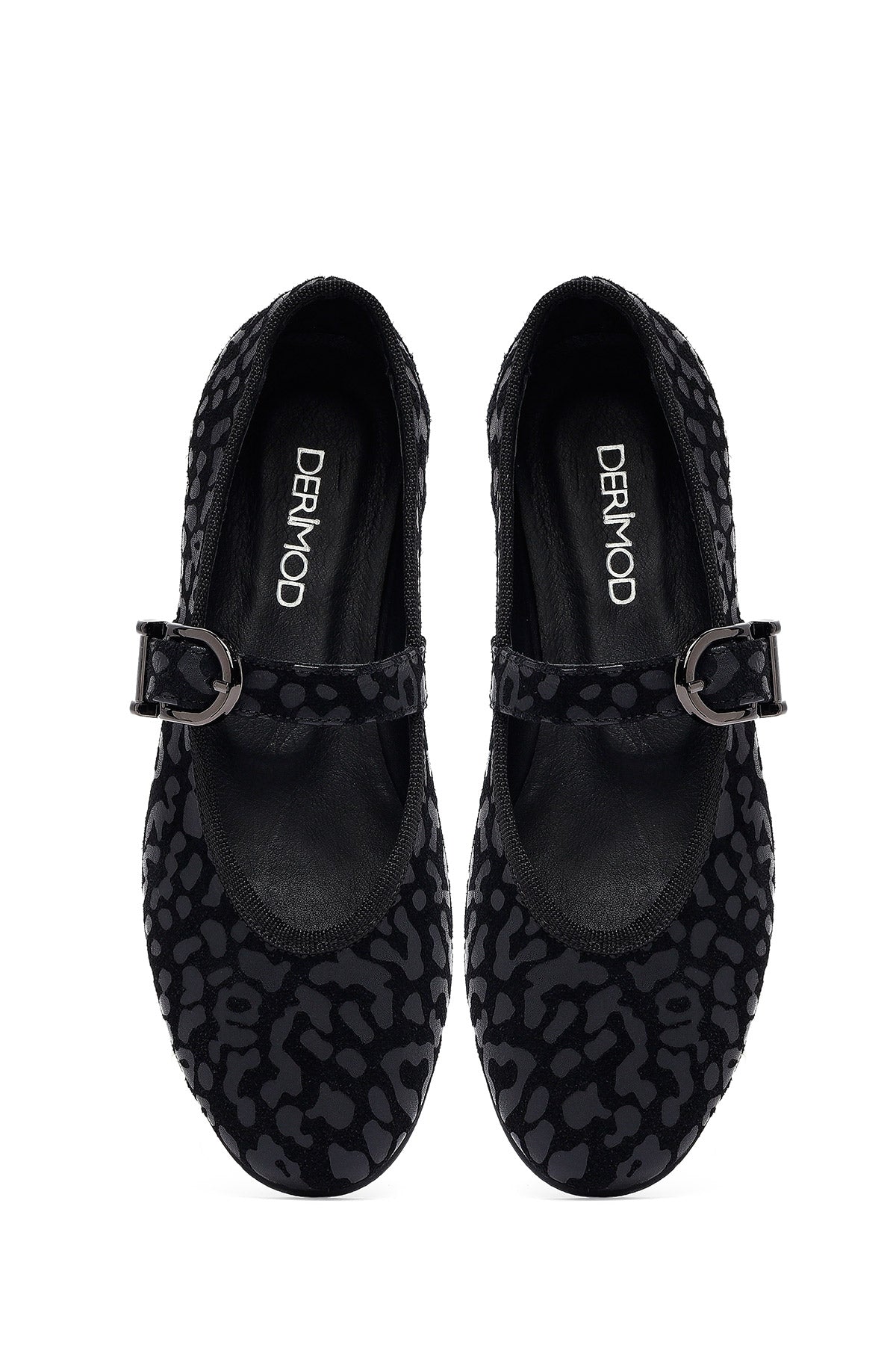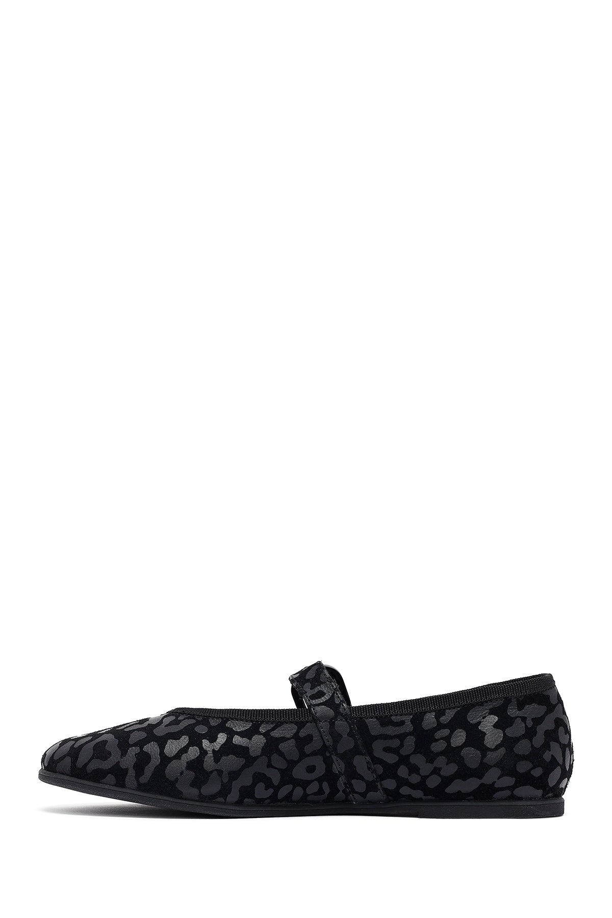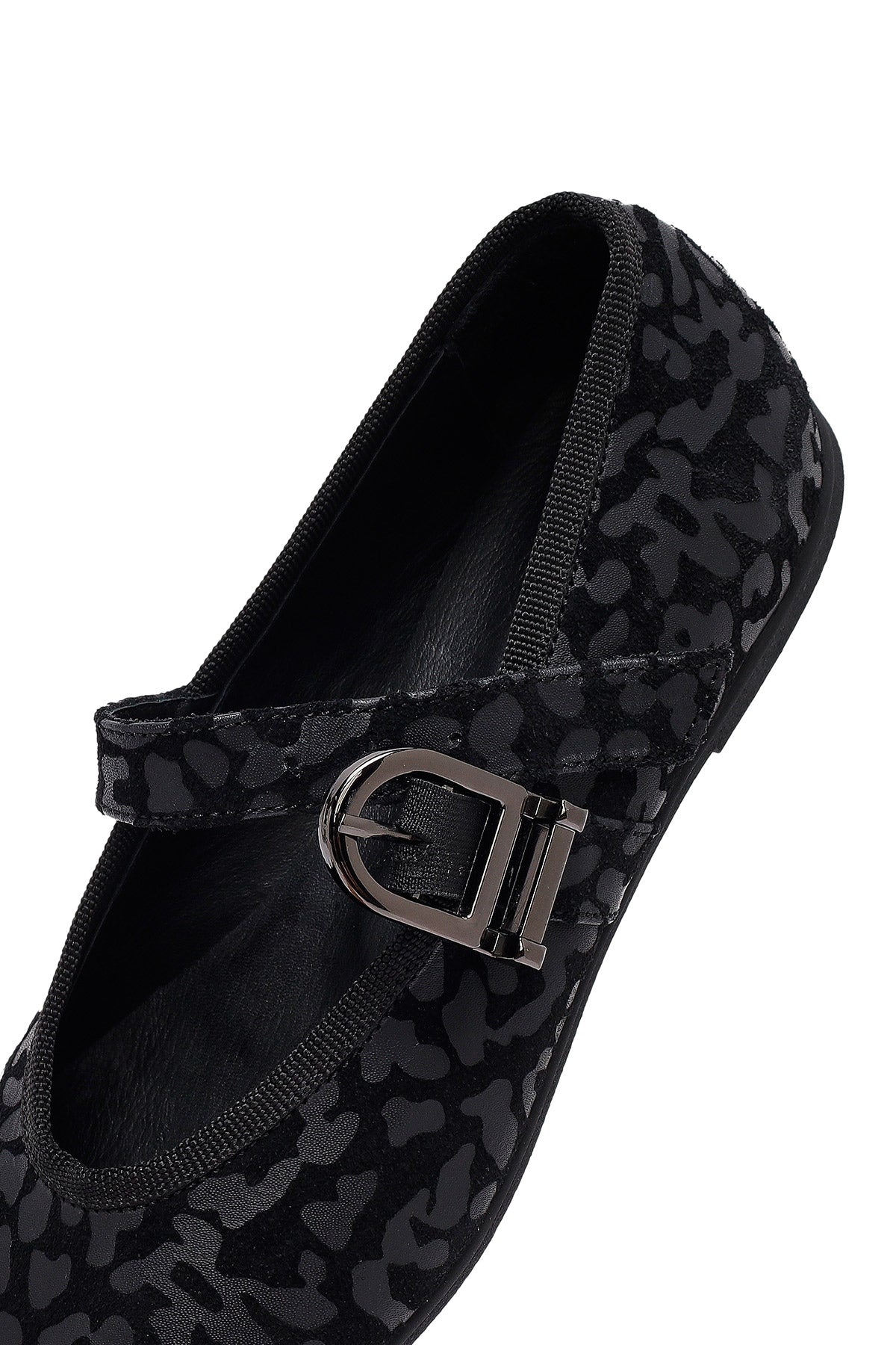 Kadın Siyah Leopar Desenli Tokalı Süet Deri Babet