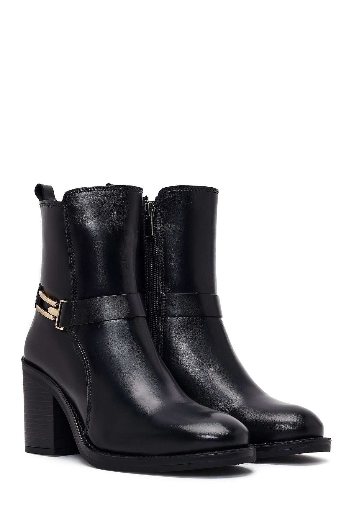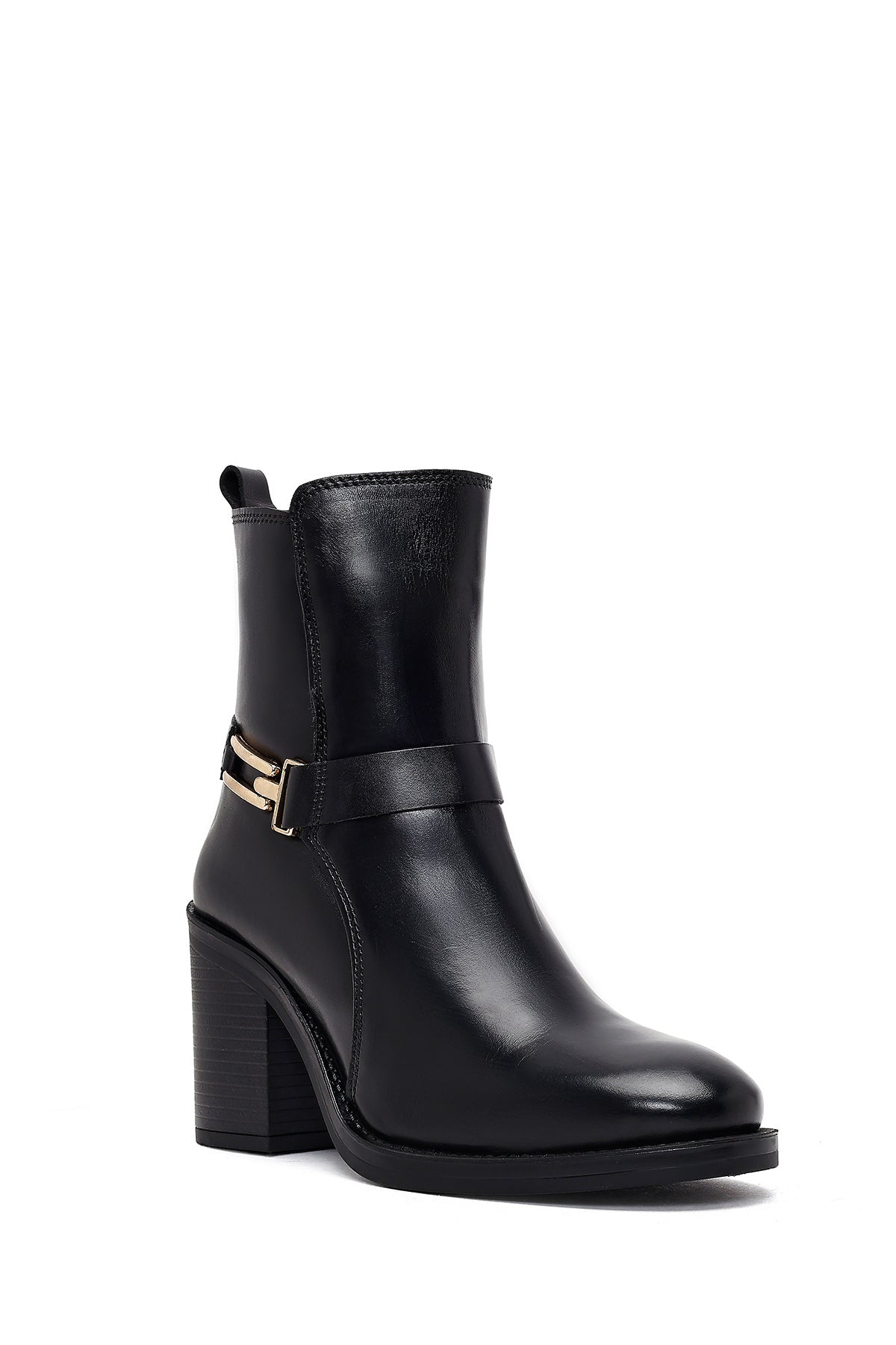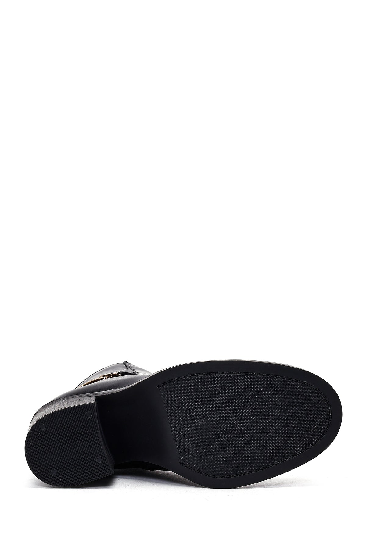 Kadın Siyah Tokalı Kalın Topuklu Deri Bot