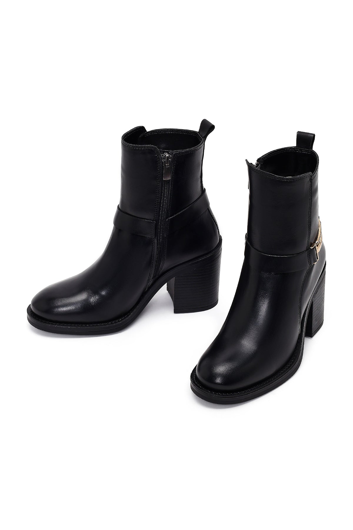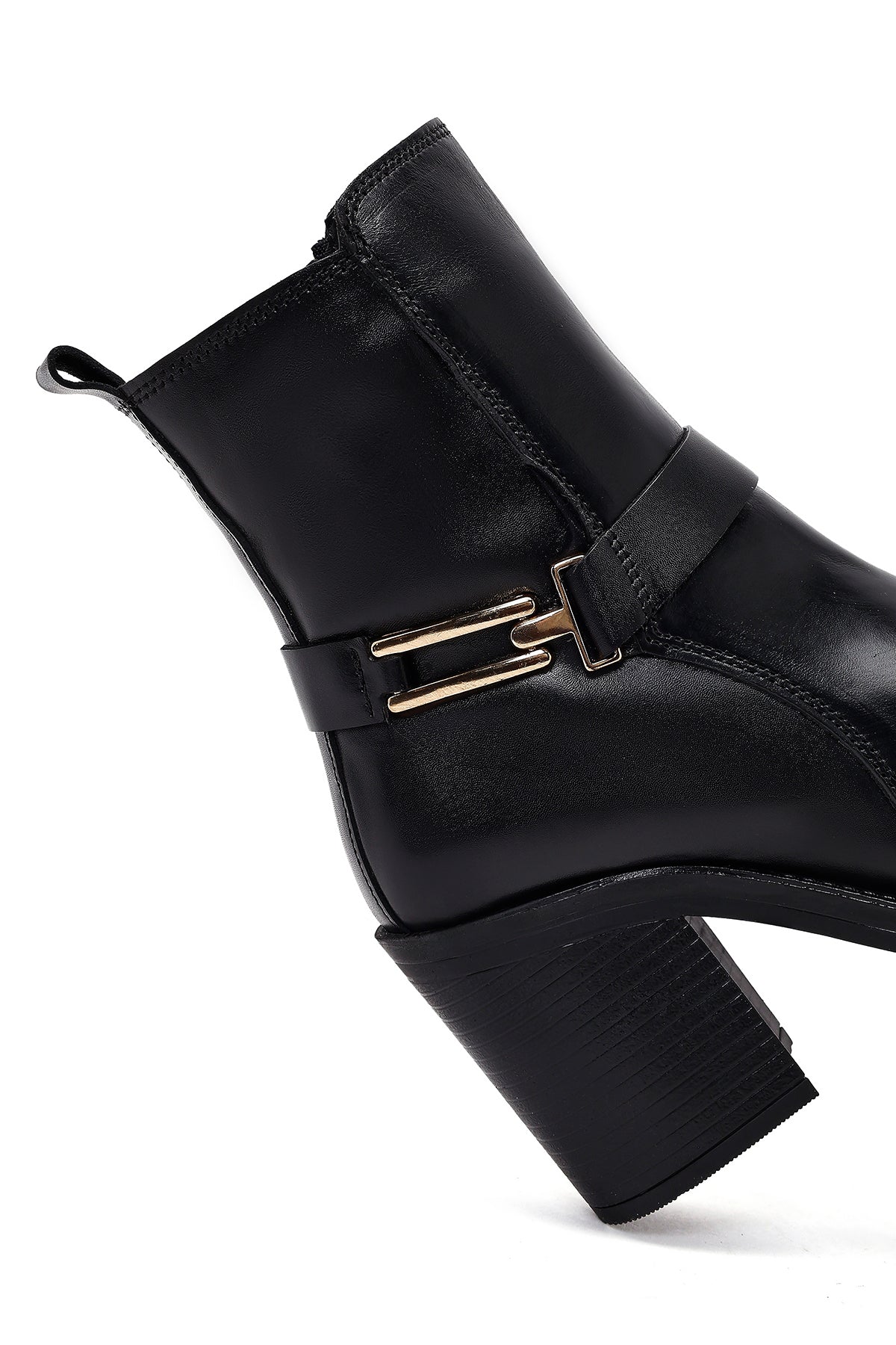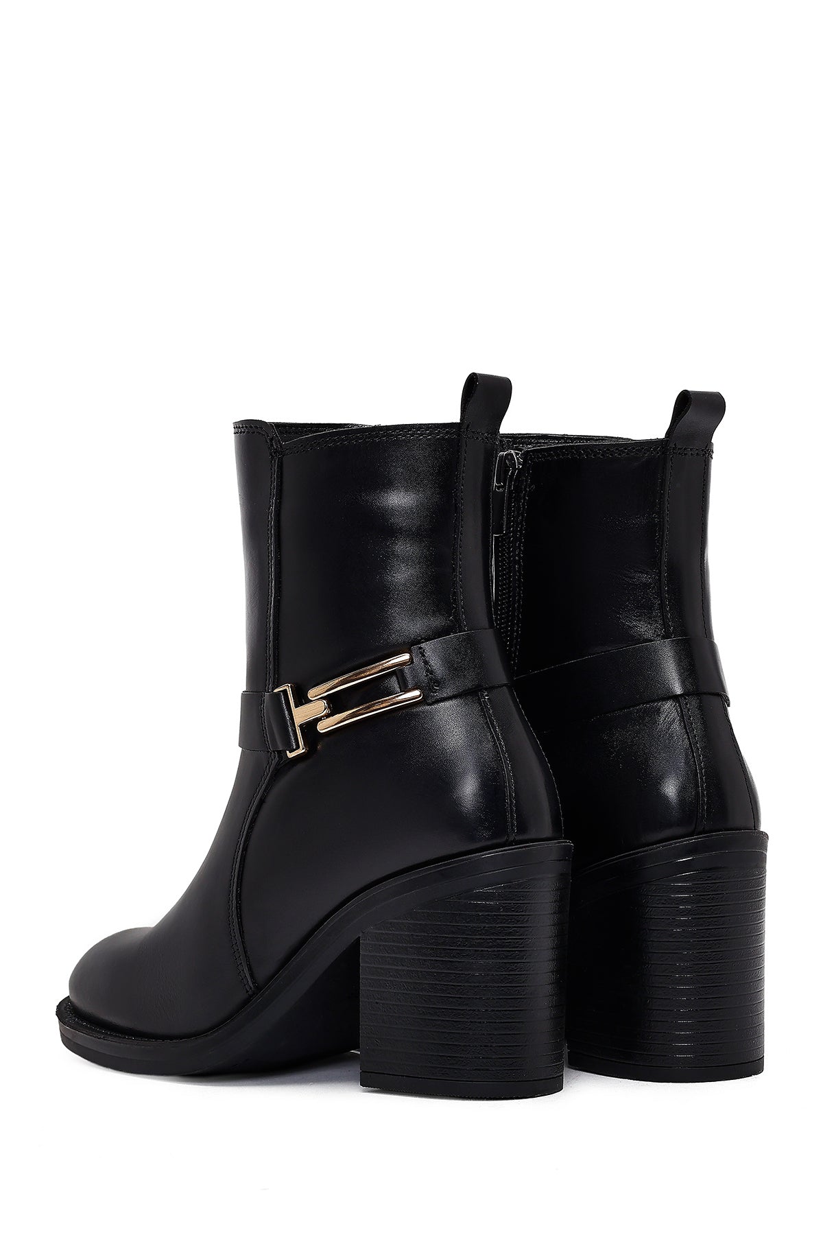 Kadın Siyah Tokalı Kalın Topuklu Deri Bot