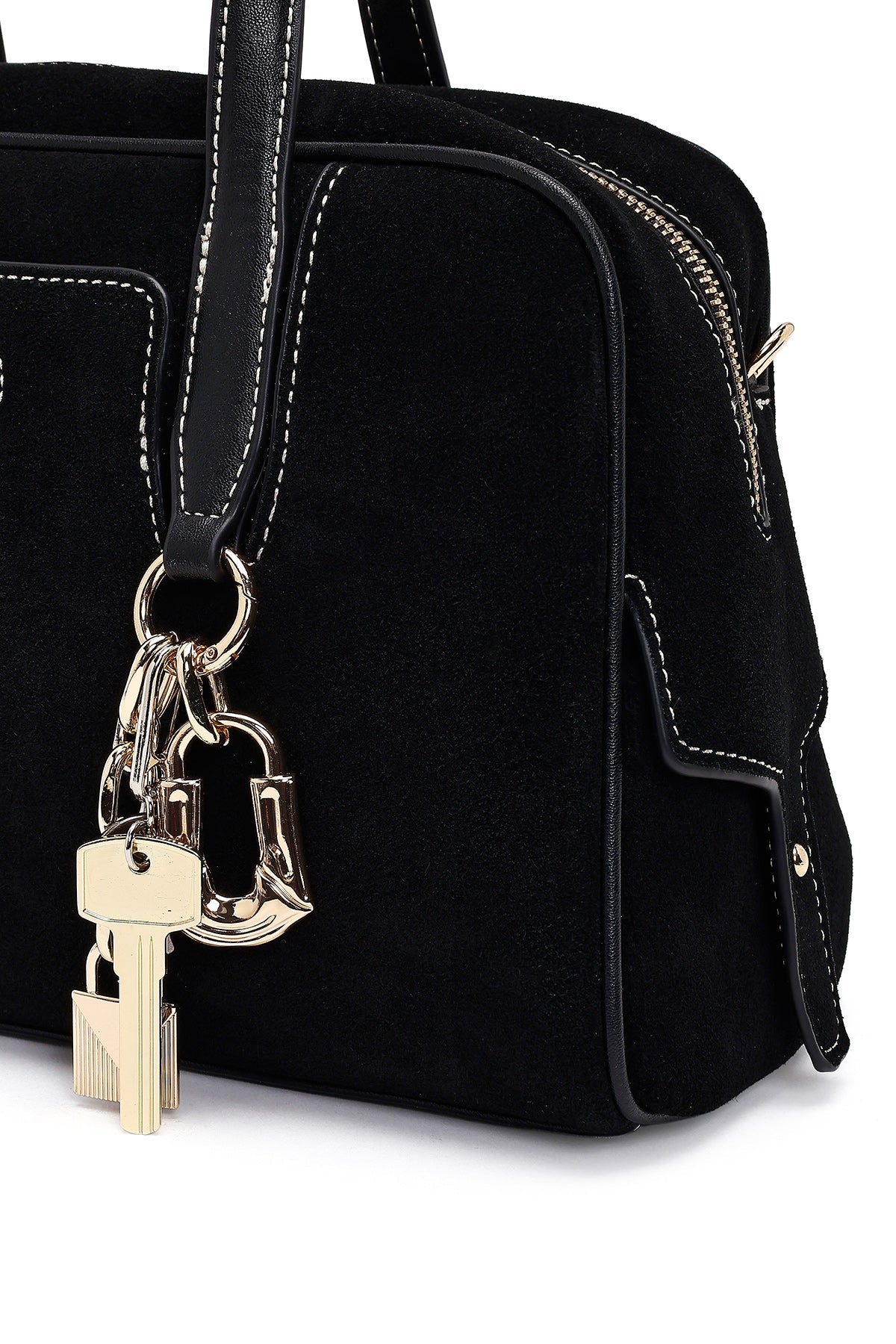 Kadın Siyah Uzun Askılı Süet Kol Çantası