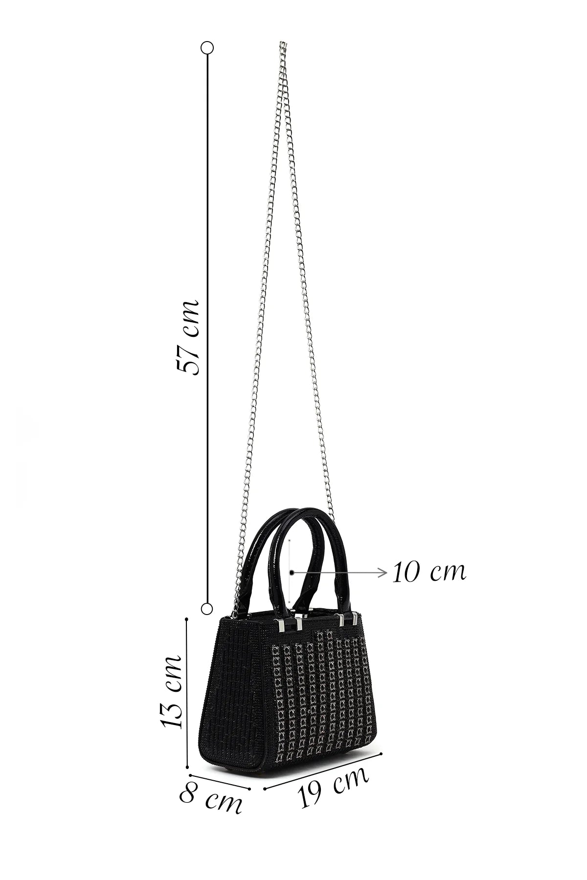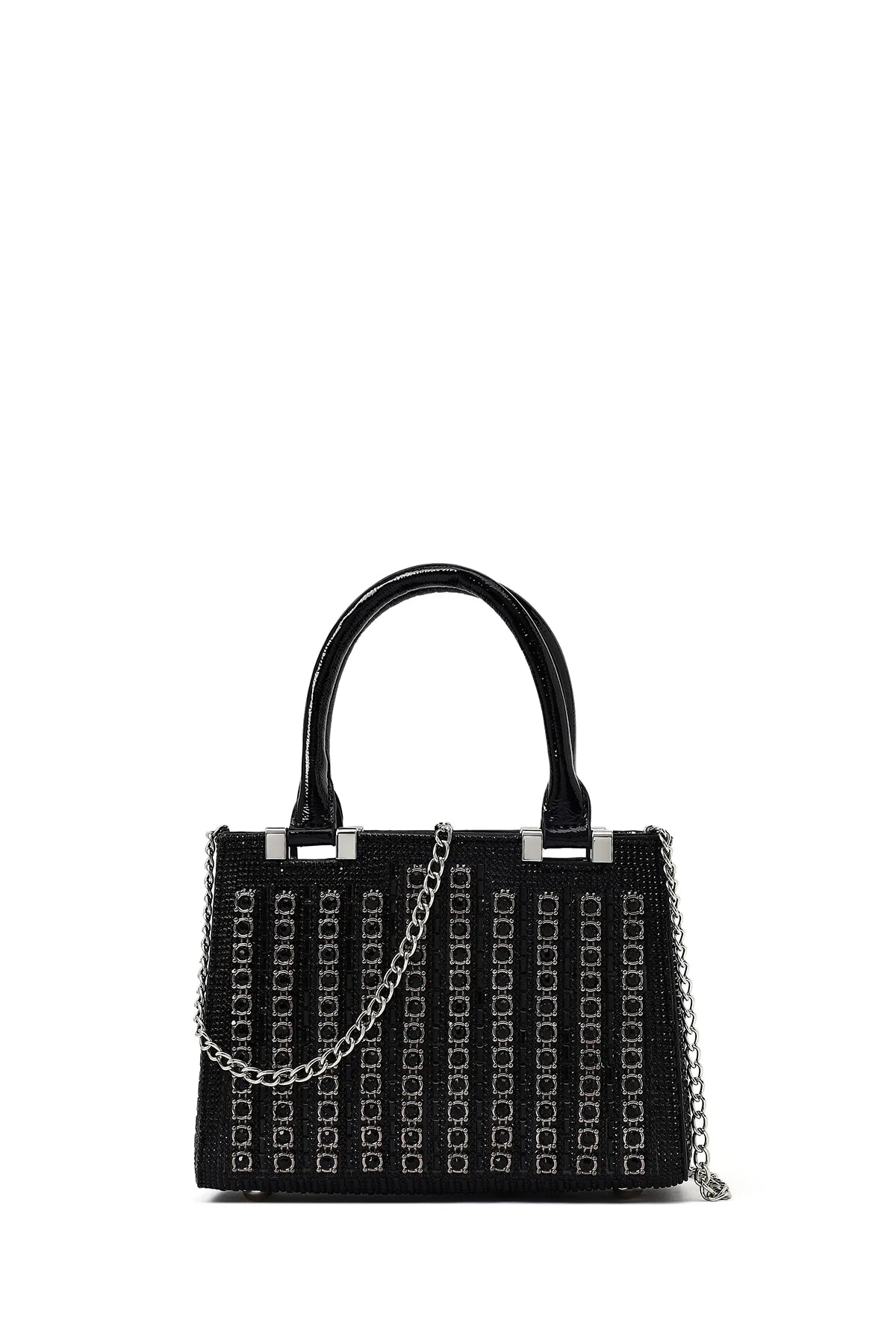 Kadın Siyah Uzun Zincir Askılı Taşlı Mini Abiye Çanta