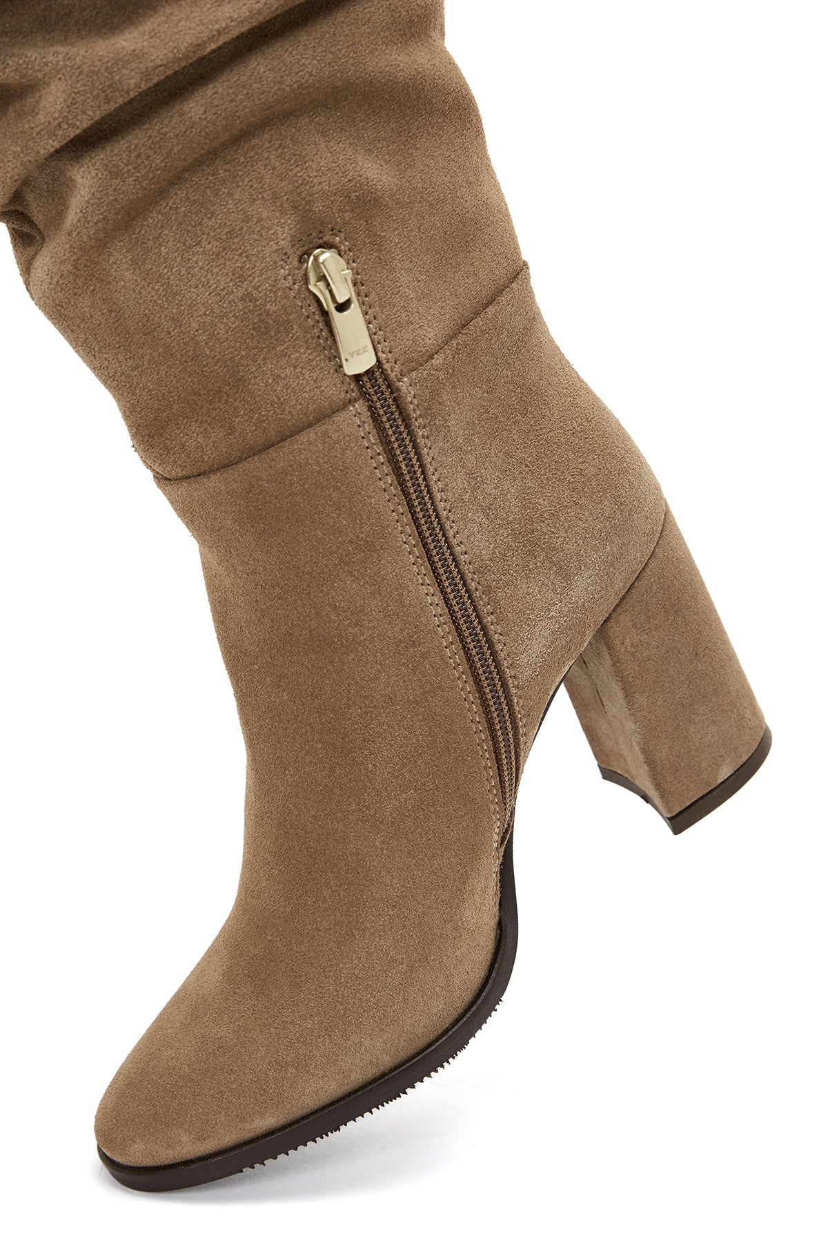 Kadın Taba Fermuarlı Kalın Topuklu Süet Deri Çizme