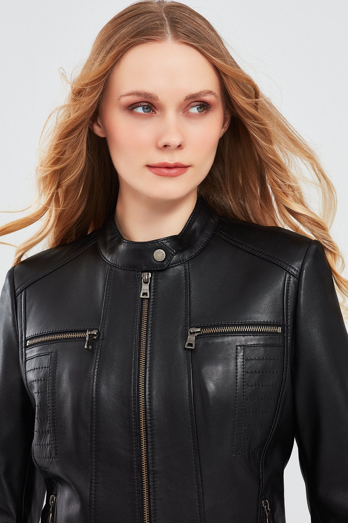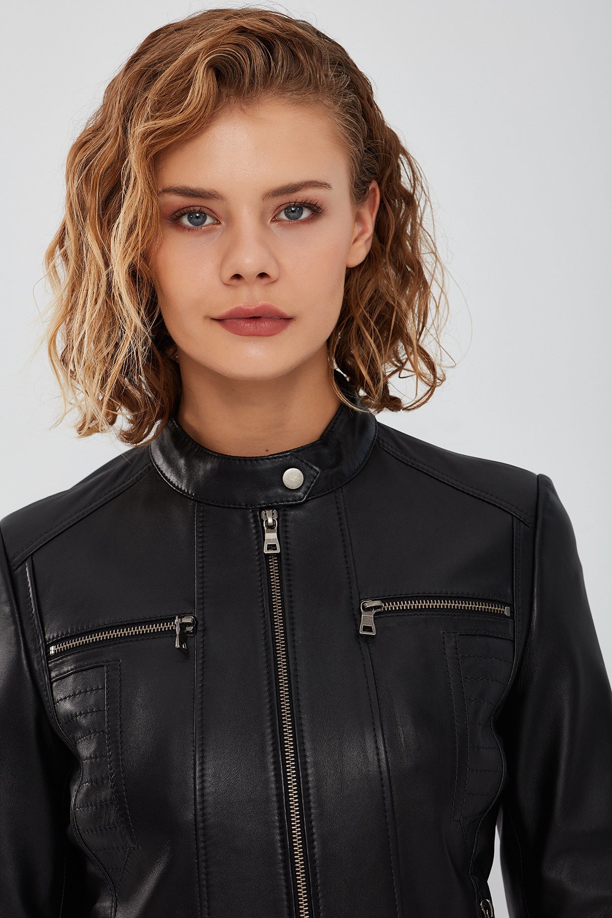 İç Astar: TekstilMateryal: Deri.Derimod’un Zarif ve Şıklığı bir arada sunan Marlyn Kadın Siyah Kısa Deri Ceket ile tarzınızı konuşturun. Ürünün kodu: 23WGE51331M 11