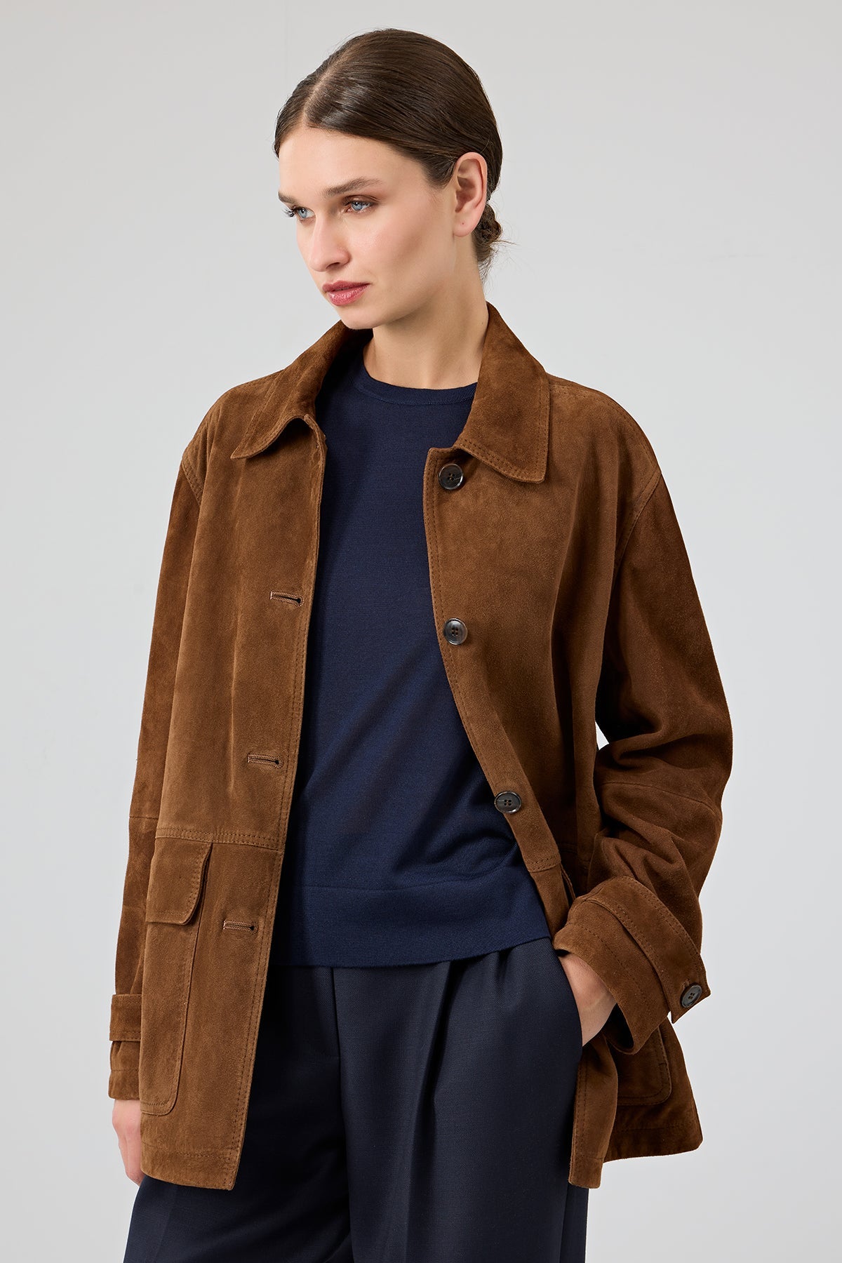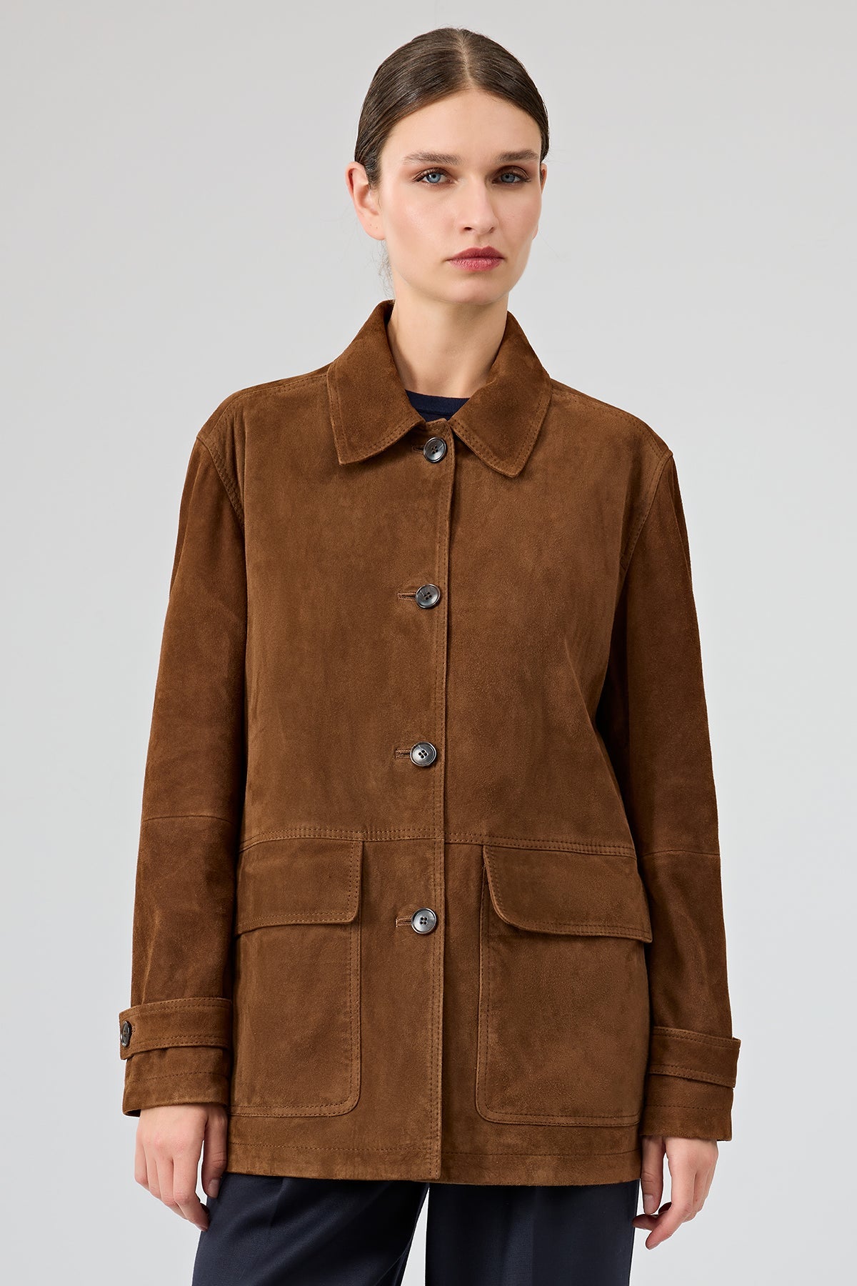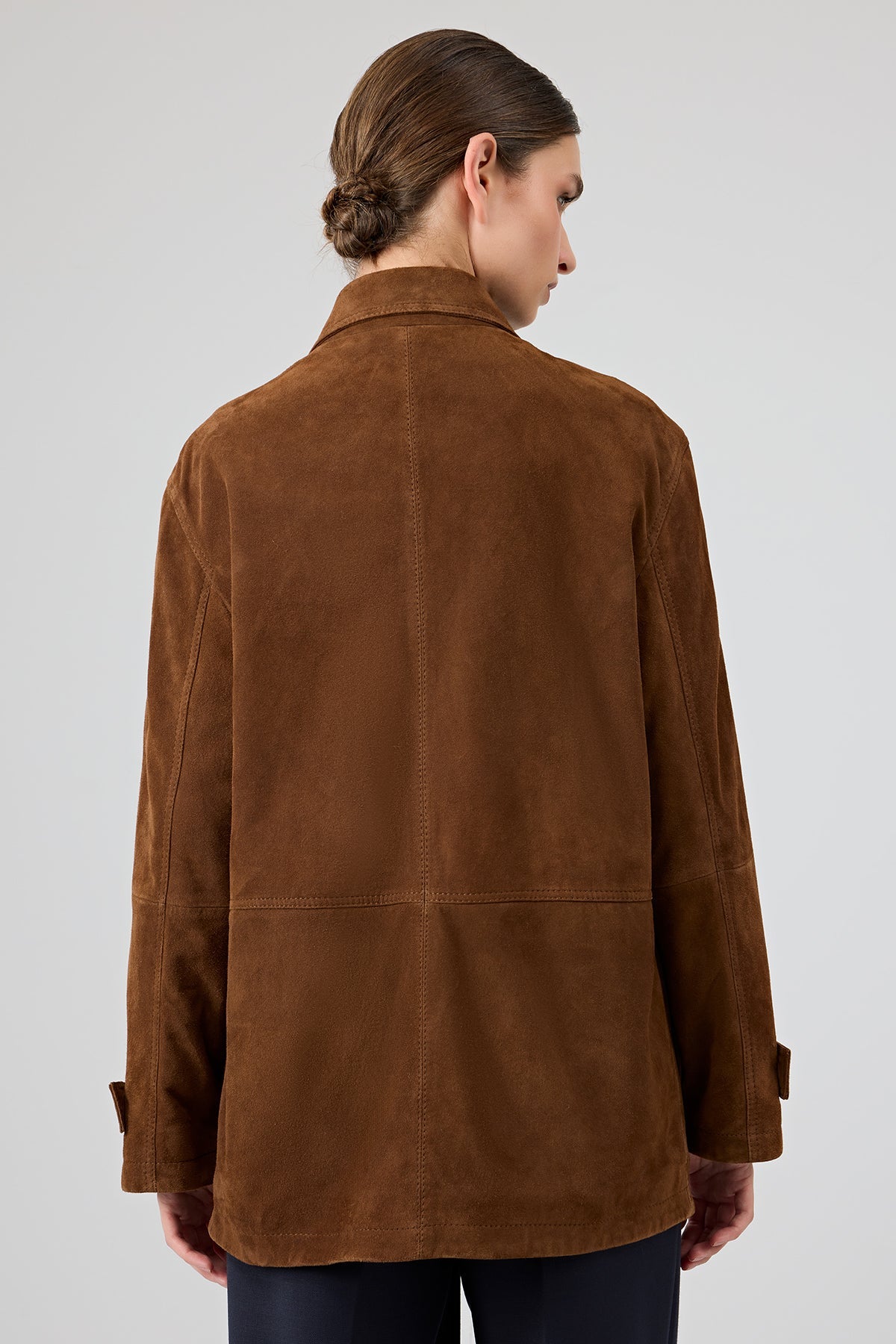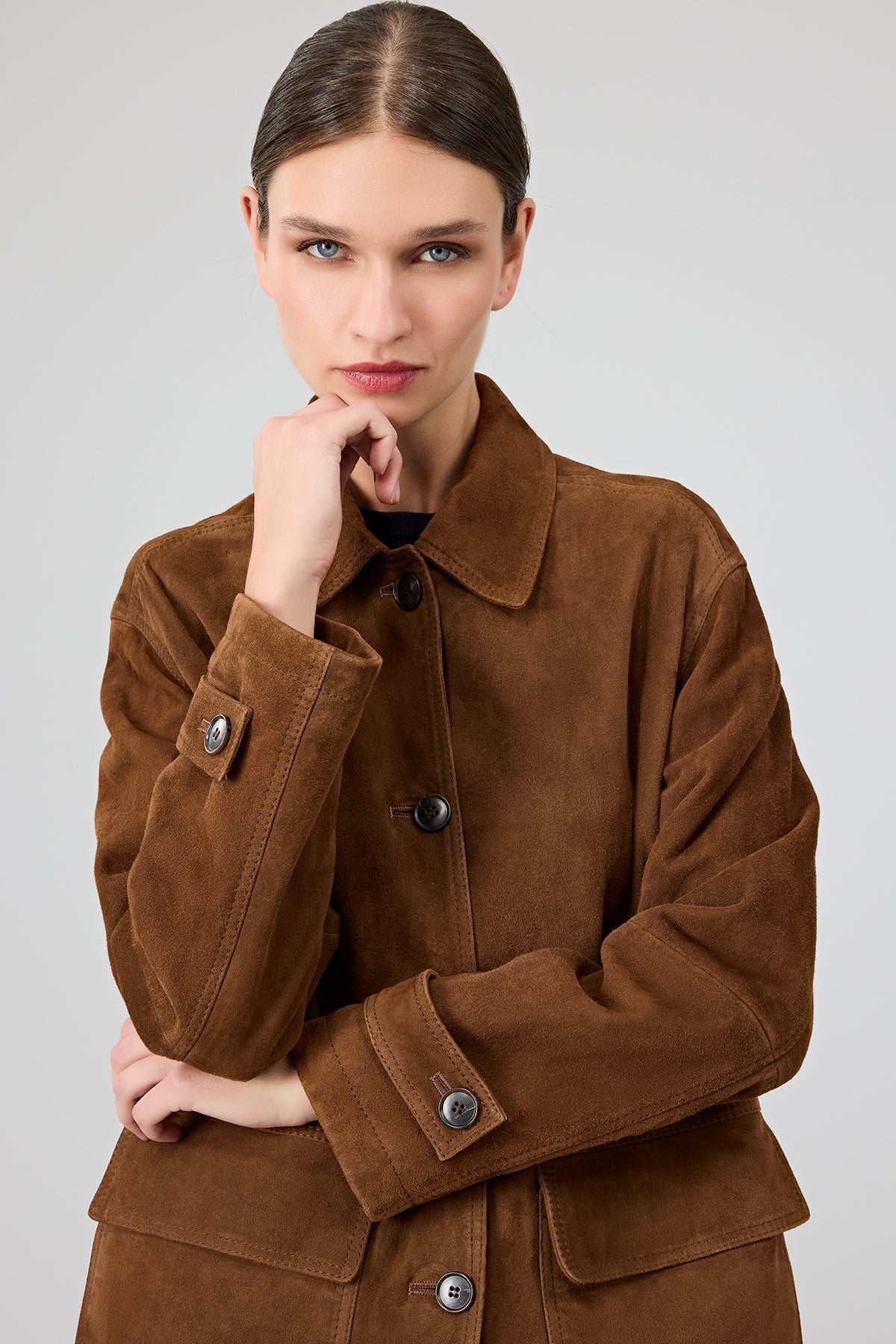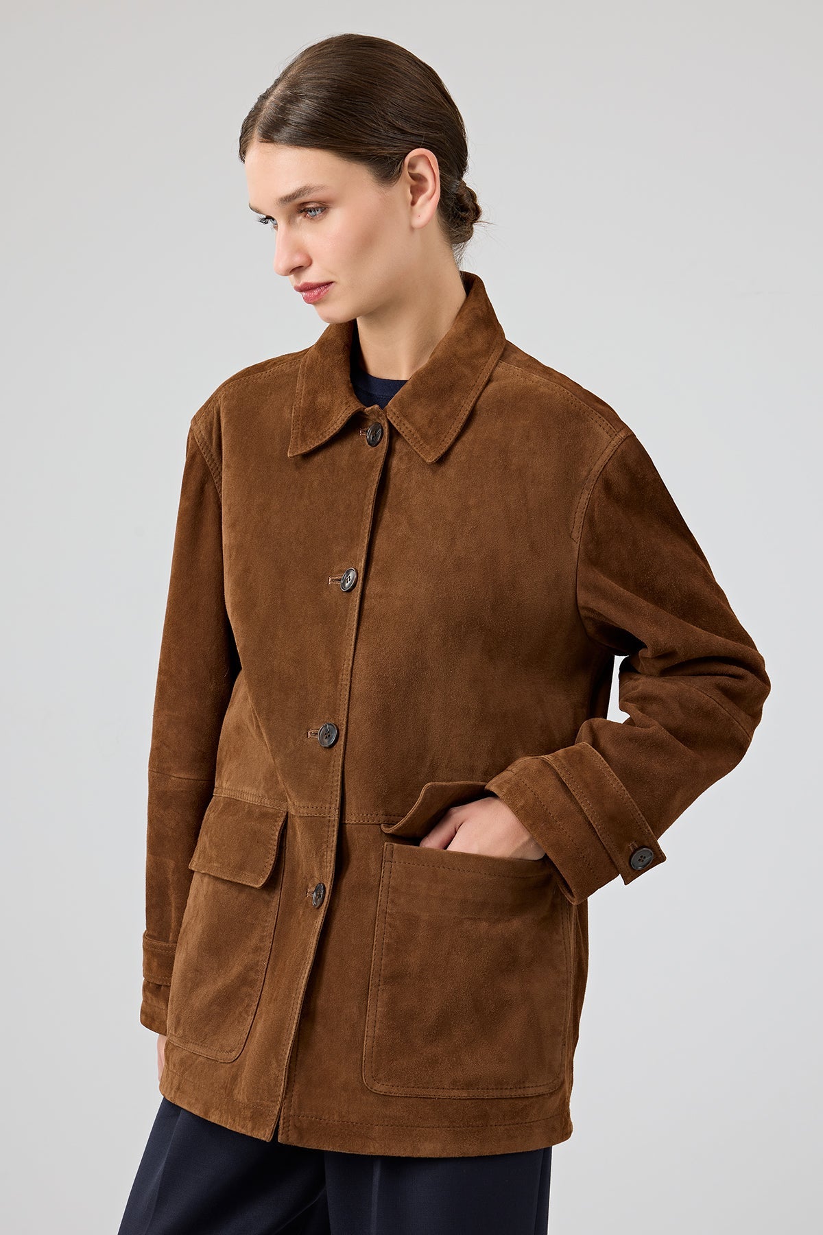 Petra Kadın Kahverengi Gömlek Yaka Oversize Süet Deri Ceket
