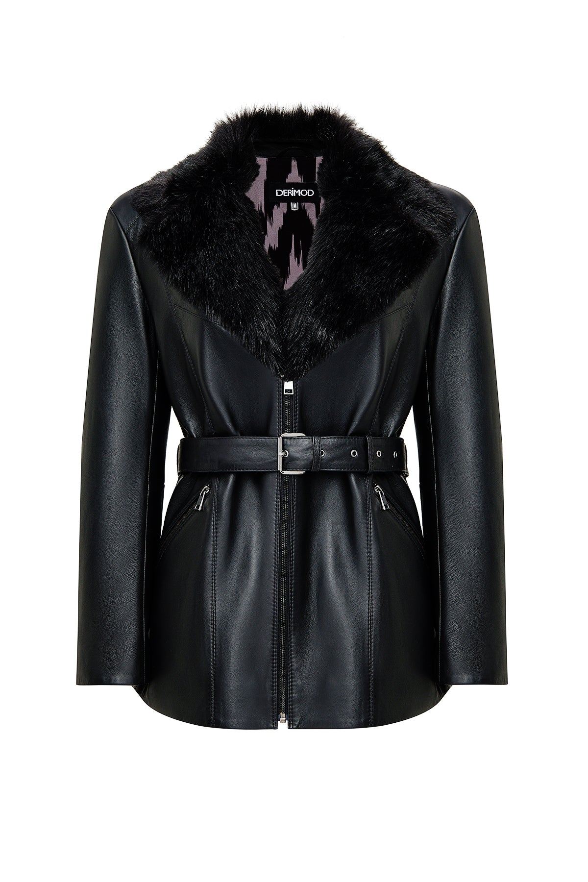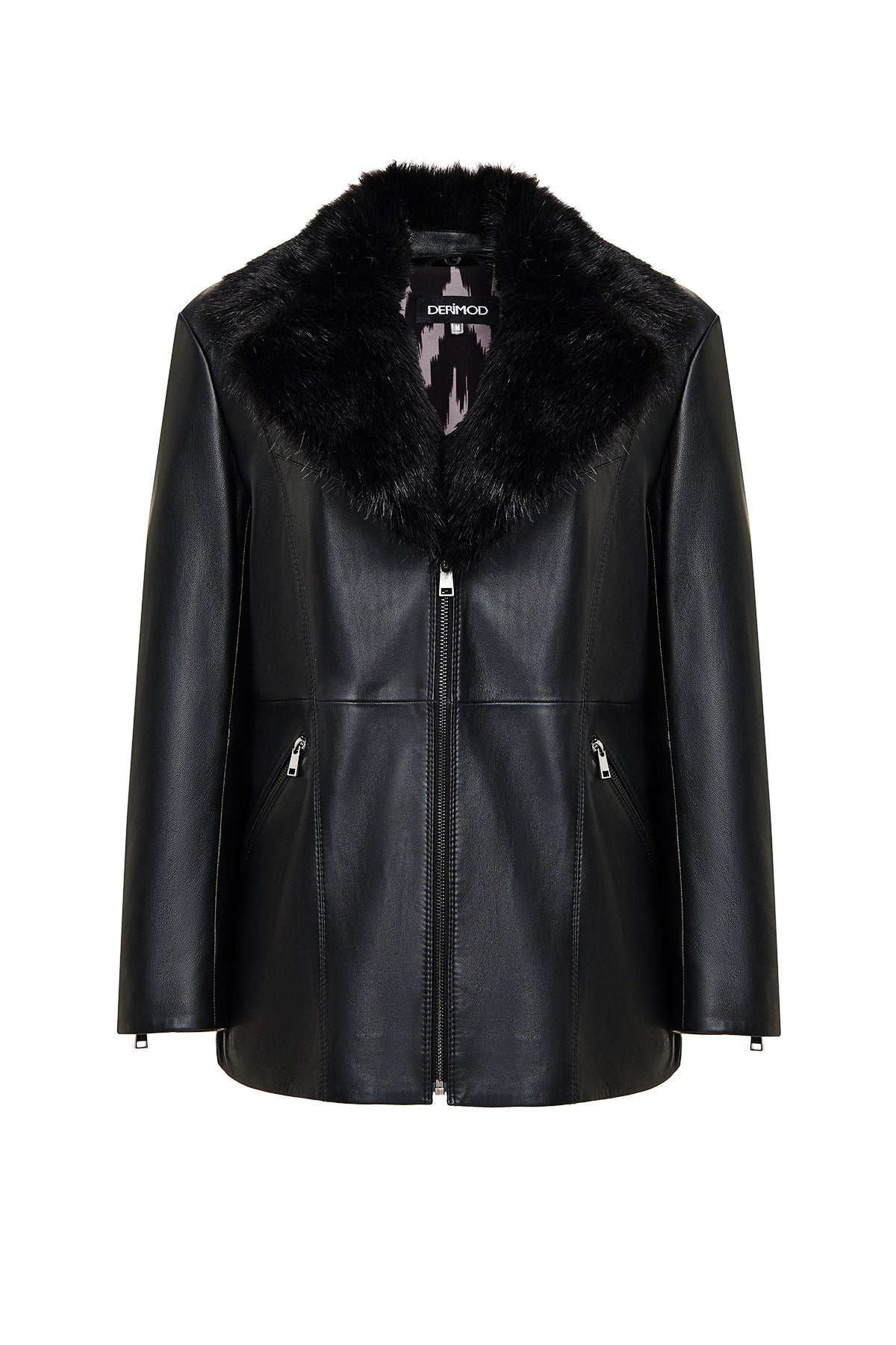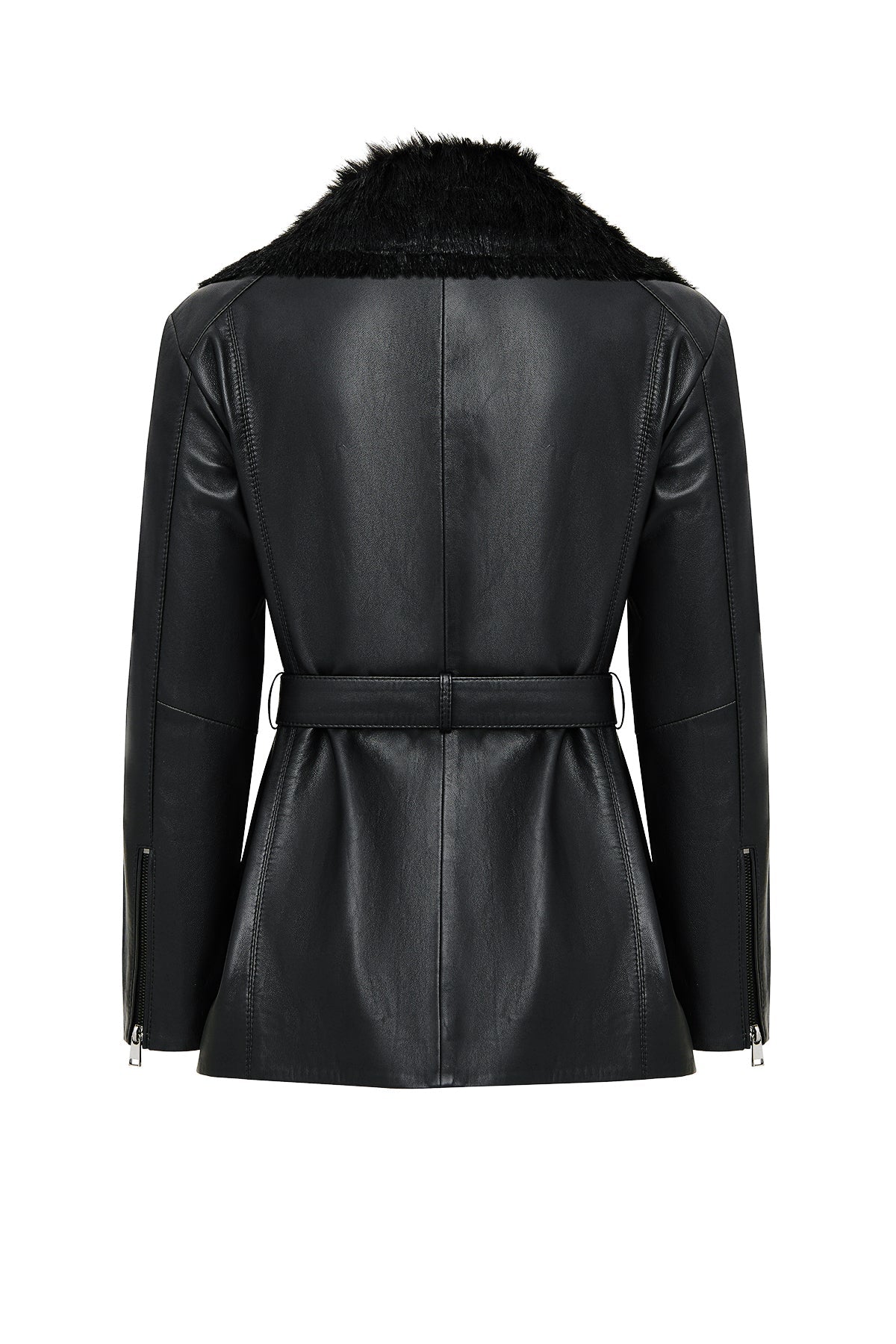Scarlet Kadın Siyah Kürk Yaka Deri Mont