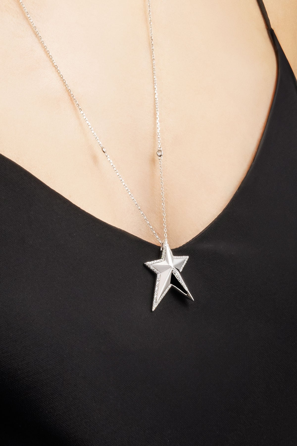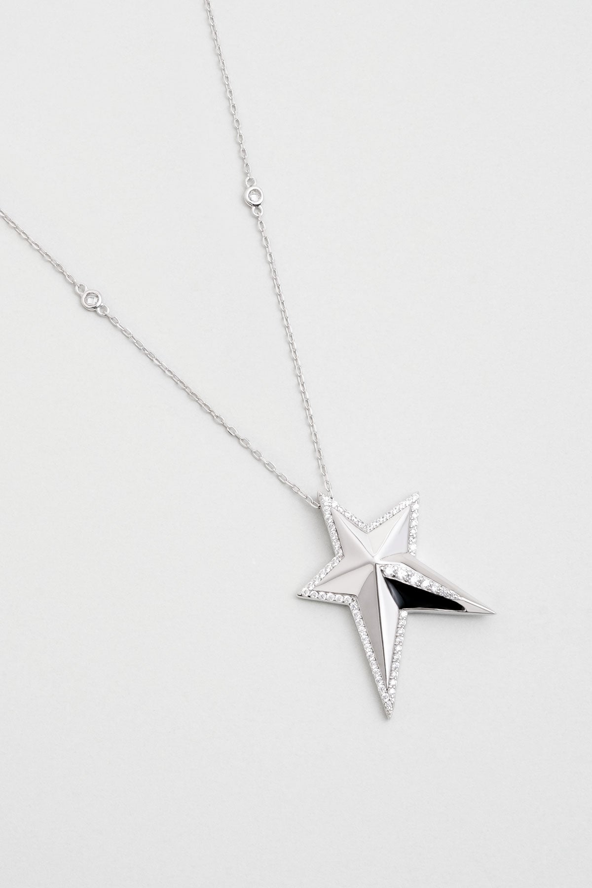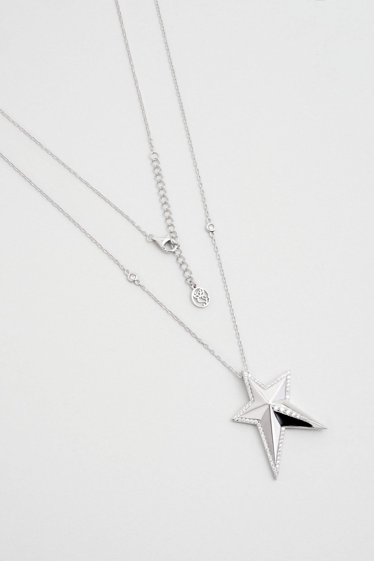 Dilek Yıldızı 18 Ayar Beyaz Altın Kaplama 60 Cm Gümüş Kolye 07304540199