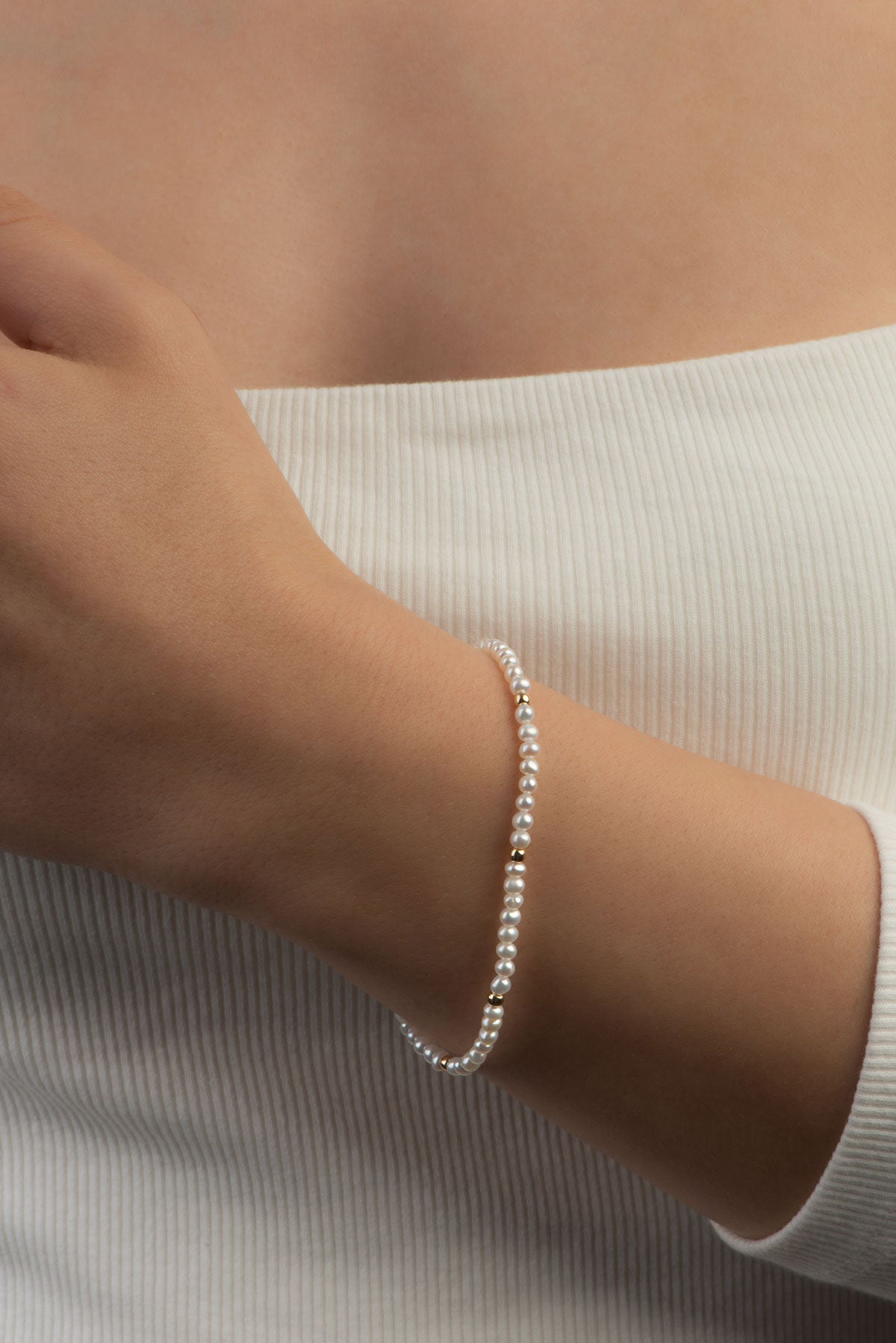 Doğal Inci Taşlı 14 Ayar Altın Bileklik M00317053618