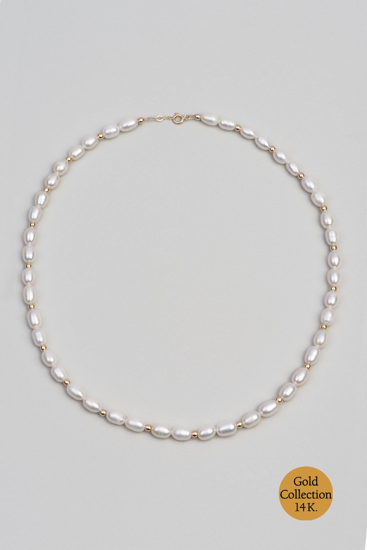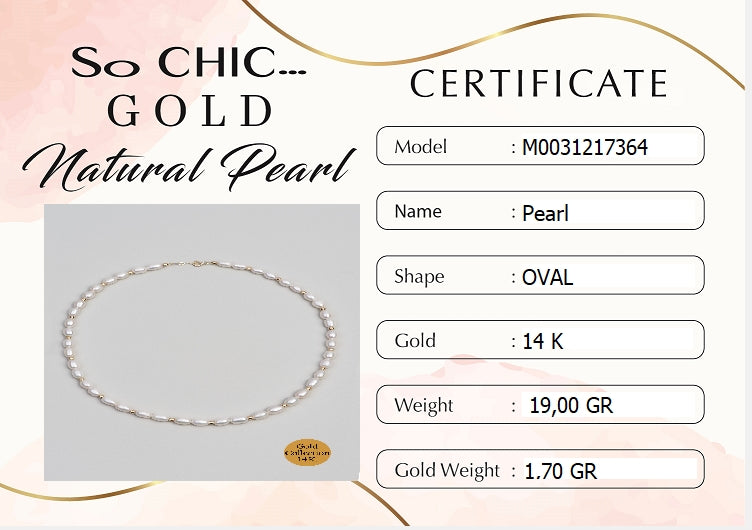 Doğal Inci Taşlı 14 Ayar Sarı Altın 45 Cm Kolye M00312173643