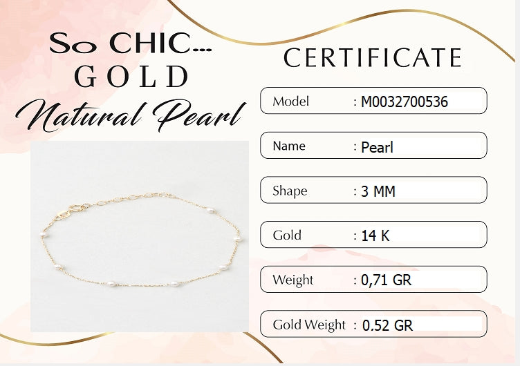 Doğal Inci Taşlı 14 Ayar Sarı Altın Bileklik M003270053644