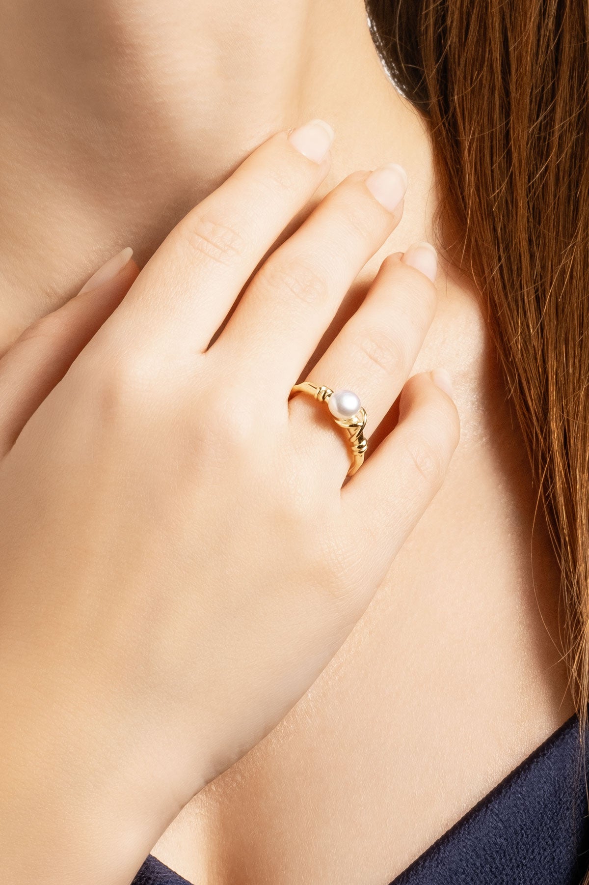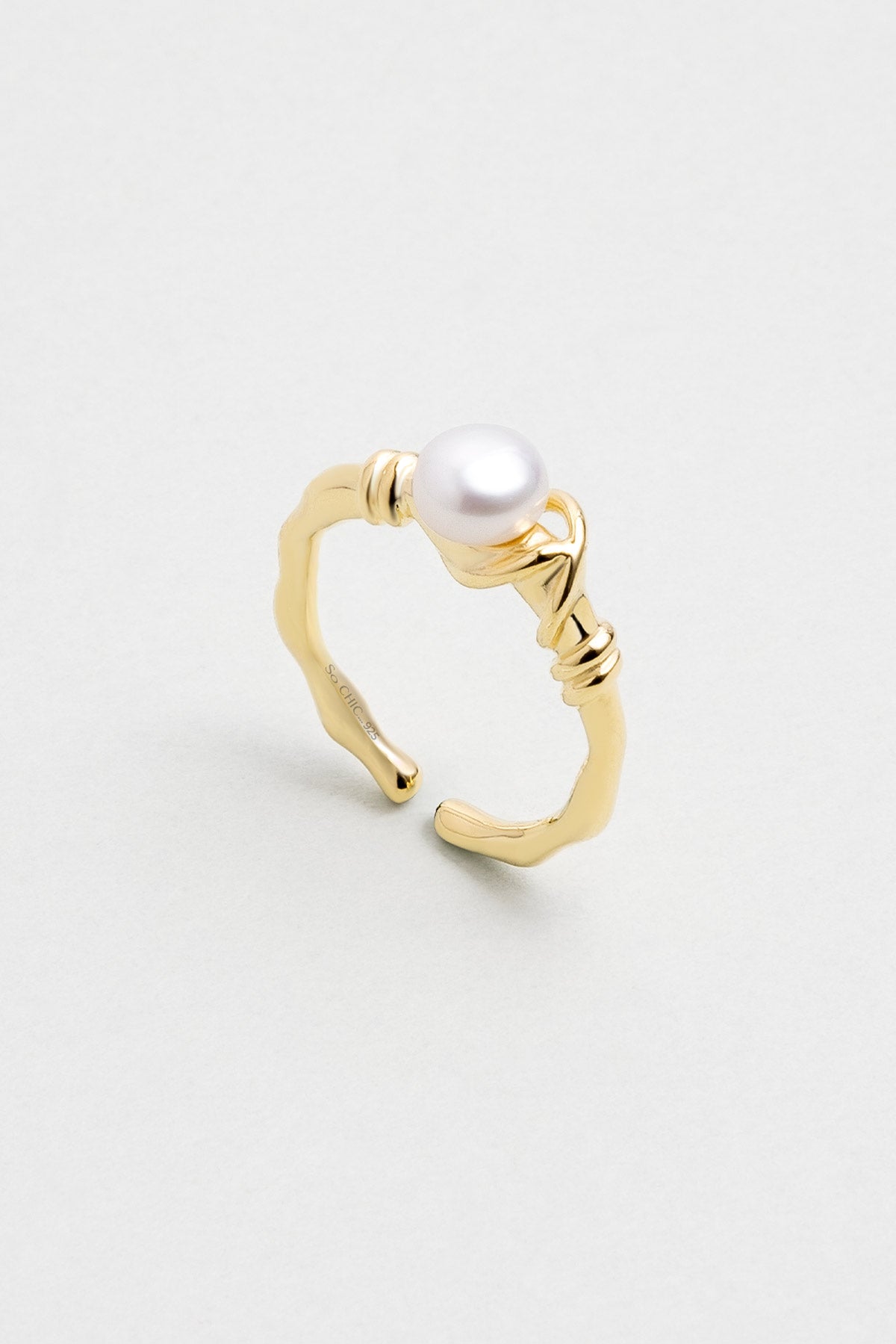 Doğal Inci Taşlı 18 Ayar Sarı Altın Kaplama Ayarlanabilir Gümüş Yüzük 5146874454