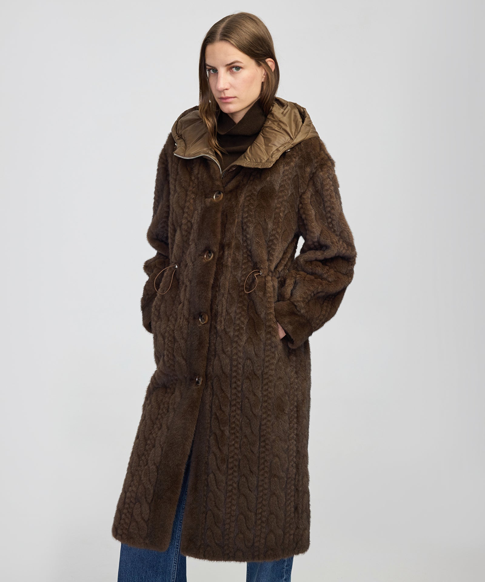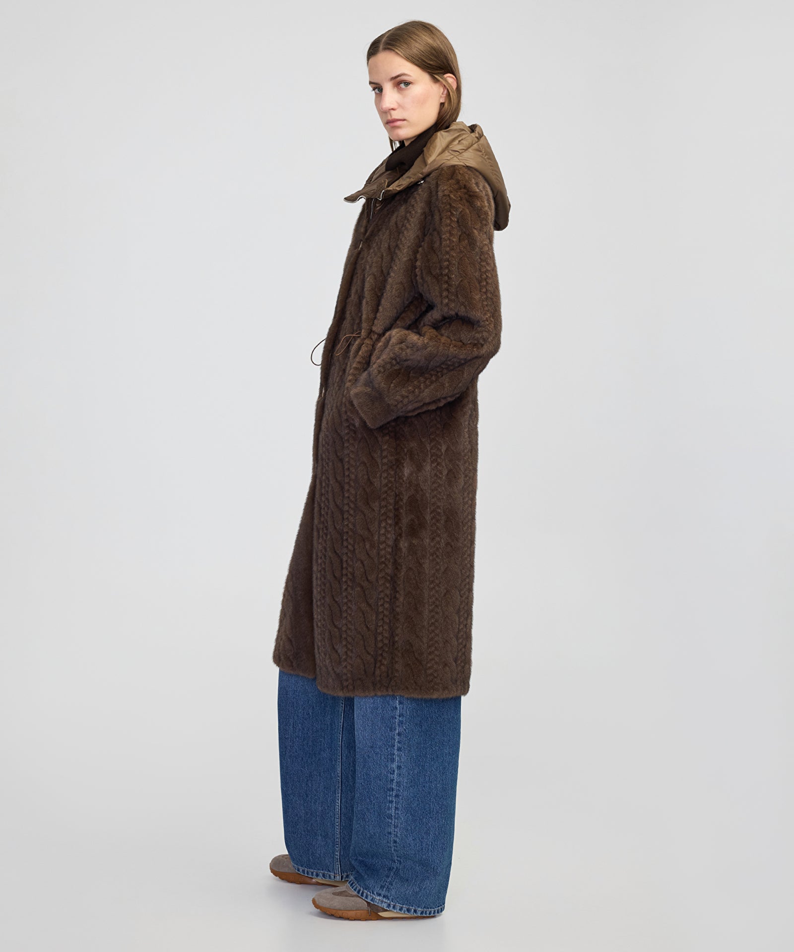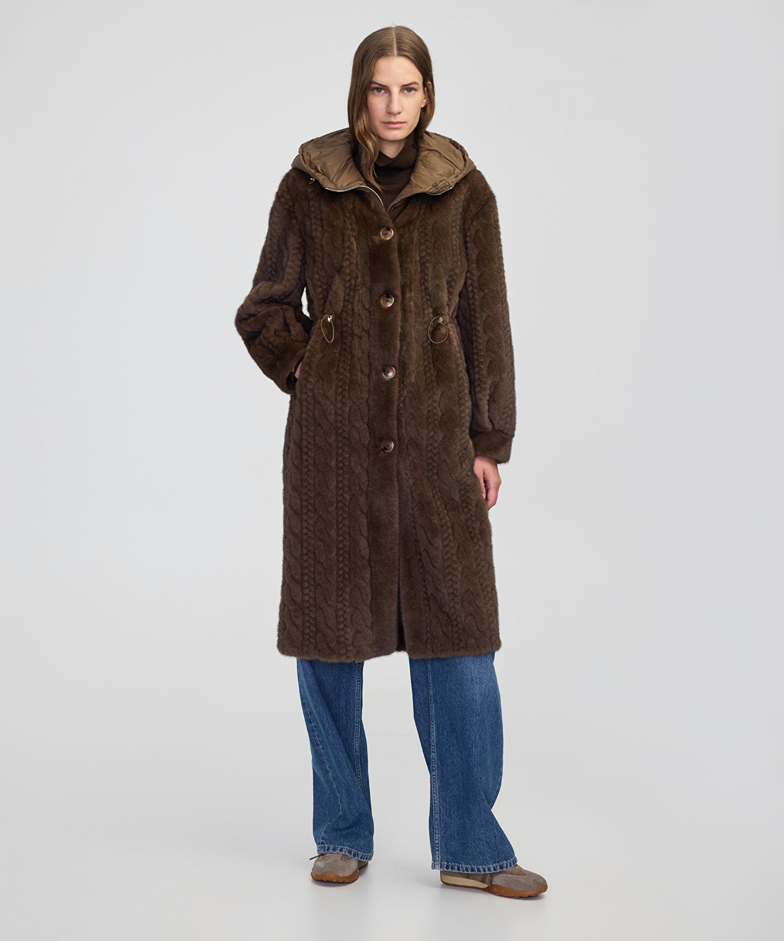 Dokulu Teknik Kumaş Mix Kaban