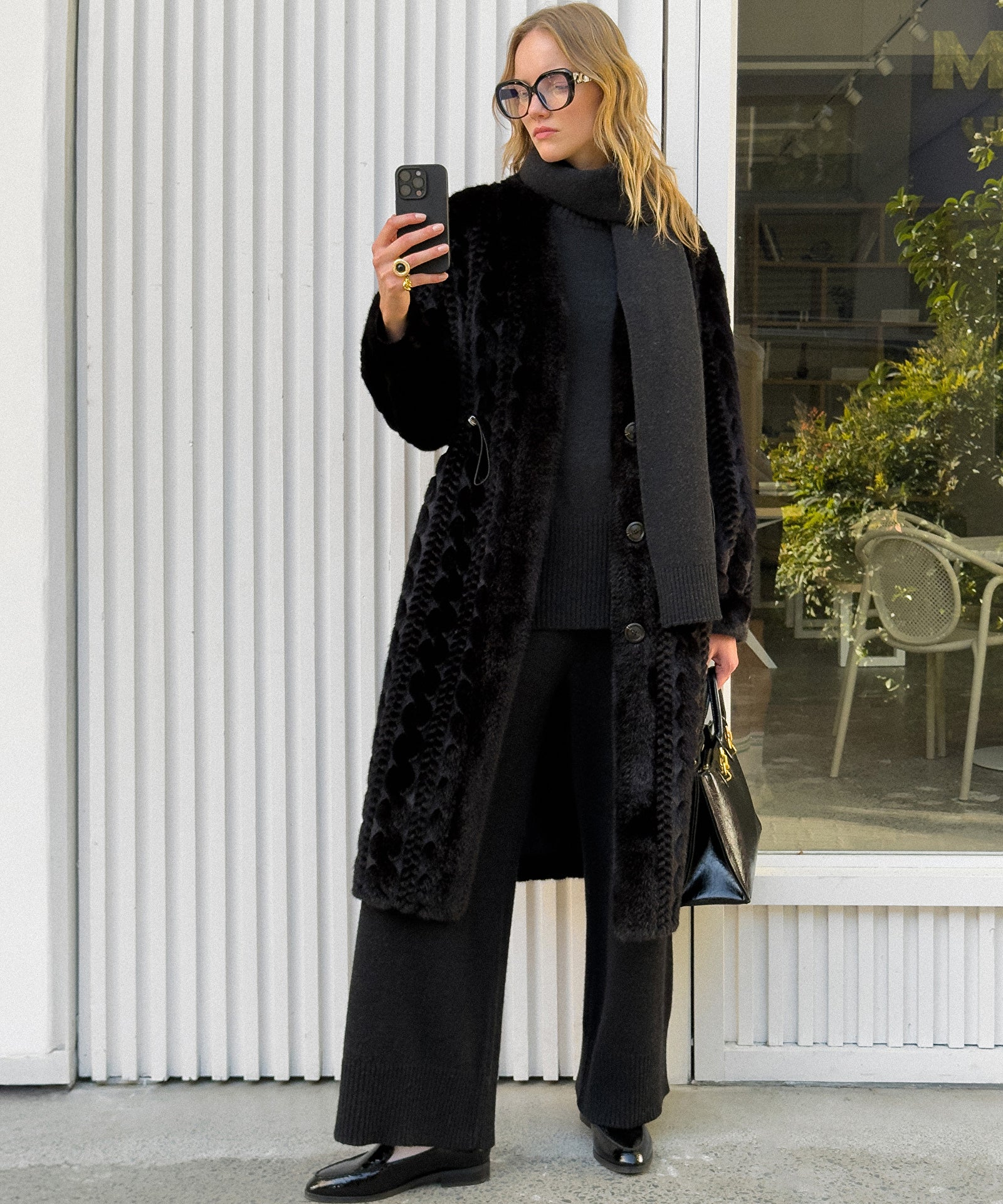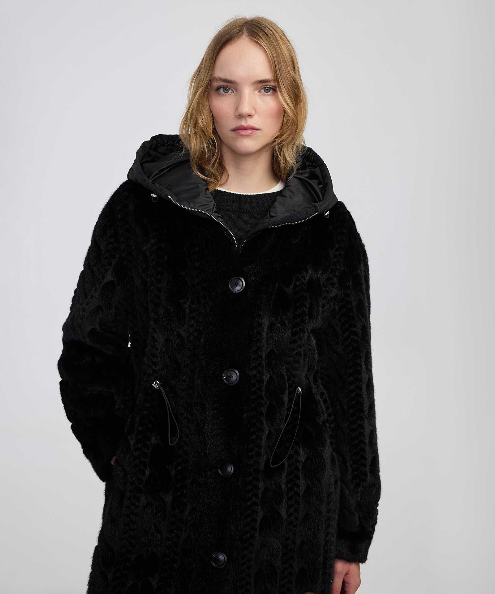 Dokulu Teknik Kumaş Mix Kaban