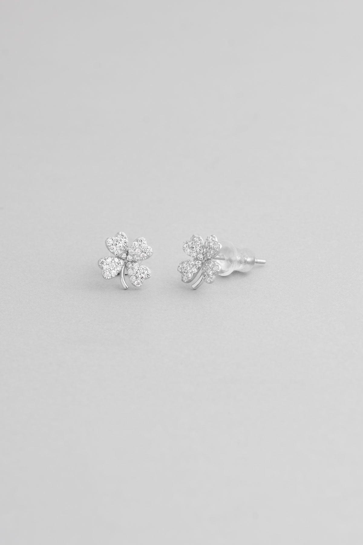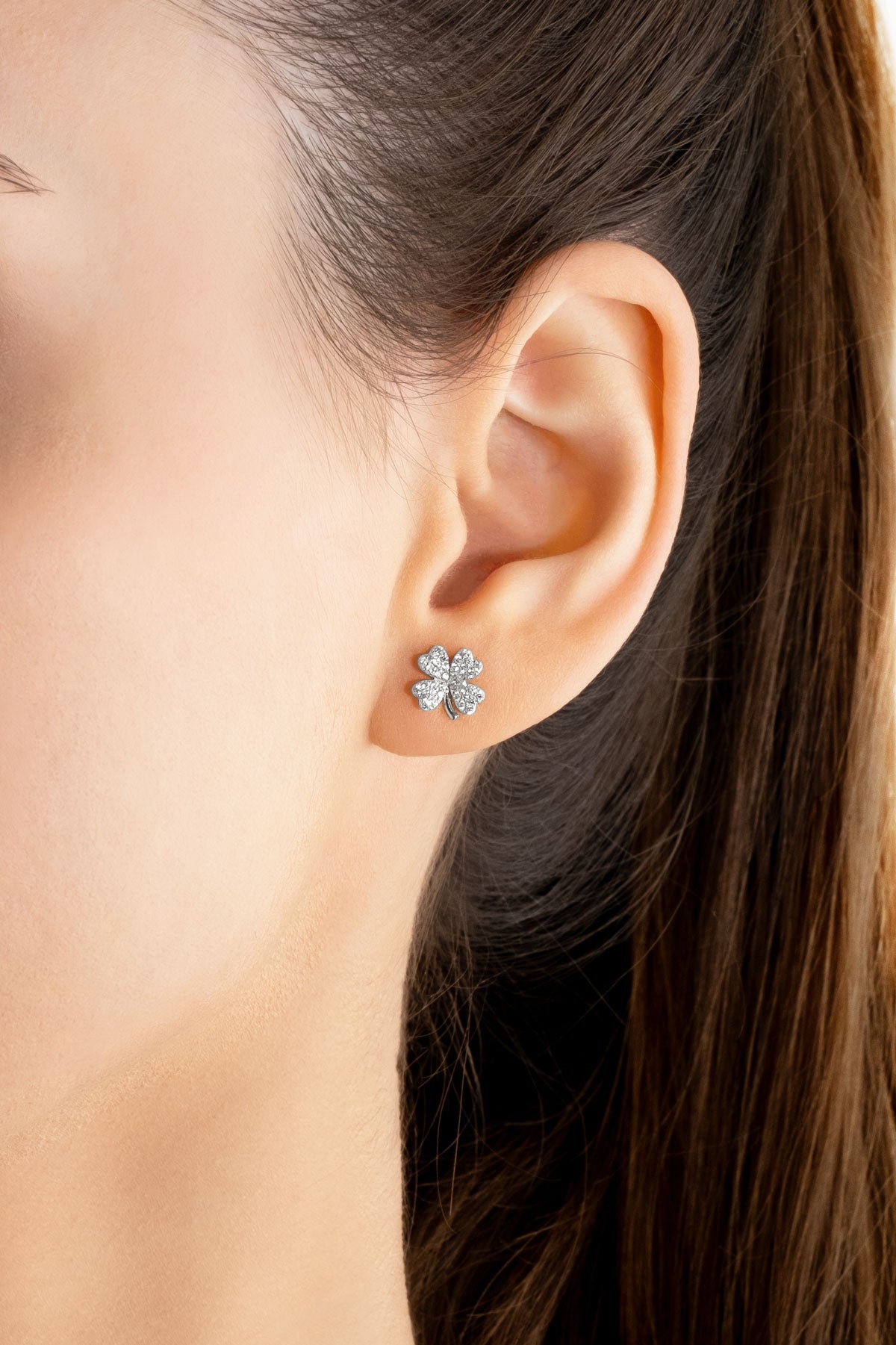 Dört Yapraklı Yonca 18 Ayar Beyaz Altın Kaplama Gümüş Küpe 5153710199