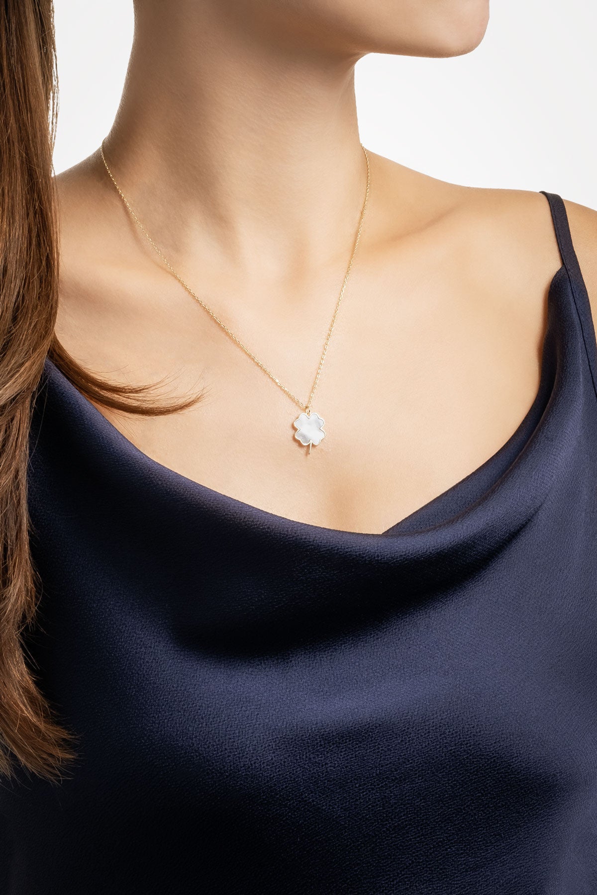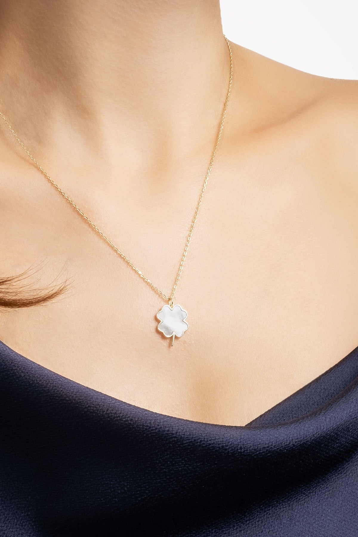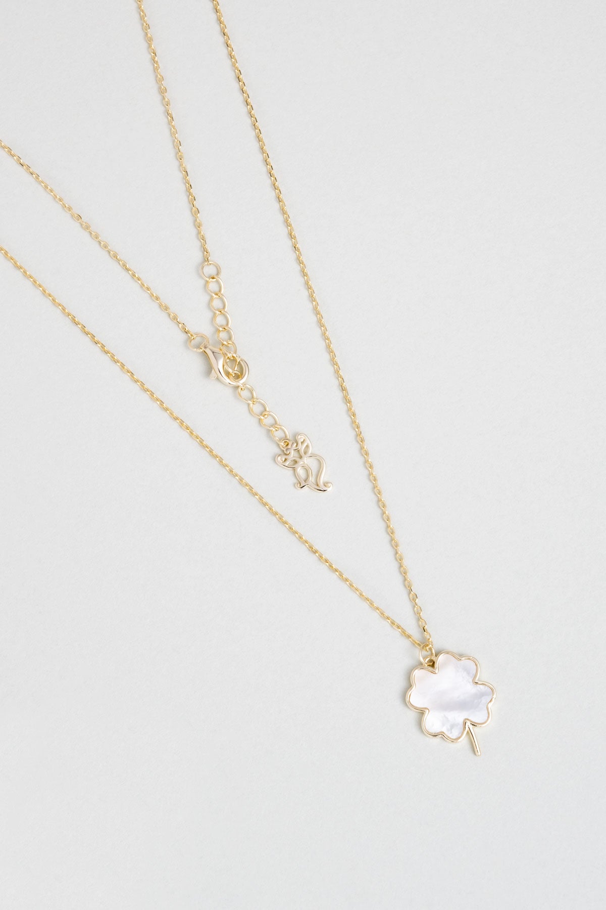 Dört Yapraklı Yonca 18 Ayar Sarı Altın Kaplama 45 Cm Gümüş Şans Kolye 5163754644