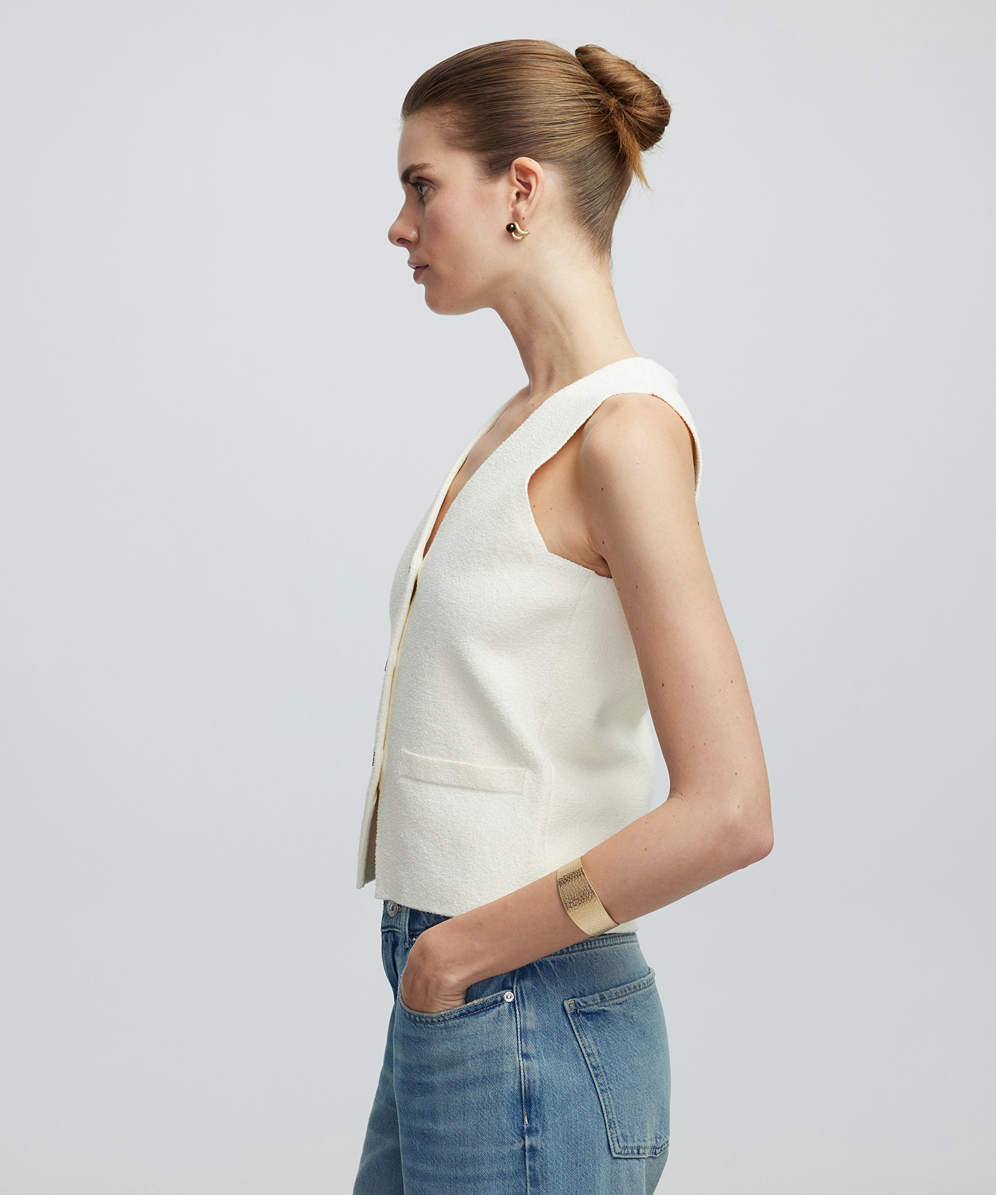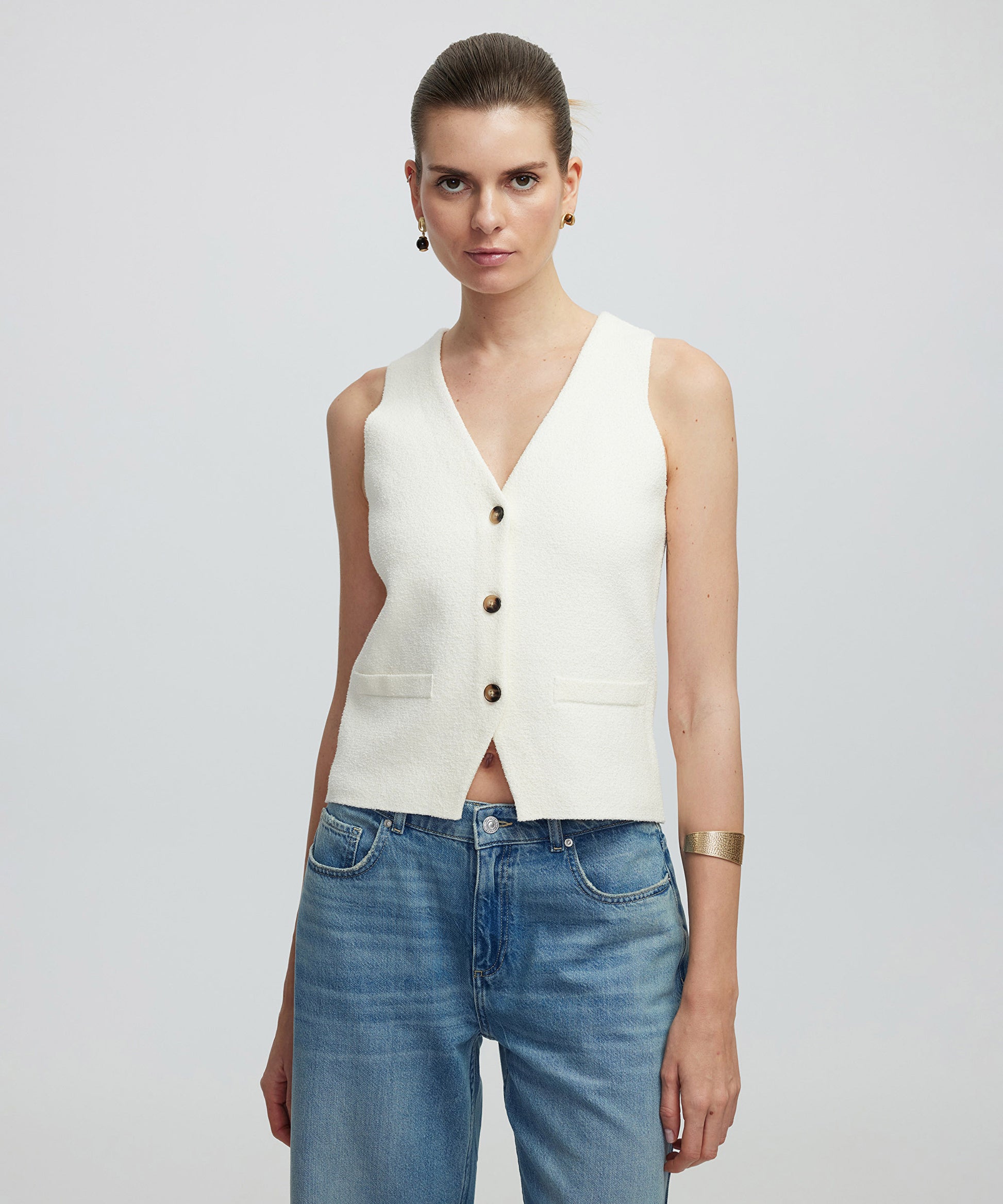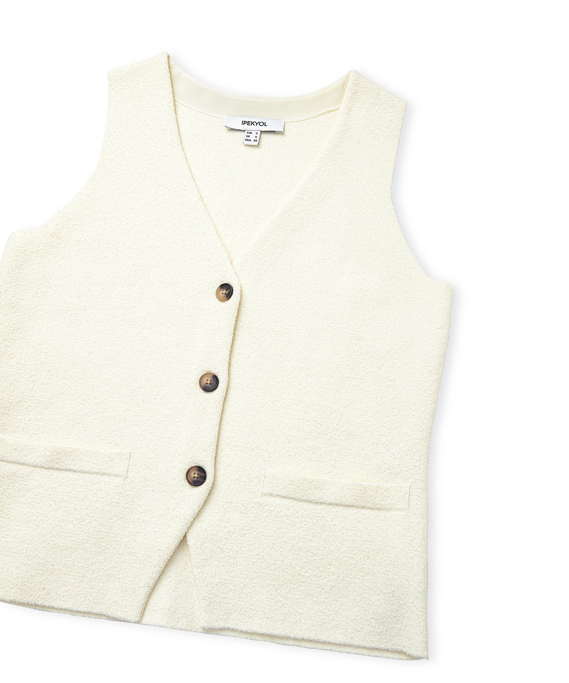 Ekru Düğmeli triko yelek IS1250007023018 ile tarzınızı tamamlayacaksınız. IPEKYOL tarzına sahip olmak için hemen tıklayın!